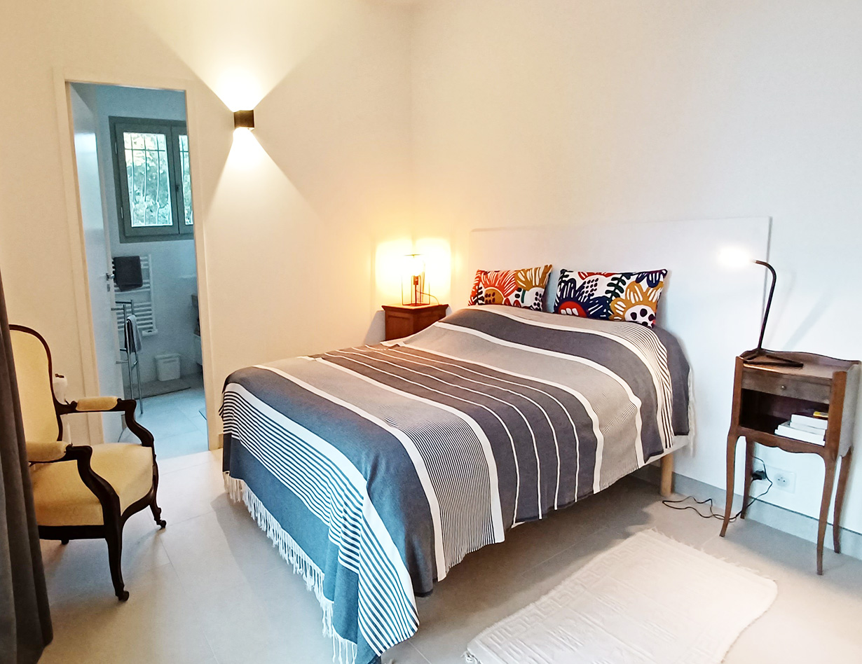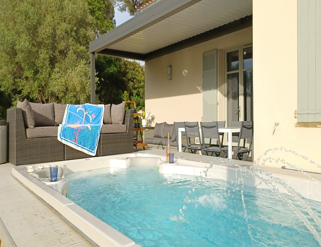 In the very best villa location on Cap Antibes. Walk to sandy beach, walk to restaurants, walk to town. Family owned for years: Very beautiful newly renovated villa on one level, has 3 pretty bedrooms (either 3 double rooms or 2 double rooms and 2 single beds) with air conditioning, 3 bathrooms, kitchen, cozy living area with fireplace, dining area. In front of the living area there is a large, great terrace with comfortable lounge furniture and a table. BBQ. Beautiful pool with counter-swimming system and several massage places (depth 1.20), 28°, invites you to linger, a really pleasant experience! Flat plot, children’s swing, plenty of space to play. The property is completely fenced, 2 parking spaces very comfortable, electric gate. You can also access the roof terrace via a staircase, where there is another really nice spot to see the entire surrounding area. Ideal for an evening aperitif at sunset. An ideal house with children and for anyone who would like to leave the car behind. The house is suitable for people with disabilities! “I re-listed the house in 2023. Very good location and good facilities. A house for everyone who wants to be practical and comfortable so that they can enjoy a relaxing holiday. For me the perfect house even with small children. Yours Simone Andres”