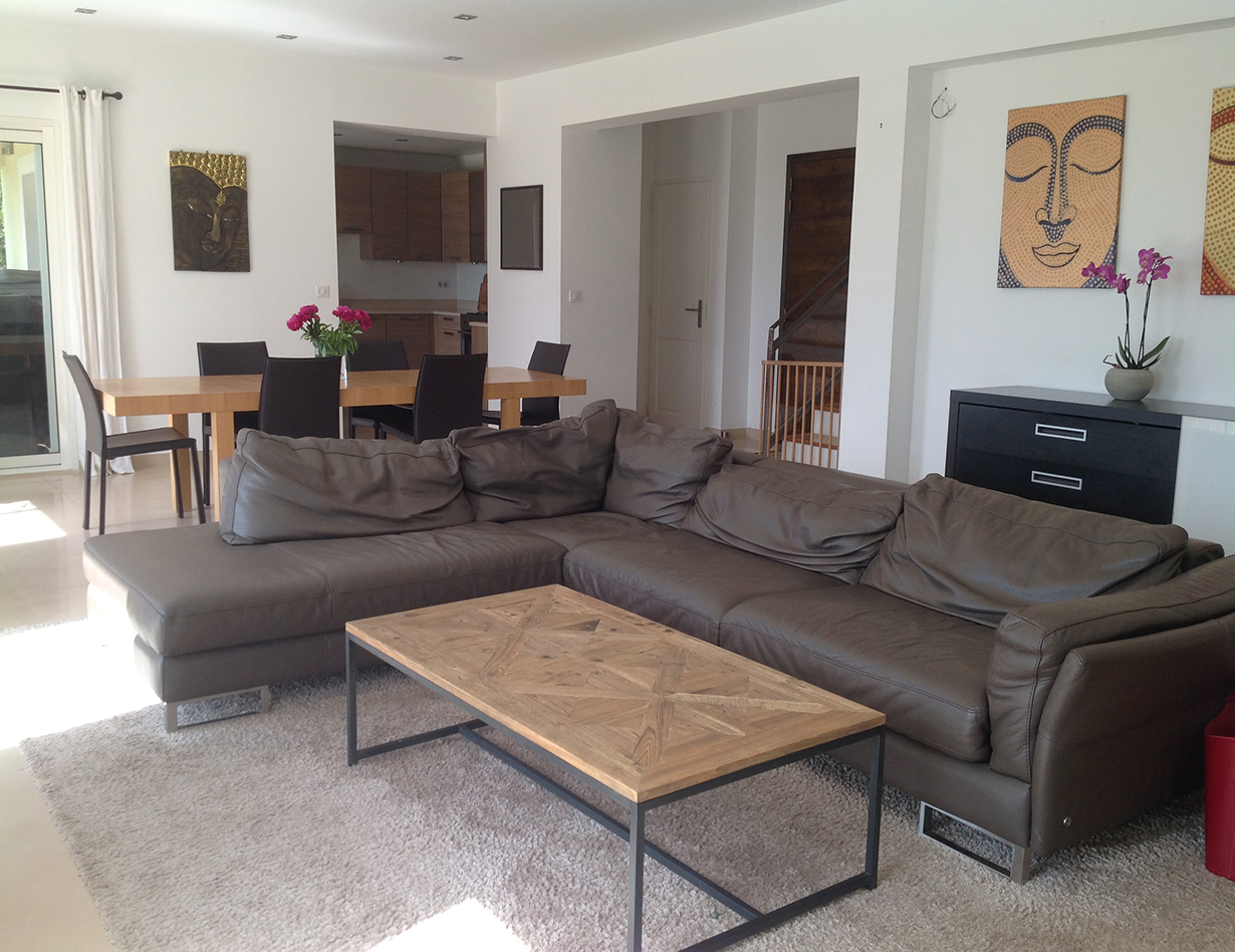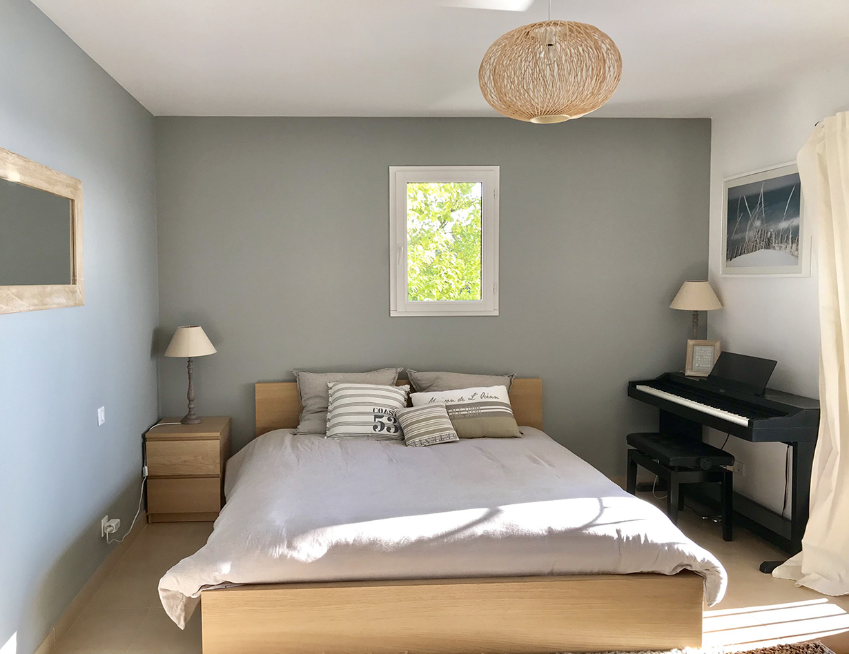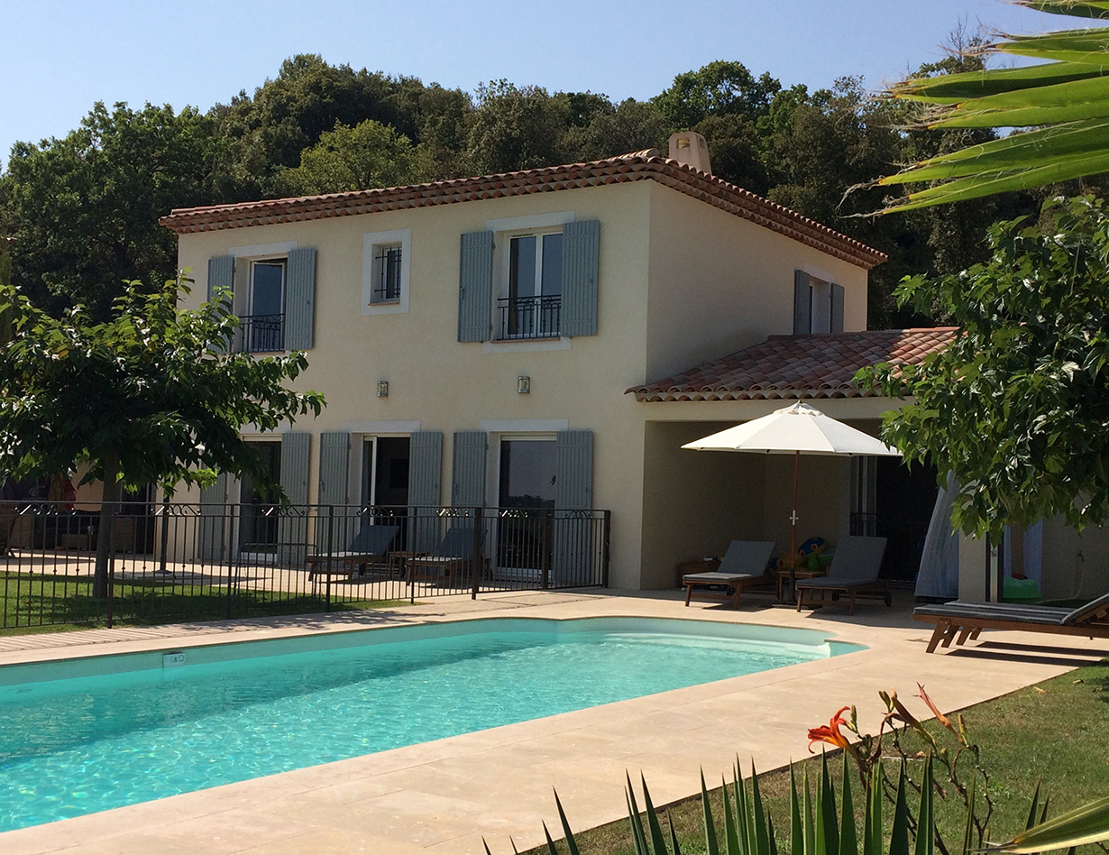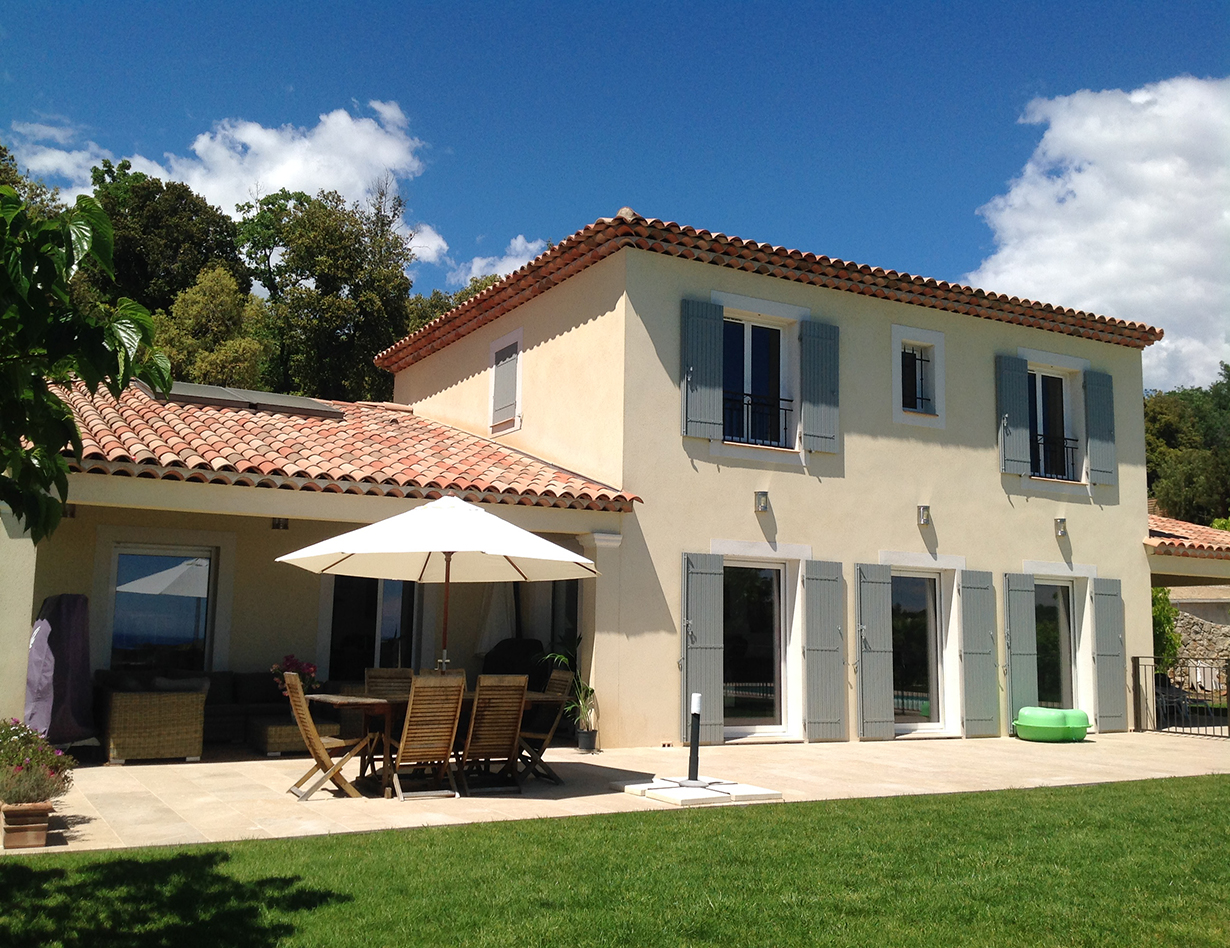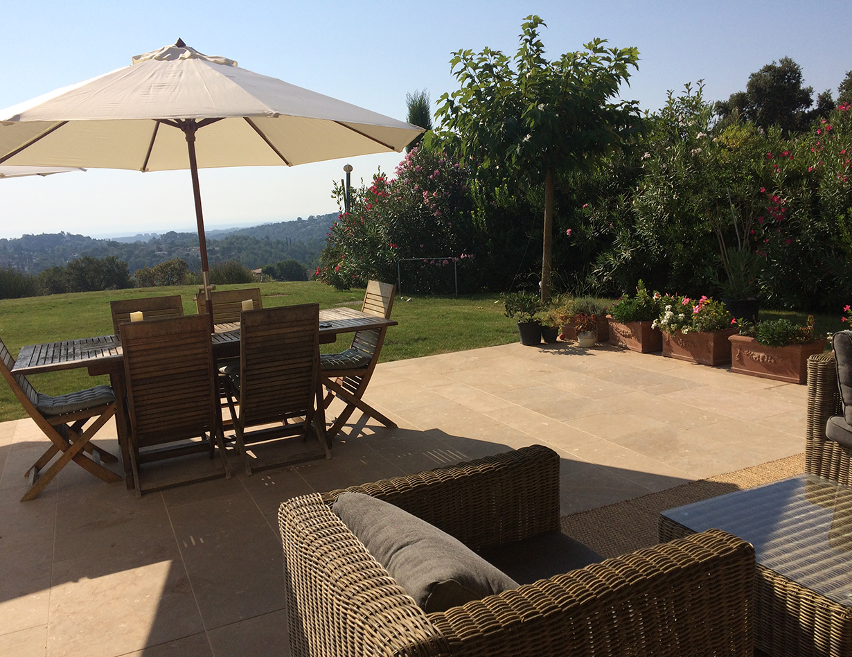 PURE RELAXATION: VILLA «ST. JULIEN» IN BIOT/ANTIBES Are you looking for a spacious holiday apartment or beautiful villa in the Alpes Maritimes department where up to eight people can spend a relaxing holiday and completely switch off? Then our villa «ST. JULIEN» near Biot is exactly the right place for you! With around 180 square meters of living space in a quiet location, the Provencal bastide offers enough space for a successful relaxing holiday with friends or family on the Côte d’Azur – the ideal villa for everyone who is really looking for peace and quiet. It is around ten minutes from the artist town of Biot, which is best known for its glass art, and only 15-20 minutes from Antibes. You can start wonderful hikes or bike tours in breathtaking landscapes directly from the holiday home. Relax and unwind with a sea view – in our villa near Biot The villa on a flat plot with plenty of space to relax and play has four spacious, stylishly furnished bedrooms, three bathrooms and four separate toilets. The large living and dining area with a well-equipped kitchen leads to the partially covered terrace in the beautiful garden. Here, comfortable, high-quality lounge furniture and a large dining table invite you to linger and relax – there is also a BBQ. Enjoy your meals with a fantastic view of the sea! Speaking of the sea: Biot is only four kilometers from the coast, and you can quickly reach the beach by car. If you would rather swim in the pool instead of in the sea, that is of course also possible: the villa has a fantastic pool with comfortable loungers and large shady parasols. Please send us your non-binding inquiry directly or let us advise you personally.