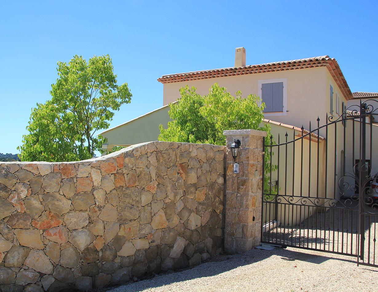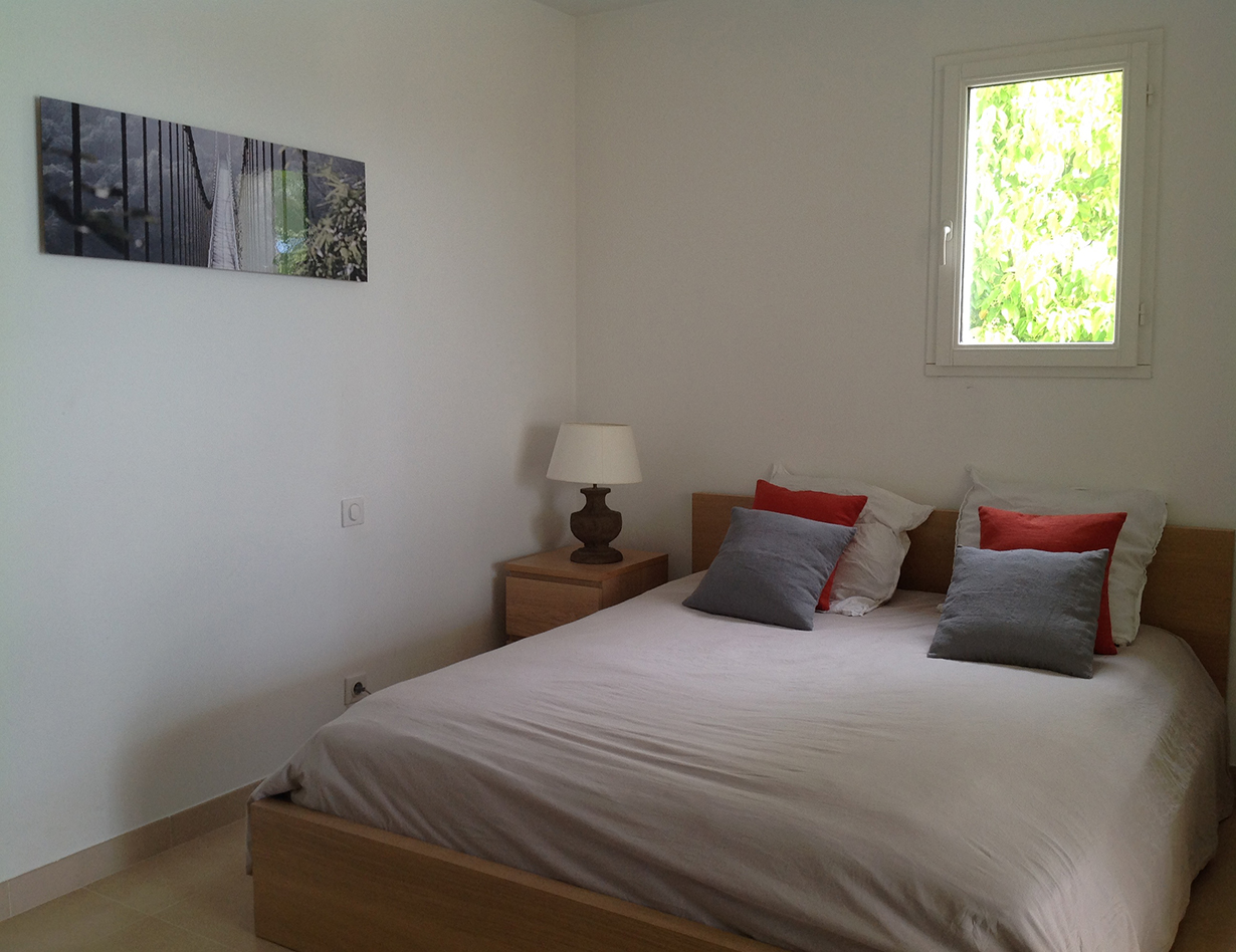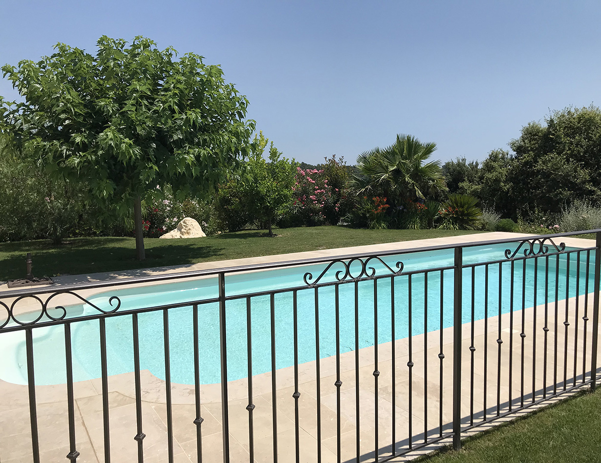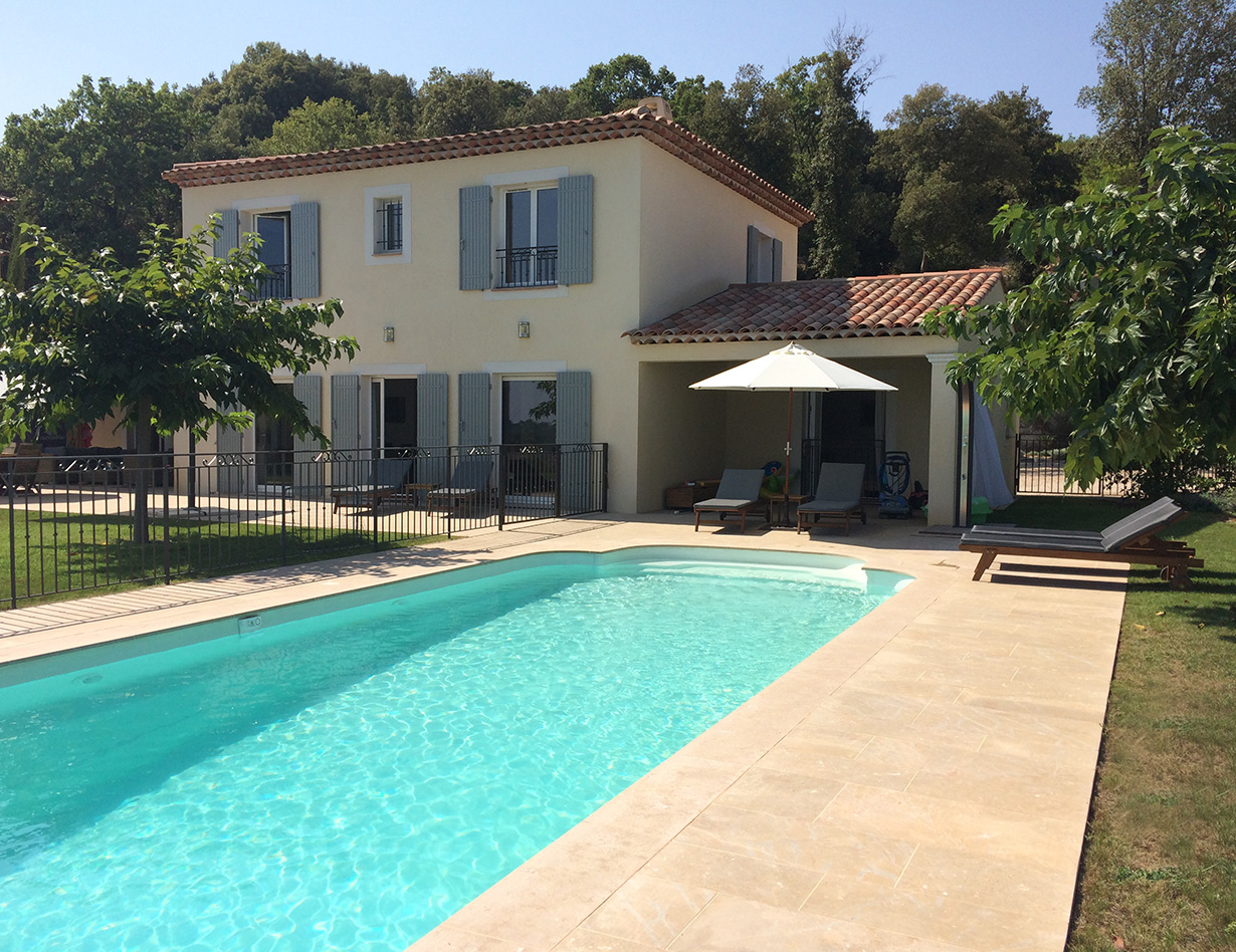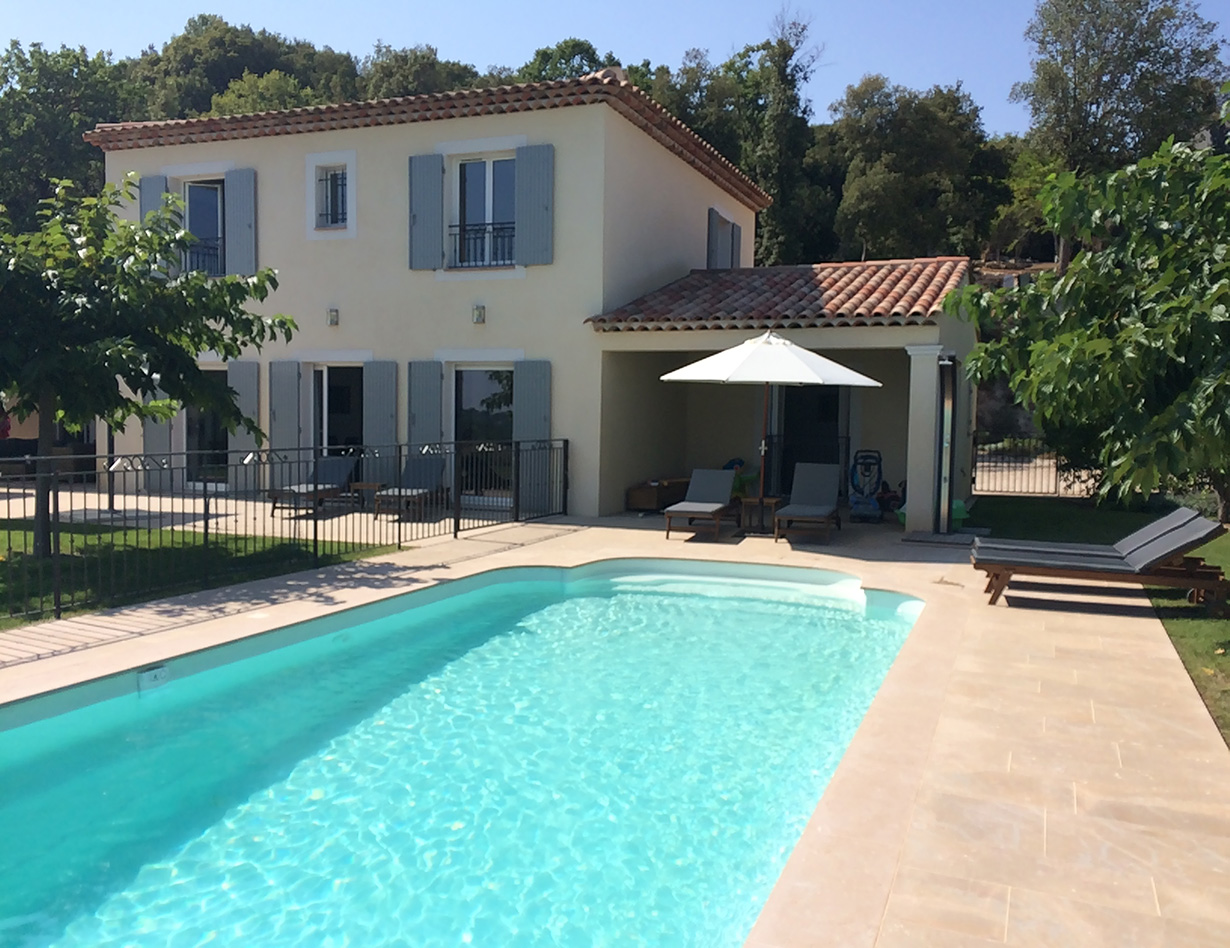PURE RELAXATION: VILLA «ST. JULIEN» IN BIOT/ANTIBES Are you looking for a spacious holiday apartment or beautiful villa in the Alpes Maritimes department where up to eight people can spend a relaxing holiday and completely switch off? Then our villa «ST. JULIEN» near Biot is exactly the right place for you! With around 180 square meters of living space in a quiet location, the Provencal bastide offers enough space for a successful relaxing holiday with friends or family on the Côte d’Azur – the ideal villa for everyone who is really looking for peace and quiet. It is around ten minutes from the artist town of Biot, which is best known for its glass art, and only 15-20 minutes from Antibes. You can start wonderful hikes or bike tours in breathtaking landscapes directly from the holiday home. Relax and unwind with a sea view – in our villa near Biot The villa on a flat plot with plenty of space to relax and play has four spacious, stylishly furnished bedrooms, three bathrooms and four separate toilets. The large living and dining area with a well-equipped kitchen leads to the partially covered terrace in the beautiful garden. Here, comfortable, high-quality lounge furniture and a large dining table invite you to linger and relax – there is also a BBQ. Enjoy your meals with a fantastic view of the sea! Speaking of the sea: Biot is only four kilometers from the coast, and you can quickly reach the beach by car. If you would rather swim in the pool instead of in the sea, that is of course also possible: the villa has a fantastic pool with comfortable loungers and large shady parasols. Please send us your non-binding inquiry directly or let us advise you personally.