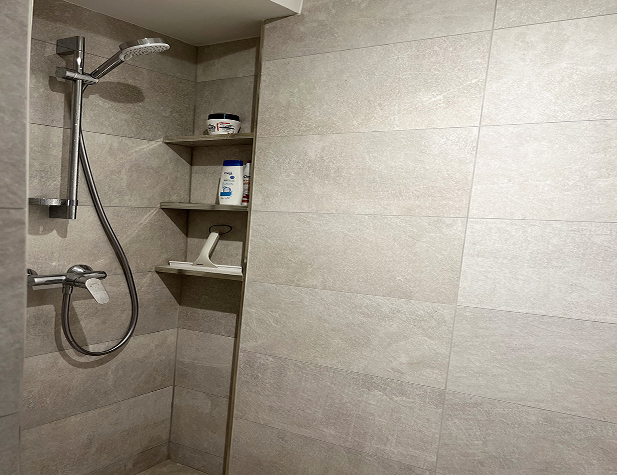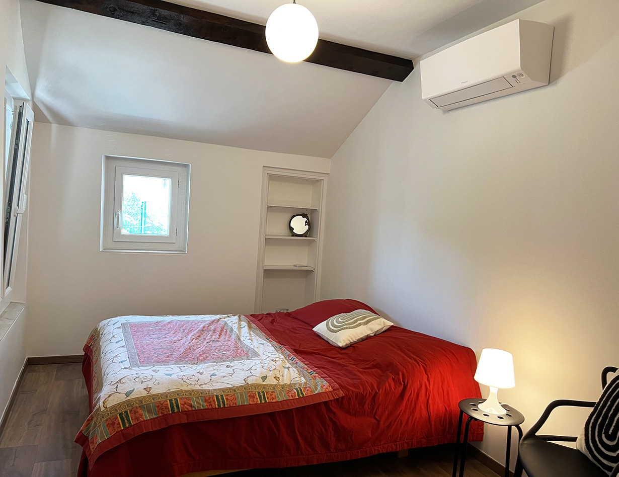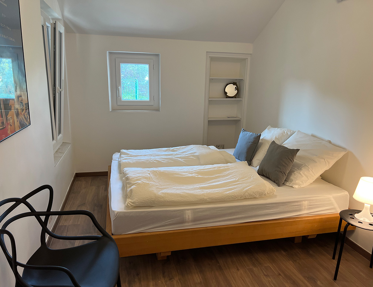 OG, schönes großes Schlafzimmer mit Doppelbett 160 x 200, sep. Badezimmer, WC, große Dusche. Klimaanlage