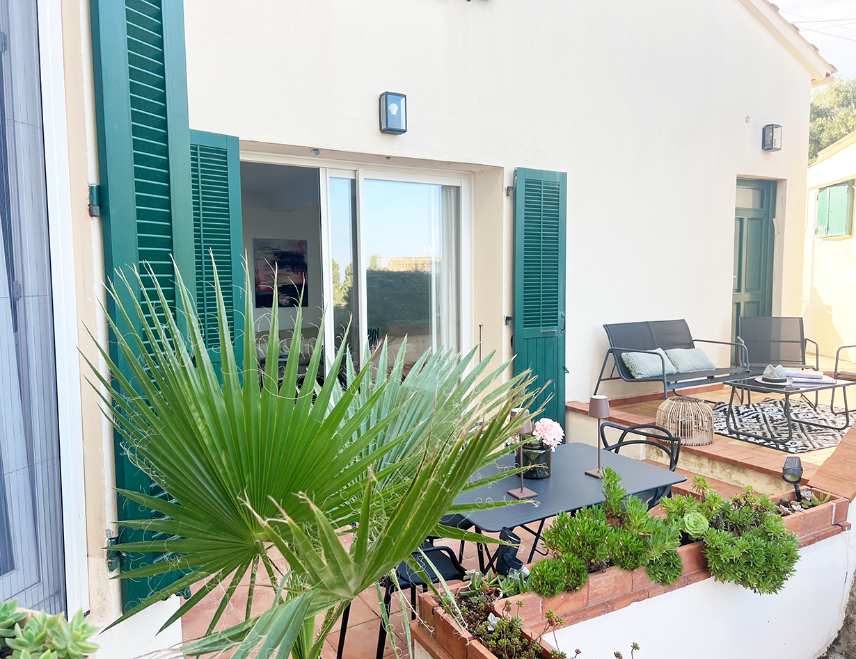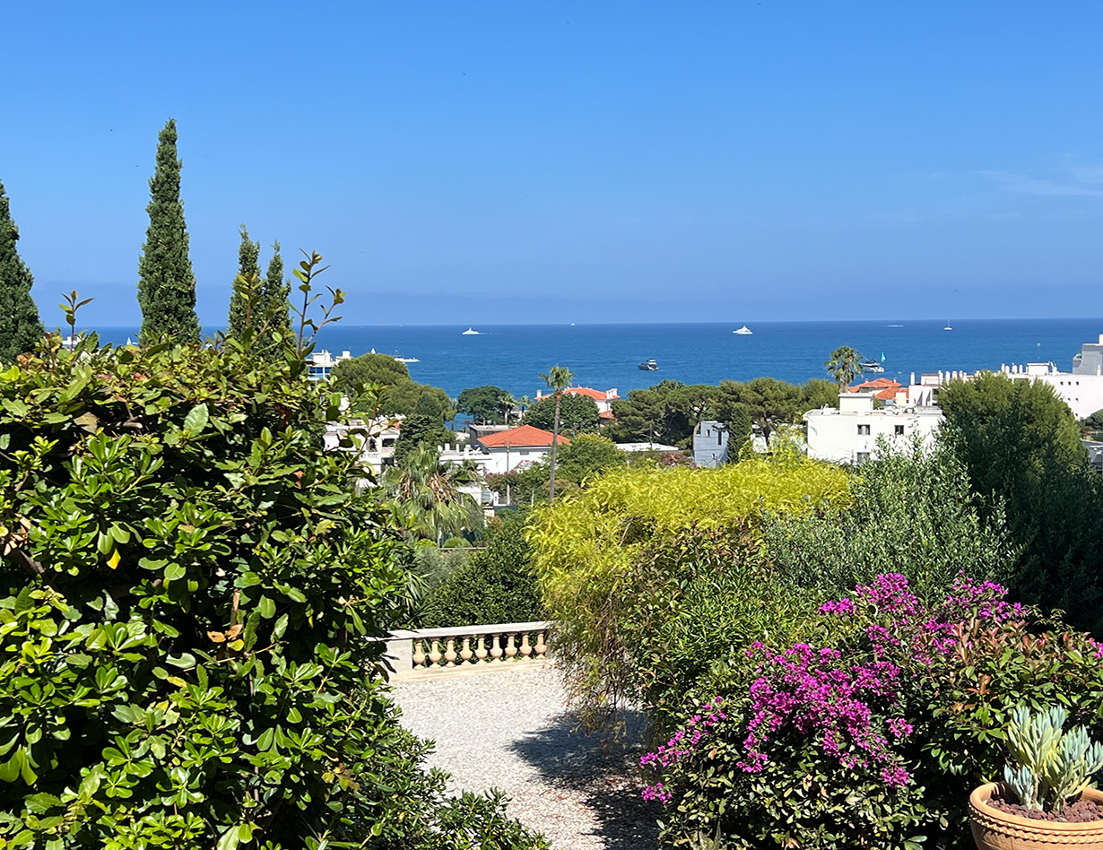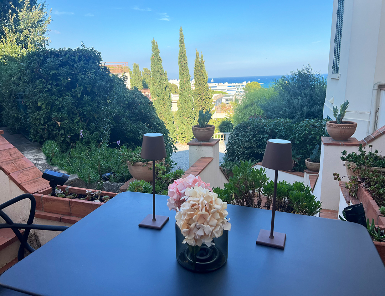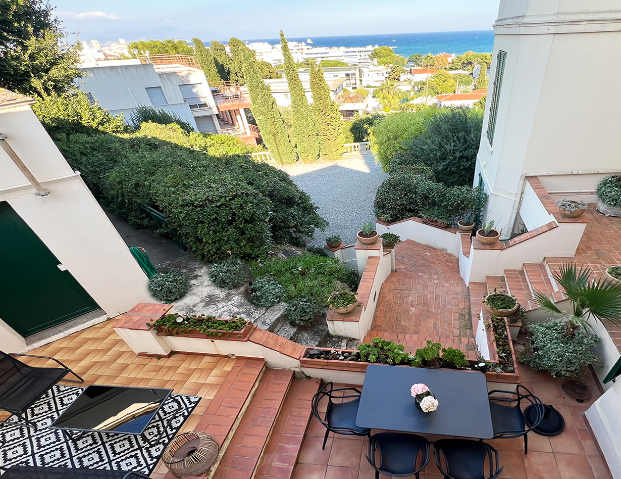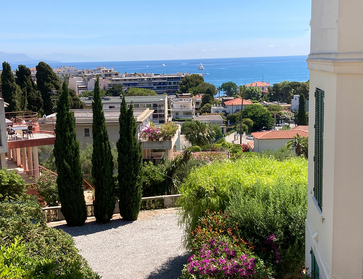 BESTLAGE: Charmantes komplett saniertes Luxus Duplex Cottage, in einer wunderbaren herrschaftlichen denkmalgeschützten Villa-Anlage. Sehr ruhige Wohnanlage. Diese Lage ist auch einmalig, zwischen dem wunderbaren Antibes und dem quirligen Juan-les-Pins. Beide Orte sind zu Fuß erreichbar! Das über 2 Etagen gehende schicke Cottage besticht durch seinen herrlichen Meerblick und die ruhige Lage. Es verfügt über einen grosszügigen Wohnraum mit Eßtisch, gemütlichen Sofas, Samsung-Frame-TV, Google Soundbox, WIFI. 2 schöne großzügige Schlafzimmer mit sehr komfortablen Doppelbetten 160 cm, 2 neue schicke Dusch-Bäder, 2 WCs. Klimaanlage im ganzen Haus. Das 3. Zimmer als Homeoffice eingerichtet mit sensationellem Meerblick, ein zusätzliches komfortables Schlafsofa mit Topper kann dort vorbereitet werden, sodass 3 vollwertige Schlafzimmer möglich sind. Tolle moderne top ausgestattete große Küche, Nespresso, normale Kaffeemaschine, Wasserkocher, Spül-und Waschmaschine. Auf der netten Terrasse gibt es neben der Sitzgruppe mit Esstisch auch eine Lounge-Ecke zum Chillen und den Ausblick auf das Meer zu genießen. Diesen schönen Blick genießt man auch direkt aus dem Wohnraum, Schlafzimmer im EG und aus dem darüberliegende Arbeitszimmer. Weber Holzkohle-BBQ. Das Auto benötigen Sie nicht, wenn Sie nicht wollen:) Fußläufig zum Meer, dem Sandstrand, in wenigen Minuten am Markt und in der Altstadt Antibes, am Hafen und auch nach Juan-Les-Pins – toll wenn dort die Festivals sind oder man zu Fuß zum Feuerwerk möchte! Selbst zum Bahnhof Antibes kann man gut laufen. Private geschlossene Garage mit direktem Zugang über die Terrasse. Für alle, die genau diese Lage schätzen und es gerne ruhig und sehr schön und gepflegt haben wollen.