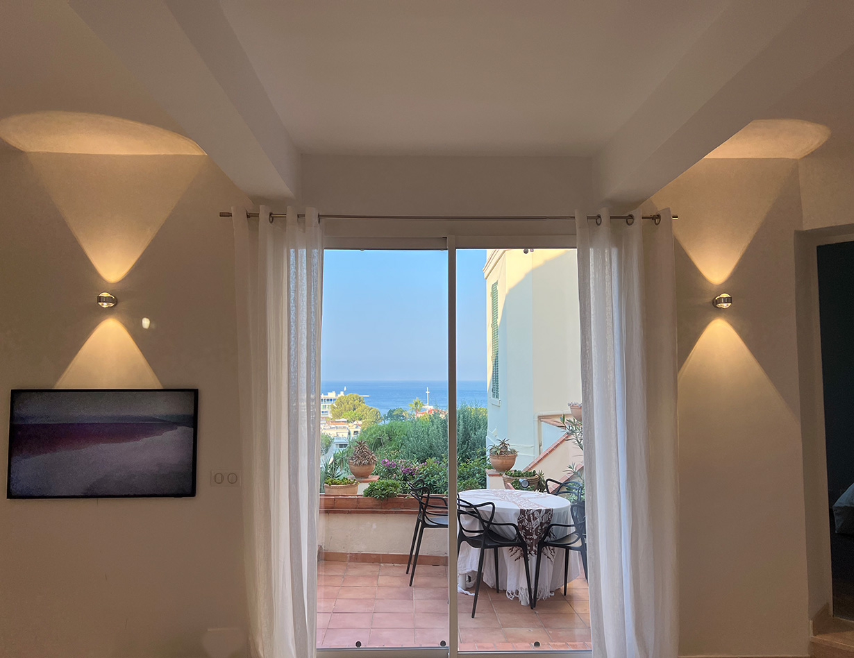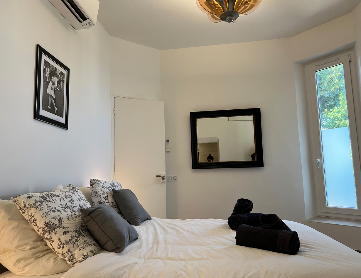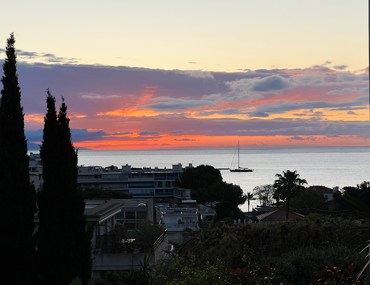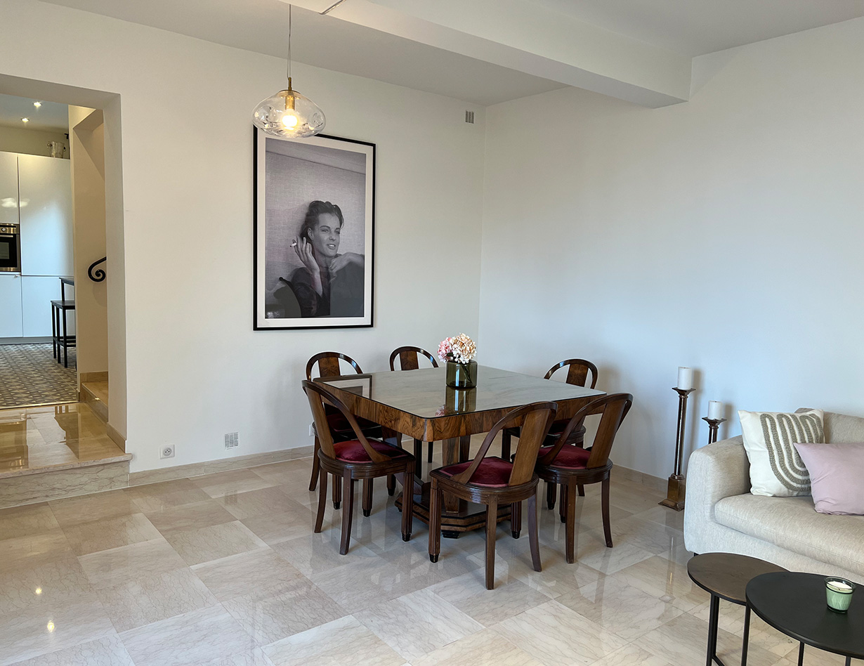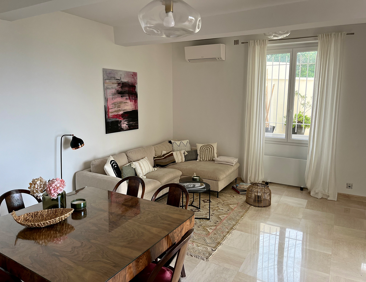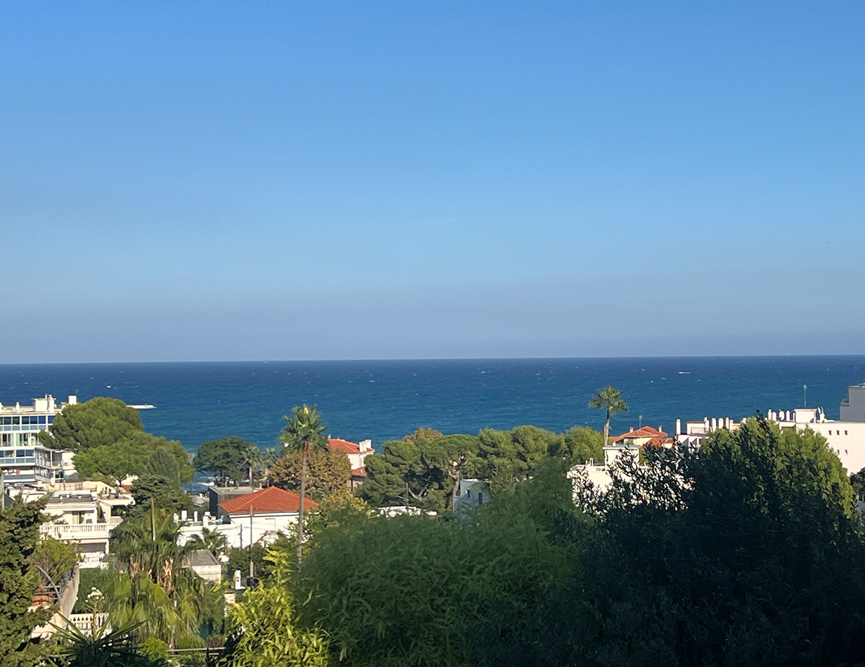 BESTLAGE: Charmantes komplett saniertes Luxus Duplex Cottage, in einer wunderbaren herrschaftlichen denkmalgeschützten Villa-Anlage. Sehr ruhige Wohnanlage. Diese Lage ist auch einmalig, zwischen dem wunderbaren Antibes und dem quirligen Juan-les-Pins. Beide Orte sind zu Fuß erreichbar! Das über 2 Etagen gehende schicke Cottage besticht durch seinen herrlichen Meerblick und die ruhige Lage. Es verfügt über einen grosszügigen Wohnraum mit Eßtisch, gemütlichen Sofas, Samsung-Frame-TV, Google Soundbox, WIFI. 2 schöne großzügige Schlafzimmer mit sehr komfortablen Doppelbetten 160 cm, 2 neue schicke Dusch-Bäder, 2 WCs. Klimaanlage im ganzen Haus. Das 3. Zimmer als Homeoffice eingerichtet mit sensationellem Meerblick, ein zusätzliches komfortables Schlafsofa mit Topper kann dort vorbereitet werden, sodass 3 vollwertige Schlafzimmer möglich sind. Tolle moderne top ausgestattete große Küche, Nespresso, normale Kaffeemaschine, Wasserkocher, Spül-und Waschmaschine. Auf der netten Terrasse gibt es neben der Sitzgruppe mit Esstisch auch eine Lounge-Ecke zum Chillen und den Ausblick auf das Meer zu genießen. Diesen schönen Blick genießt man auch direkt aus dem Wohnraum, Schlafzimmer im EG und aus dem darüberliegende Arbeitszimmer. Weber Holzkohle-BBQ. Das Auto benötigen Sie nicht, wenn Sie nicht wollen:) Fußläufig zum Meer, dem Sandstrand, in wenigen Minuten am Markt und in der Altstadt Antibes, am Hafen und auch nach Juan-Les-Pins – toll wenn dort die Festivals sind oder man zu Fuß zum Feuerwerk möchte! Selbst zum Bahnhof Antibes kann man gut laufen. Private geschlossene Garage mit direktem Zugang über die Terrasse. Für alle, die genau diese Lage schätzen und es gerne ruhig und sehr schön und gepflegt haben wollen.