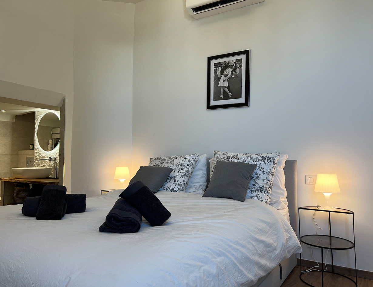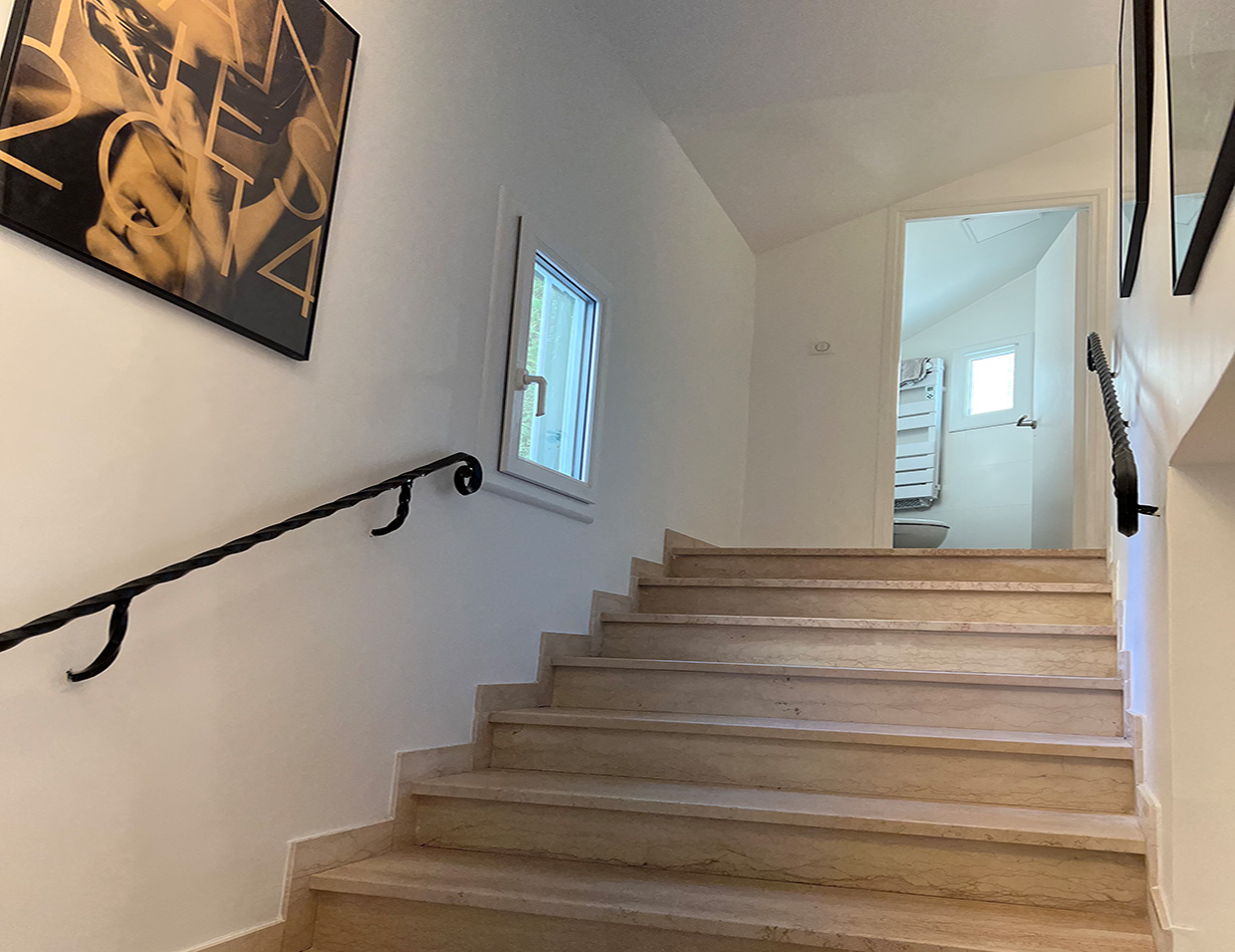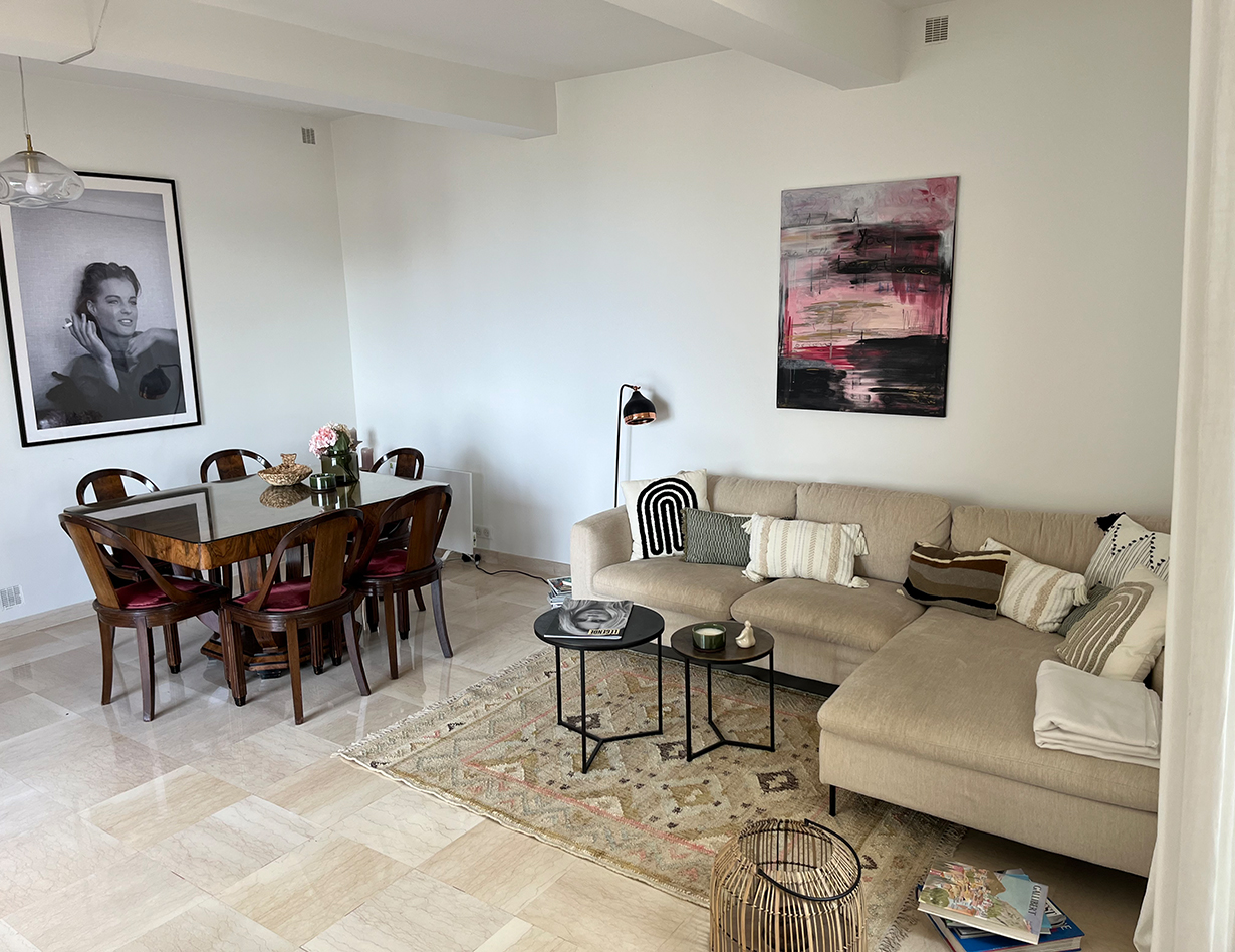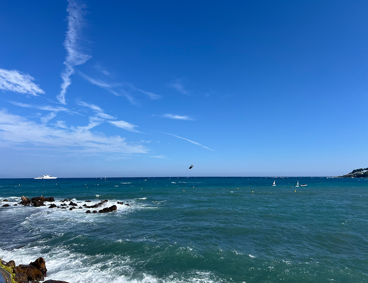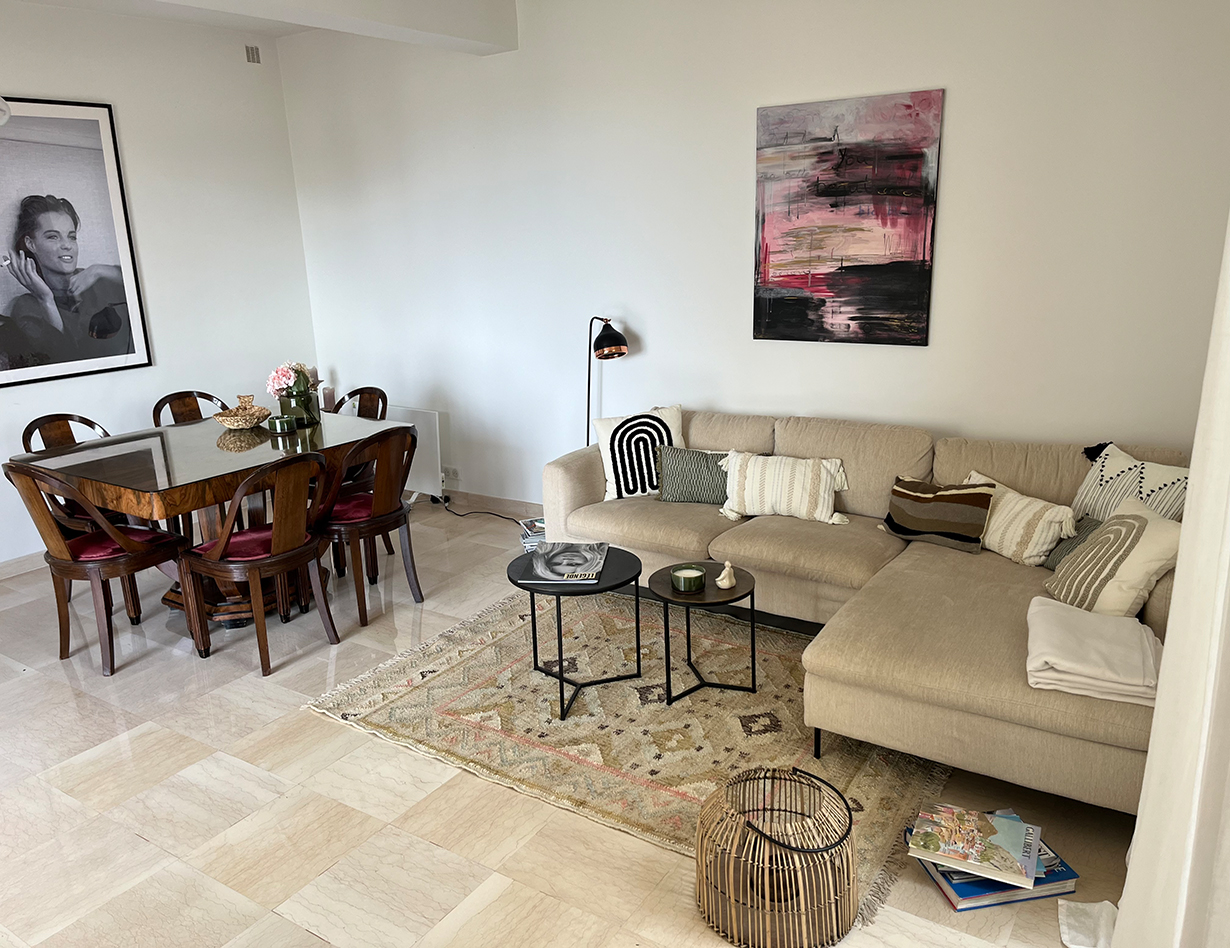 BESTLAGE: Charmantes komplett saniertes Luxus Duplex Cottage, in einer wunderbaren herrschaftlichen denkmalgeschützten Villa-Anlage. Sehr ruhige Wohnanlage. Diese Lage ist auch einmalig, zwischen dem wunderbaren Antibes und dem quirligen Juan-les-Pins. Beide Orte sind zu Fuß erreichbar! Das über 2 Etagen gehende schicke Cottage besticht durch seinen herrlichen Meerblick und die ruhige Lage. Es verfügt über einen grosszügigen Wohnraum mit Eßtisch, gemütlichen Sofas, Samsung-Frame-TV, Google Soundbox, WIFI. 2 schöne großzügige Schlafzimmer mit sehr komfortablen Doppelbetten 160 cm, 2 neue schicke Dusch-Bäder, 2 WCs. Klimaanlage im ganzen Haus. Das 3. Zimmer als Homeoffice eingerichtet mit sensationellem Meerblick, ein zusätzliches komfortables Schlafsofa mit Topper kann dort vorbereitet werden, sodass 3 vollwertige Schlafzimmer möglich sind. Tolle moderne top ausgestattete große Küche, Nespresso, normale Kaffeemaschine, Wasserkocher, Spül-und Waschmaschine. Auf der netten Terrasse gibt es neben der Sitzgruppe mit Esstisch auch eine Lounge-Ecke zum Chillen und den Ausblick auf das Meer zu genießen. Diesen schönen Blick genießt man auch direkt aus dem Wohnraum, Schlafzimmer im EG und aus dem darüberliegende Arbeitszimmer. Weber Holzkohle-BBQ. Das Auto benötigen Sie nicht, wenn Sie nicht wollen:) Fußläufig zum Meer, dem Sandstrand, in wenigen Minuten am Markt und in der Altstadt Antibes, am Hafen und auch nach Juan-Les-Pins – toll wenn dort die Festivals sind oder man zu Fuß zum Feuerwerk möchte! Selbst zum Bahnhof Antibes kann man gut laufen. Private geschlossene Garage mit direktem Zugang über die Terrasse. Für alle, die genau diese Lage schätzen und es gerne ruhig und sehr schön und gepflegt haben wollen.