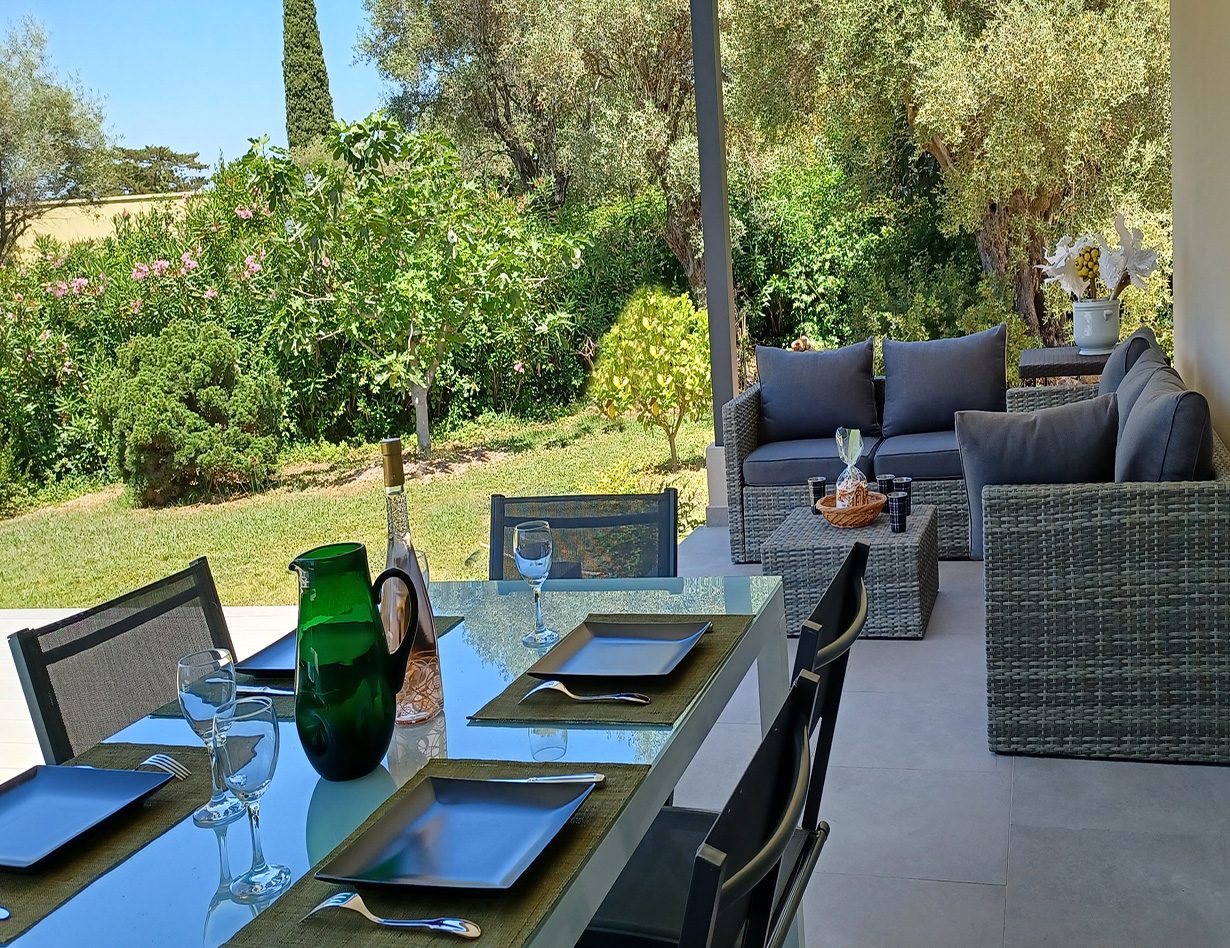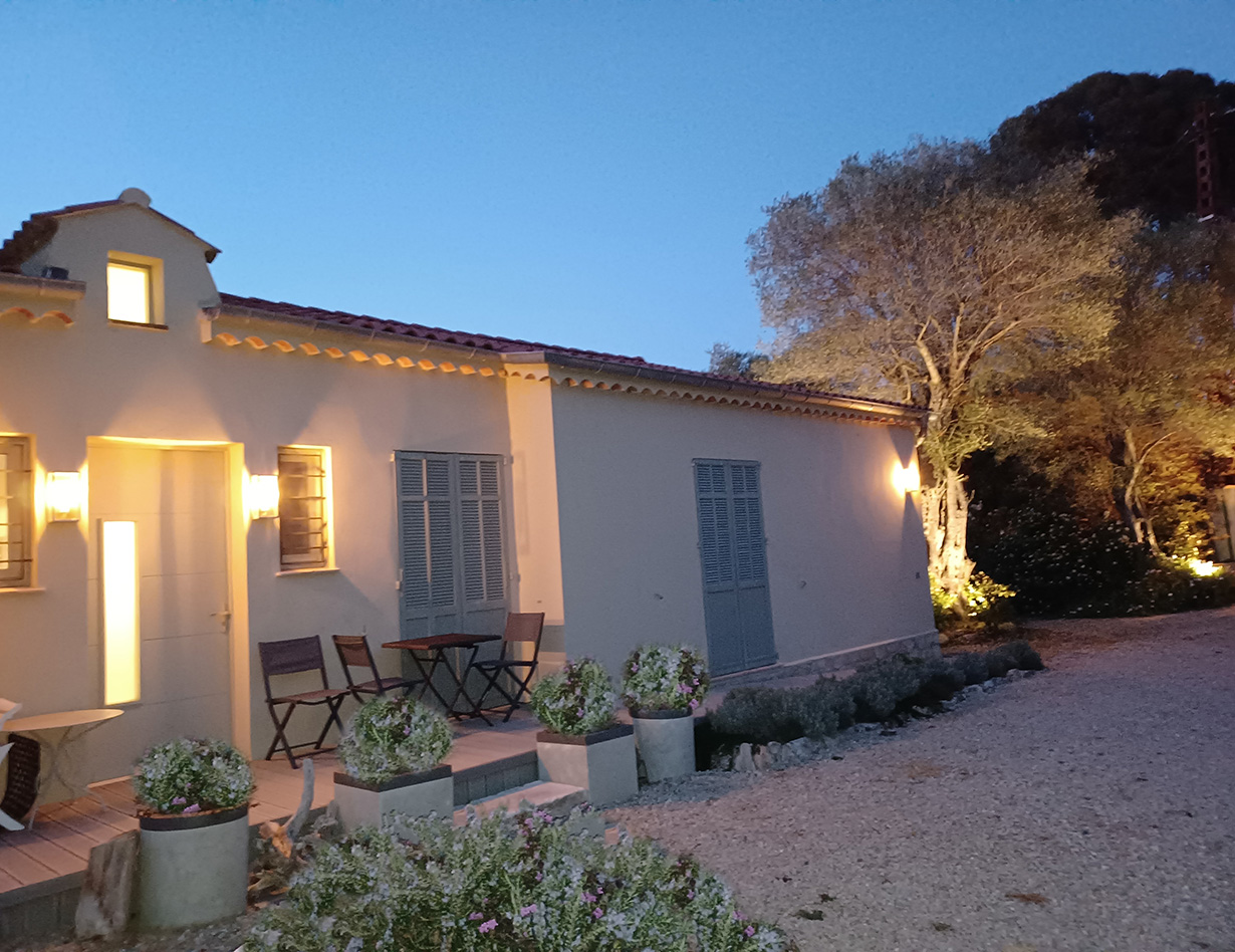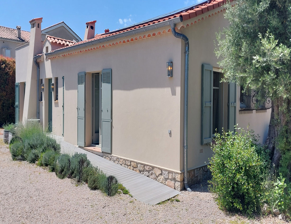 In allerbester Villen-Lage am Cap Antibes. Zu Fuß zum Sand-Strand, zu Fuß zu Restaurants, zum Ort. Familienbesitz seit Jahren: Sehr schöne gerade renovierte Villa auf einer Ebene, verfügt über 3 hübsche Schlafzimmer (entweder 3 Doppelzimmer oder 2 Doppelzimmer und 2 Einzelbetten) mit Klimaanlage, 3 Bäder, Küche, gemütlicher Wohnbereich mit Kamin, Eßbereich. Vor dem Wohnbereich liegt eine große tolle Terrasse mit gemütlichen Loungemöbeln und einem Tisch. BBQ. Schöner Pool mit Gegenschwimmanlage und mit mehreren Massageplätzen (Tiefe 1.20 ), 28°, lädt zum Verweilen ein, ein wirklich angenehmes Erlebnis! Flaches Grundstück, Kinderschaukel, viel Platz zum Spielen. Das Grundstück ist komplett eingezäunt, 2 Parkplätze sehr komfortabel, elektrisches Tor. Man kann zudem über eine Treppe auf die Dachterrasse gelangen, dort befindet sich noch mal ein wirklich sehr schöner Spot um die komplette Umgebung zu sehen. Ideal für den Aperitif am Abend bei Sonnenuntergang. Ein ideales Haus mit Kindern und für alle, die gerne das Auto stehen lassen wollen. Das Haus ist teilweise barrierefrei – bitte fragen Sie genau nach! „Ich habe das Haus in 2023 neu aufgenommen. Sehr gute Lage und gute Ausstattung. Ein Haus für alle, die es gerne praktisch und komfortabel haben wollen um einen ganz entspannten Urlaub genießen zu können. Für mich das ideale Haus auch mit kleinen Kindern. Ihre Simone Andres“