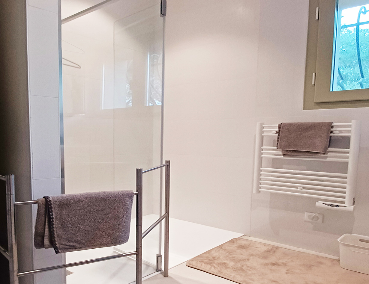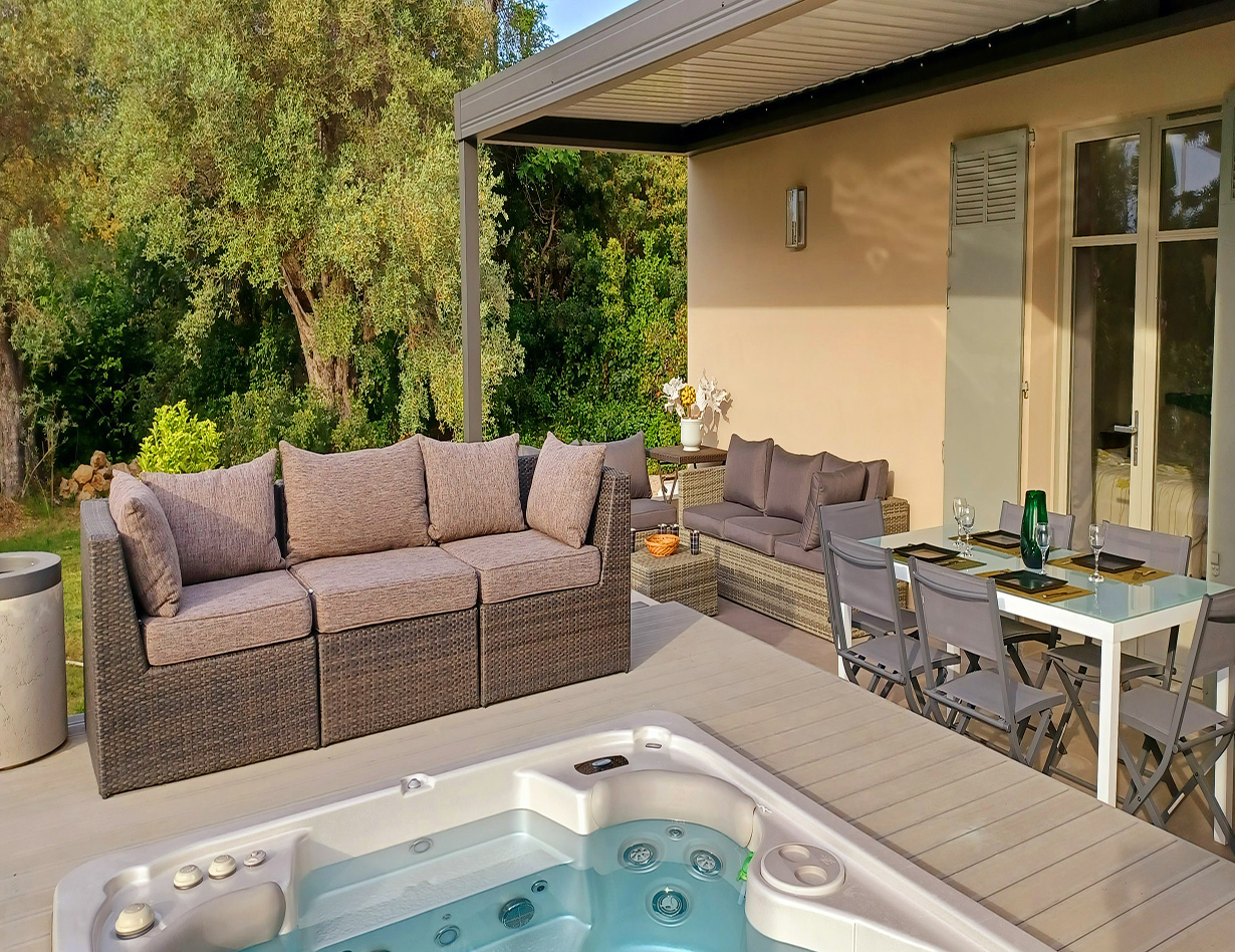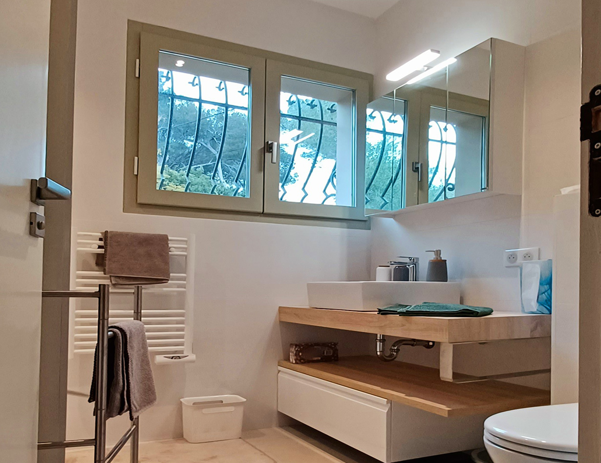 In allerbester Villen-Lage am Cap Antibes. Zu Fuß zum Sand-Strand, zu Fuß zu Restaurants, zum Ort. Familienbesitz seit Jahren: Sehr schöne gerade renovierte Villa auf einer Ebene, verfügt über 3 hübsche Schlafzimmer (entweder 3 Doppelzimmer oder 2 Doppelzimmer und 2 Einzelbetten) mit Klimaanlage, 3 Bäder, Küche, gemütlicher Wohnbereich mit Kamin, Eßbereich. Vor dem Wohnbereich liegt eine große tolle Terrasse mit gemütlichen Loungemöbeln und einem Tisch. BBQ. Schöner Pool mit Gegenschwimmanlage und mit mehreren Massageplätzen (Tiefe 1.20 ), 28°, lädt zum Verweilen ein, ein wirklich angenehmes Erlebnis! Flaches Grundstück, Kinderschaukel, viel Platz zum Spielen. Das Grundstück ist komplett eingezäunt, 2 Parkplätze sehr komfortabel, elektrisches Tor. Man kann zudem über eine Treppe auf die Dachterrasse gelangen, dort befindet sich noch mal ein wirklich sehr schöner Spot um die komplette Umgebung zu sehen. Ideal für den Aperitif am Abend bei Sonnenuntergang. Ein ideales Haus mit Kindern und für alle, die gerne das Auto stehen lassen wollen. Das Haus ist teilweise barrierefrei – bitte fragen Sie genau nach! „Ich habe das Haus in 2023 neu aufgenommen. Sehr gute Lage und gute Ausstattung. Ein Haus für alle, die es gerne praktisch und komfortabel haben wollen um einen ganz entspannten Urlaub genießen zu können. Für mich das ideale Haus auch mit kleinen Kindern. Ihre Simone Andres“