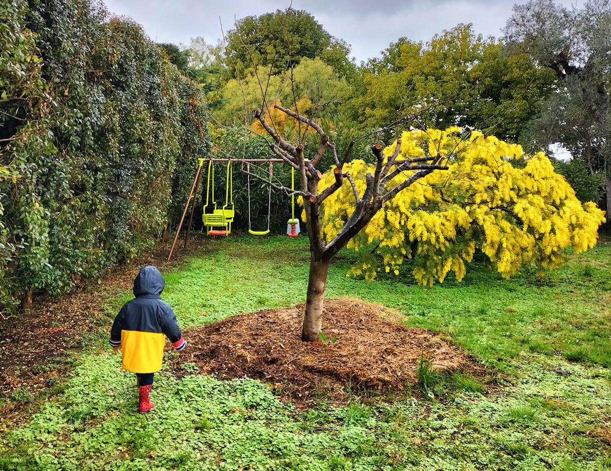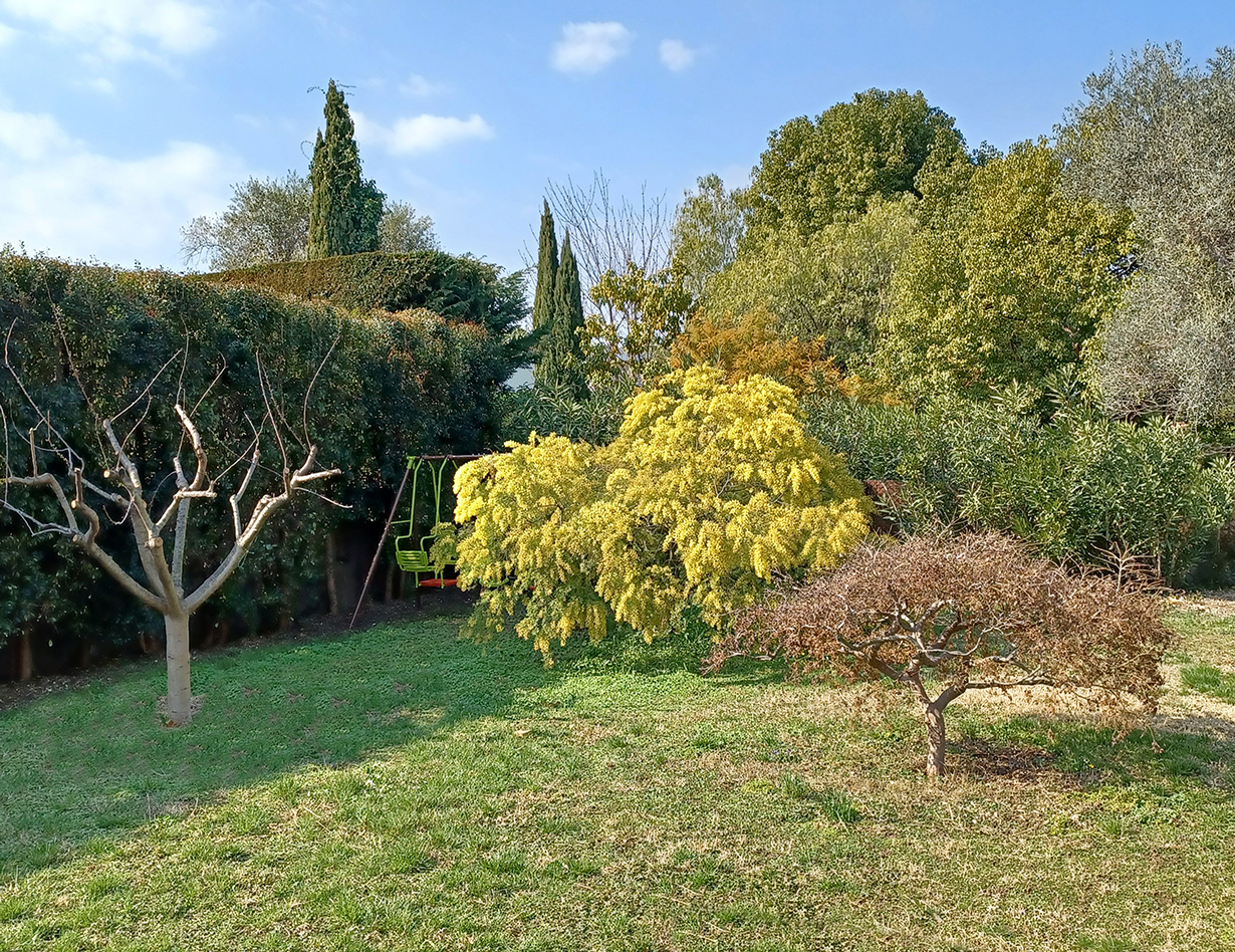 Ca 1500 m2, flaches Grundstück, gezäunt. Natürlicher garten mit mediterranen Pflanzen. Olivenbäumen, Mimosen, Zitrusbäumen