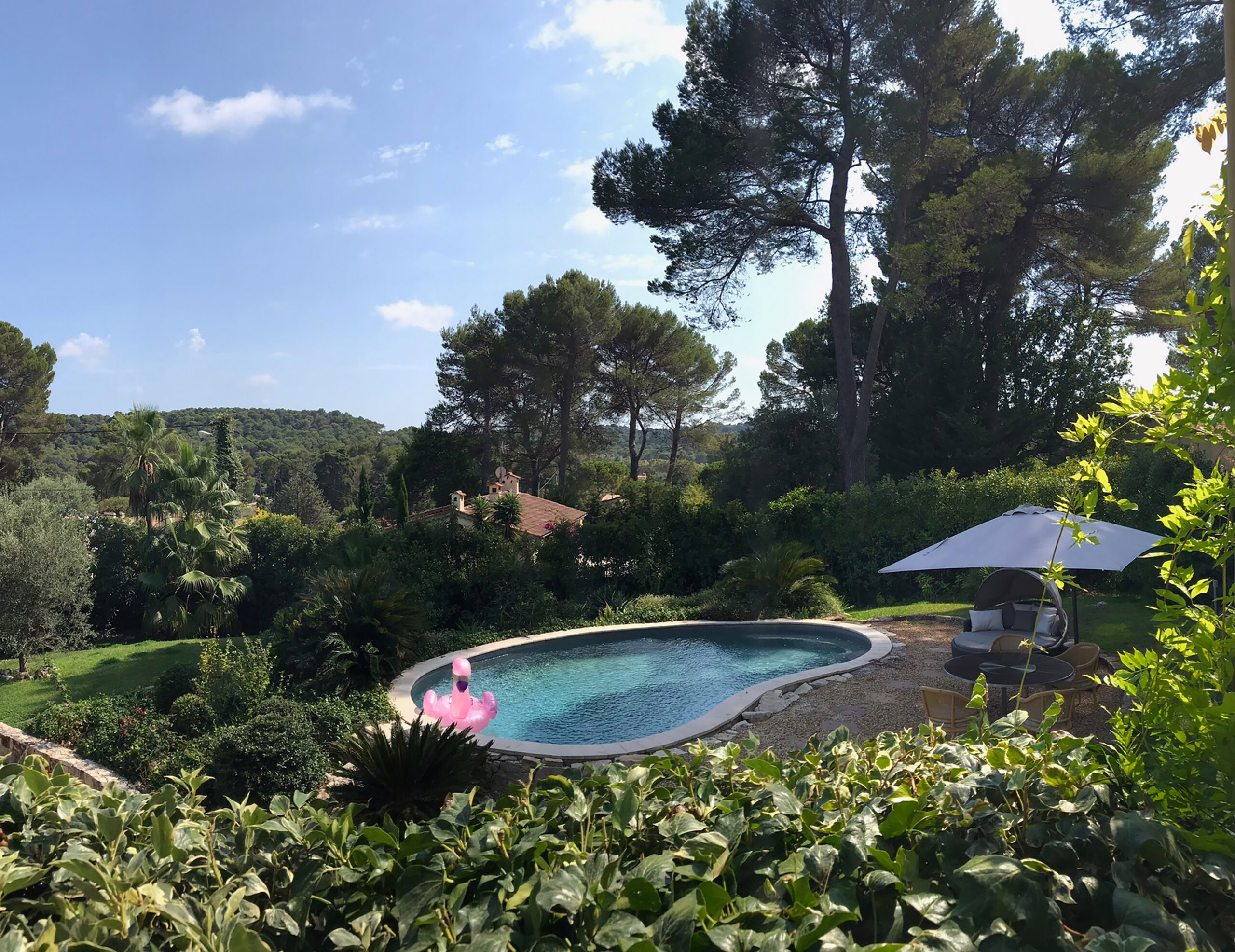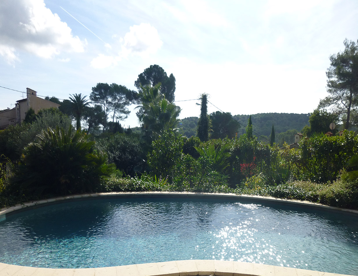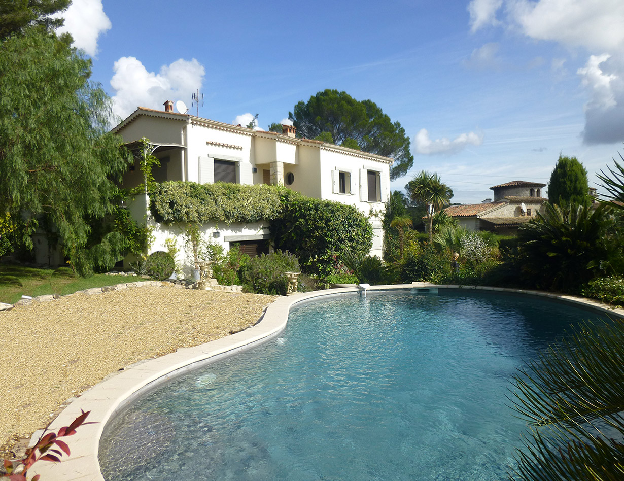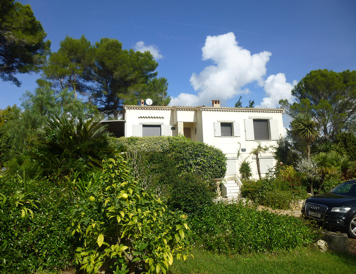Schöne sehr gepflegte Villa in der sehr exklusiven Domaine de La Peyiere am sehr gefragten Golfplatz Cannes-Mougins. Die luxuriöse Villa liegt in ruhiger Lage auf einem komplett eingezäunten Grundstück. Das sehr gepflegte Haus verfügt über 4 Schlafzimmer, 2 Bäder, 3 WCs, eine schöne neue moderne gut ausgestattete Küche und einen offenen Wohn- Eßbereich. Mehrere TV-Geräte, Wii, Tischtennisplatte. Von der Küche aus begeht man direkt die Terrasse mit Außen-Eßtisch. Mehrere TV-Geräte, Klimaanlage in allen Schlafzimmern. Schöner Garten mit Swimming Pool in freier Form mit Gartenmöbeln und Sonnenschirmen (sieht man nicht alles auf den Fotos). Auf der Gartenebene befindet sich zudem noch eine Sommerküche mit großem Kühlschrank. BBQ. Auf dem Grundstück beenden sich ausreichend Parkmöglichkeiten für mehrere Autos. Elektrisches Gate. Eine sehr gepflegtes Objekt in sehr guter Lage. Ideal für Golfspieler, der exklusive Golf-Club Cannes Mougins liegt am Eingang der Domaine. Bäcker auch ganz in der Nähe. Für Gäste mit Hunden oder Gäste die gerne spazieren / joggen gehen: das Hausliegt direkt am Parc de la Valmasque und nicht weit vom l’Étang de Fontmerle de Mougins. Die Valmasque ist durchzogen von Wander- und Fitnesswegen welche man nicht nur mit dem Hund, sondern auch mit dem Rad erkunden kann. Der Etang beherbergt Europas größte Lotuskolonie, welche von Juli bis September in Blüte stehen. Antibes ist nur 20 Minuten entfernt, und Valbonne nur 10 Minuten, falls man mal eine Abwechslung von den guten Restaurants in Mougins braucht.