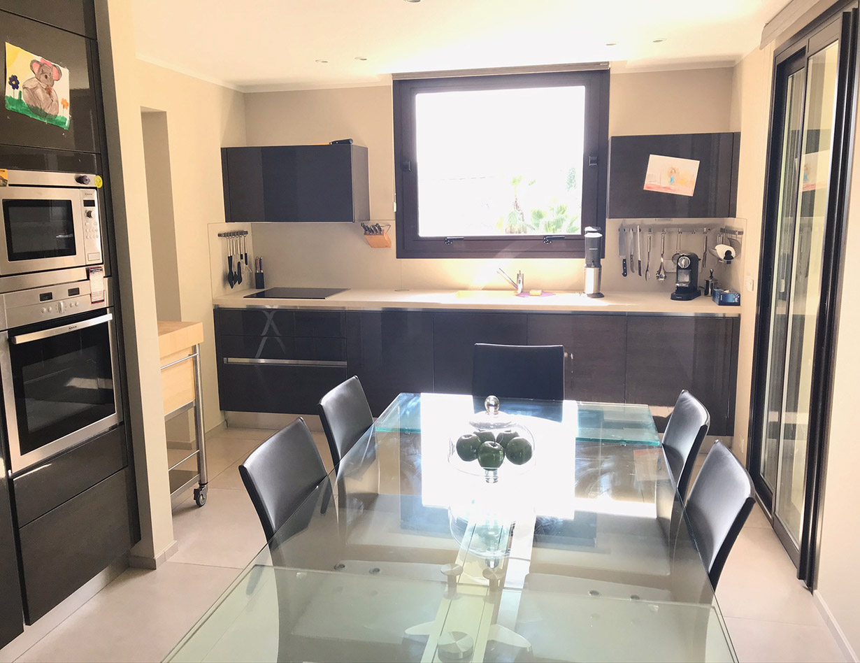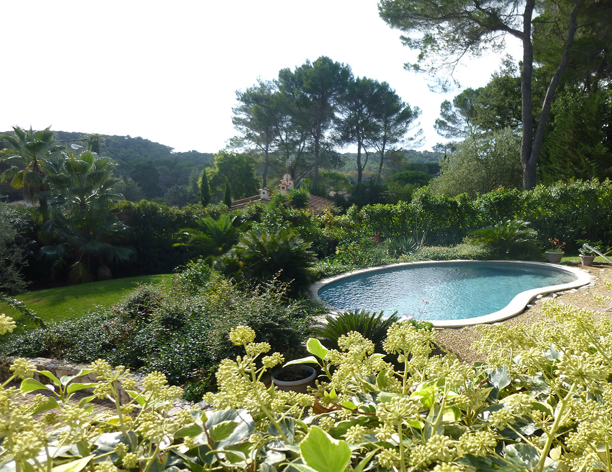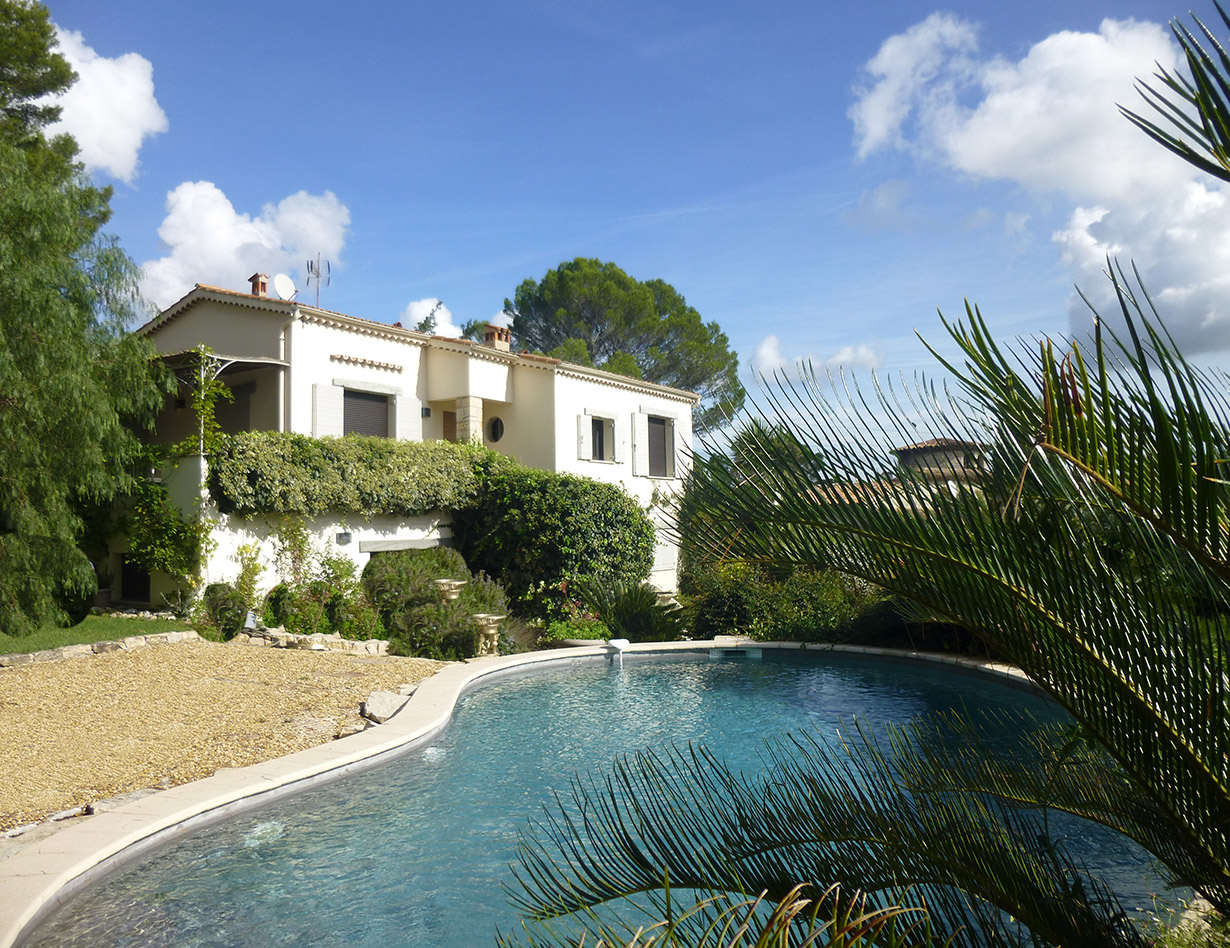 Schöne sehr gepflegte Villa in der sehr exklusiven Domaine de La Peyiere am sehr gefragten Golfplatz Cannes-Mougins. Die luxuriöse Villa liegt in ruhiger Lage auf einem komplett eingezäunten Grundstück. Das sehr gepflegte Haus verfügt über 4 Schlafzimmer, 2 Bäder, 3 WCs, eine schöne neue moderne gut ausgestattete Küche und einen offenen Wohn- Eßbereich. Mehrere TV-Geräte, Wii, Tischtennisplatte. Von der Küche aus begeht man direkt die Terrasse mit Außen-Eßtisch. Mehrere TV-Geräte, Klimaanlage in allen Schlafzimmern. Schöner Garten mit Swimming Pool in freier Form mit Gartenmöbeln und Sonnenschirmen (sieht man nicht alles auf den Fotos). Auf der Gartenebene befindet sich zudem noch eine Sommerküche mit großem Kühlschrank. BBQ. Auf dem Grundstück beenden sich ausreichend Parkmöglichkeiten für mehrere Autos. Elektrisches Gate. Eine sehr gepflegtes Objekt in sehr guter Lage. Ideal für Golfspieler, der exklusive Golf-Club Cannes Mougins liegt am Eingang der Domaine. Bäcker auch ganz in der Nähe. Für Gäste mit Hunden oder Gäste die gerne spazieren / joggen gehen: das Hausliegt direkt am Parc de la Valmasque und nicht weit vom l’Étang de Fontmerle de Mougins. Die Valmasque ist durchzogen von Wander- und Fitnesswegen welche man nicht nur mit dem Hund, sondern auch mit dem Rad erkunden kann. Der Etang beherbergt Europas größte Lotuskolonie, welche von Juli bis September in Blüte stehen. Antibes ist nur 20 Minuten entfernt, und Valbonne nur 10 Minuten, falls man mal eine Abwechslung von den guten Restaurants in Mougins braucht.