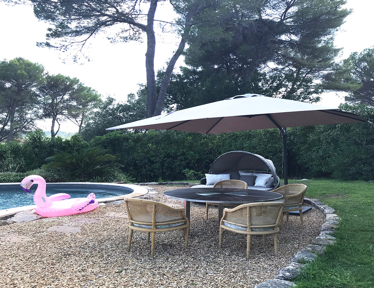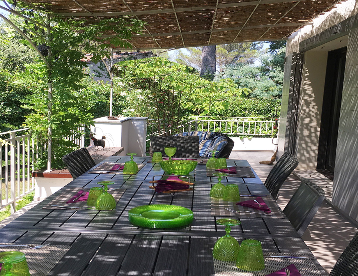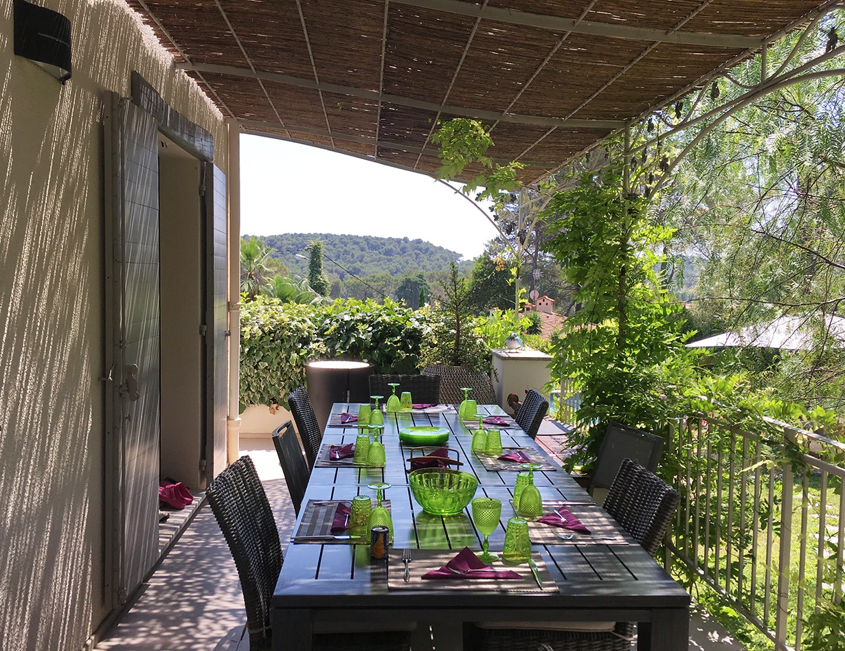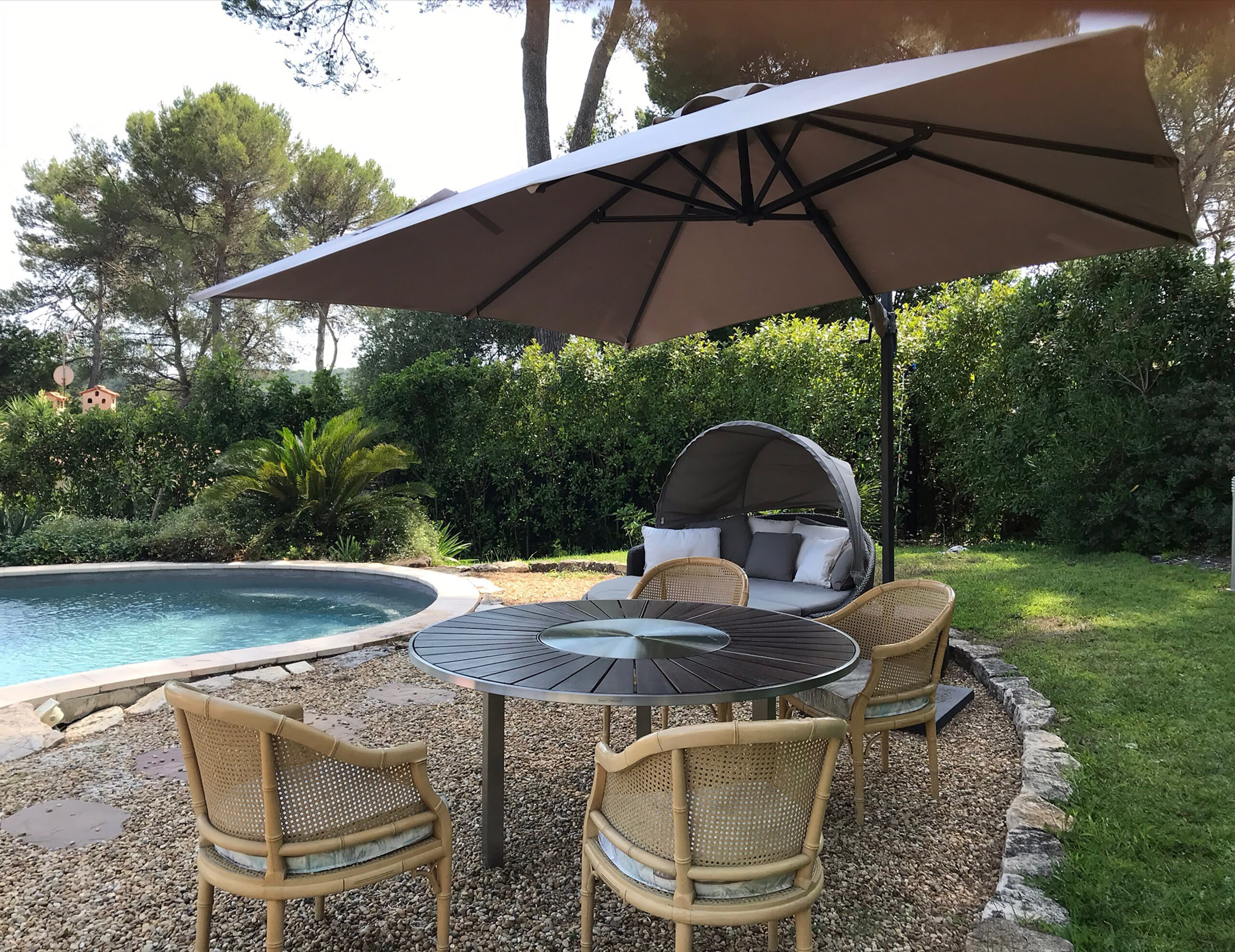 Schöne sehr gepflegte Villa in der sehr exklusiven Domaine de La Peyiere am sehr gefragten Golfplatz Cannes-Mougins. Die luxuriöse Villa liegt in ruhiger Lage auf einem komplett eingezäunten Grundstück. Das sehr gepflegte Haus verfügt über 4 Schlafzimmer, 2 Bäder, 3 WCs, eine schöne neue moderne gut ausgestattete Küche und einen offenen Wohn- Eßbereich. Mehrere TV-Geräte, Wii, Tischtennisplatte. Von der Küche aus begeht man direkt die Terrasse mit Außen-Eßtisch. Mehrere TV-Geräte, Klimaanlage in allen Schlafzimmern. Schöner Garten mit Swimming Pool in freier Form mit Gartenmöbeln und Sonnenschirmen (sieht man nicht alles auf den Fotos). Auf der Gartenebene befindet sich zudem noch eine Sommerküche mit großem Kühlschrank. BBQ. Auf dem Grundstück beenden sich ausreichend Parkmöglichkeiten für mehrere Autos. Elektrisches Gate. Eine sehr gepflegtes Objekt in sehr guter Lage. Ideal für Golfspieler, der exklusive Golf-Club Cannes Mougins liegt am Eingang der Domaine. Bäcker auch ganz in der Nähe. Für Gäste mit Hunden oder Gäste die gerne spazieren / joggen gehen: das Hausliegt direkt am Parc de la Valmasque und nicht weit vom l’Étang de Fontmerle de Mougins. Die Valmasque ist durchzogen von Wander- und Fitnesswegen welche man nicht nur mit dem Hund, sondern auch mit dem Rad erkunden kann. Der Etang beherbergt Europas größte Lotuskolonie, welche von Juli bis September in Blüte stehen. Antibes ist nur 20 Minuten entfernt, und Valbonne nur 10 Minuten, falls man mal eine Abwechslung von den guten Restaurants in Mougins braucht.
