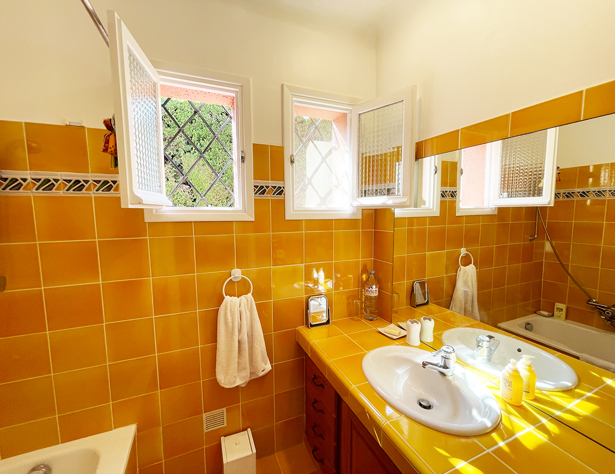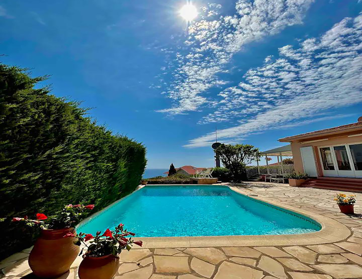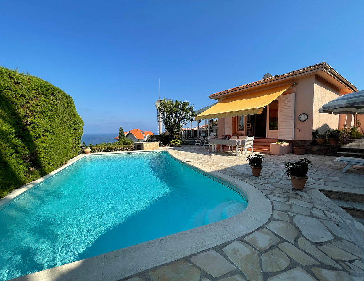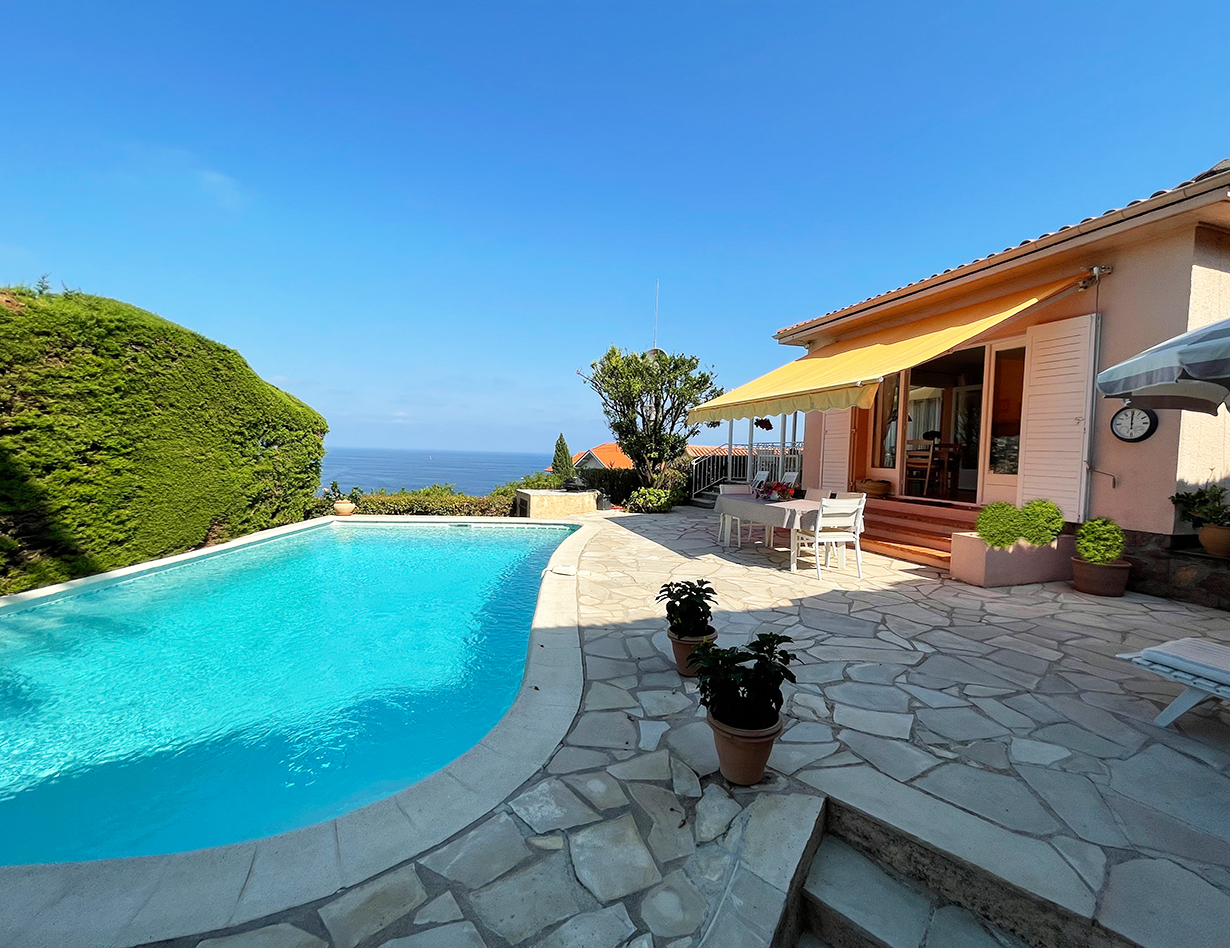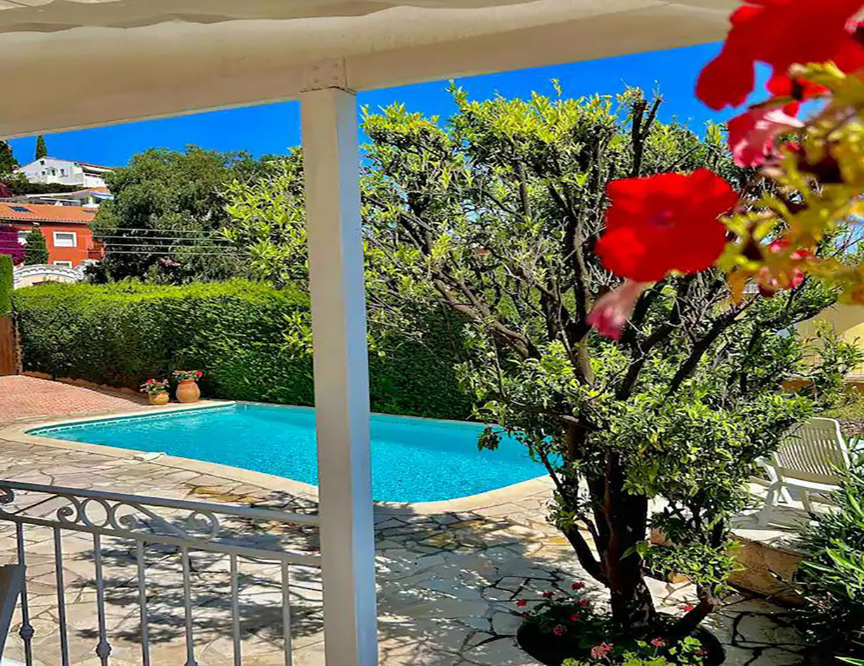 Sehr schönes Ferienhaus auf einer Ebene mit privatem Pool in bester Lage in Le Trayas/Agay, nah zum glamourösen Cannes mit seiner berühmten Croisette, den Filmfestspielen und vm. Das schöne gepflegte Haus liegt nur wenige Gehminuten vom Meer entfernt. Den Supermarkt und zum täglichen Baguette und Croissant holen können Sie in 5 Minuten erreichen. Das nette Haus liegt in einer privaten Domaine in Trayas in ruhiger Lage. Das Haus verfügt über zwei schöne Schlafzimmer mit Doppelbetten und Klimaanlage, 2 Bäder, 2 WCs, eine separate gut ausgestattete Küche und ein Wohn-Eßzimmer mit Meerblick. Eine schöne Terrasse liegt direkt davor mit einem tollen Blick, großem Eßtisch und Loungemöbeln. Am netten Pool lässt es sich den ganzen Tag über aushalten auf komfortablen Sonnenliegen. Oder etwas Boule spielen auf dem Grundstück, was vor dem haus liegt. Das Auto können Sie komfortabel auf dem Grundstück parken oder auch direkt vor dem Haus in der privaten Domaine. Ein sehr angenehmes Haus mit einem wunderschönen Meer-Blick und ein herrlicher Blick auf die Bucht von Cannes.