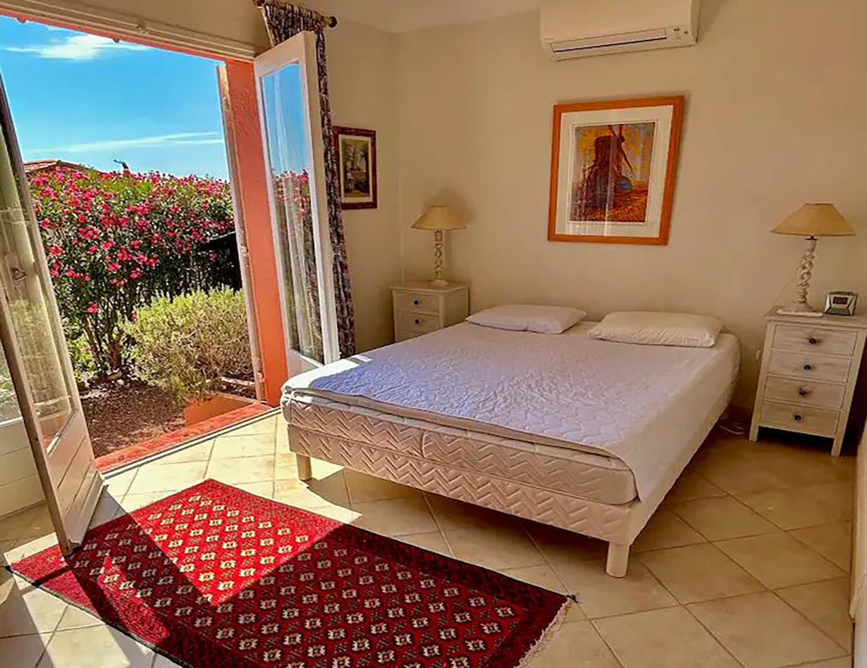 Schlafzimmer 1: Doppelbett, Austritt zur Terrasse, Klimaanlage, Bad