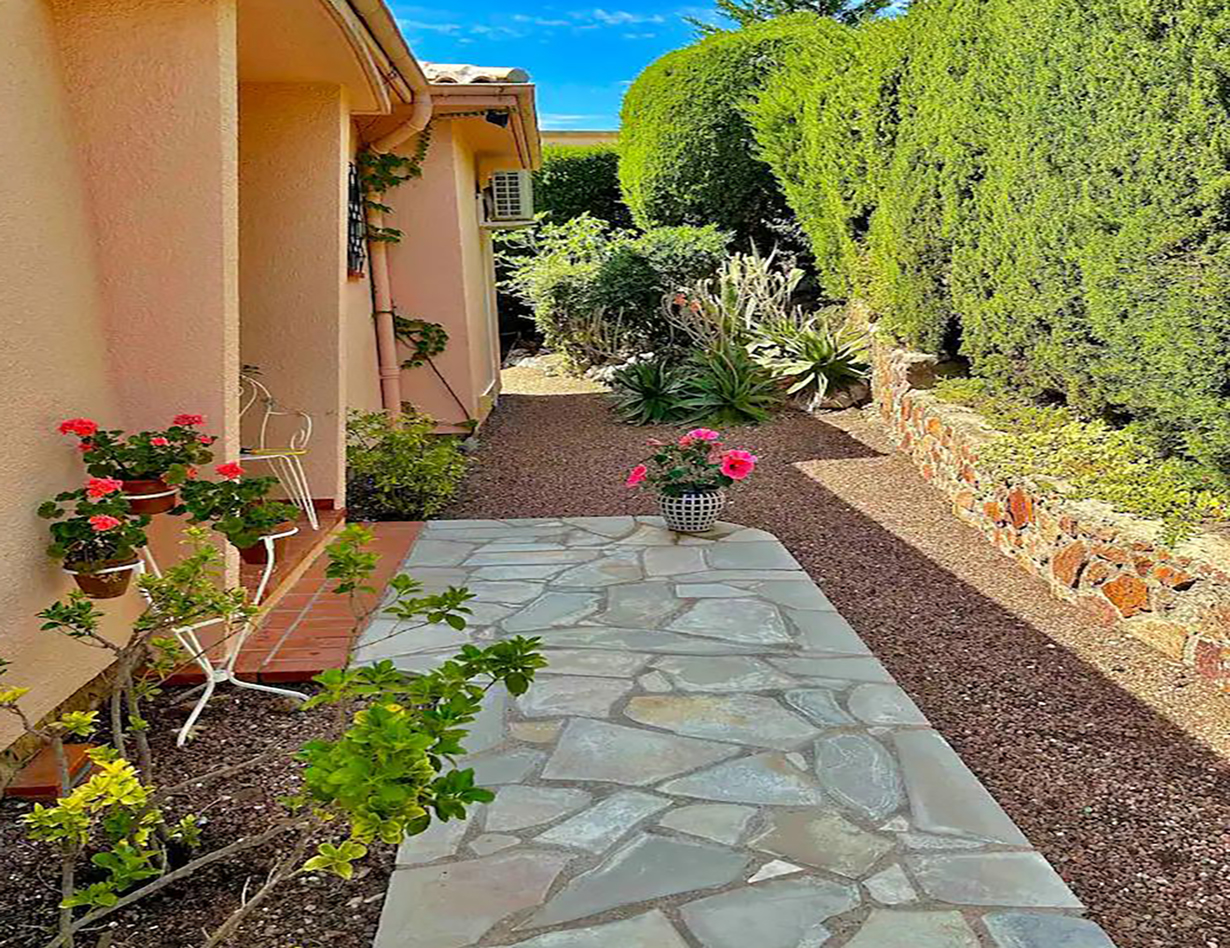 Ca. 350m2 komplett gezäuntes Grundstück, hübsch angelegt mit viel Oleander und mediterranen Pflanzen.