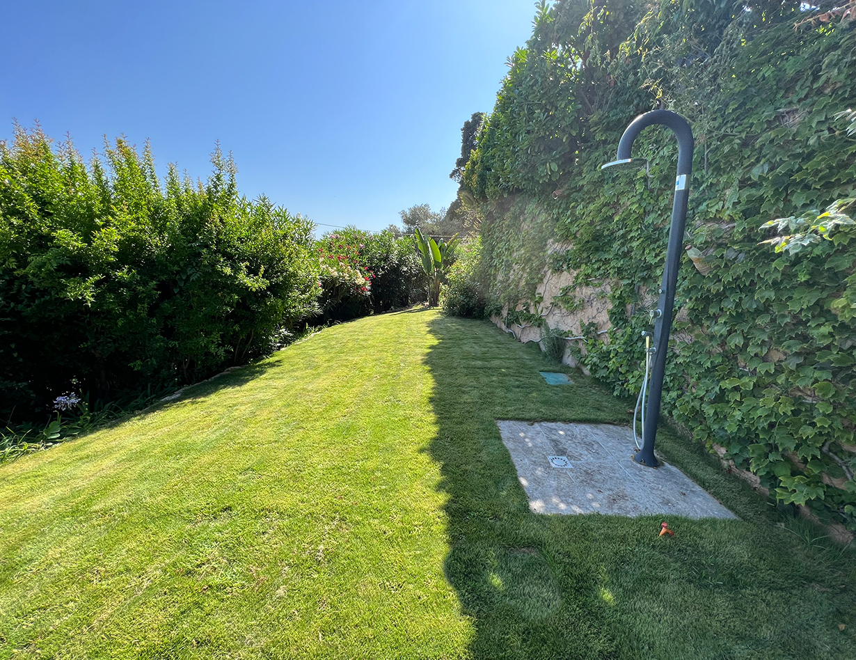 Ca.1400m2 Grundstück, mit Rasenflächen, Olivenbäumen, mediterranen Pflanzen, komplett gezäunt.