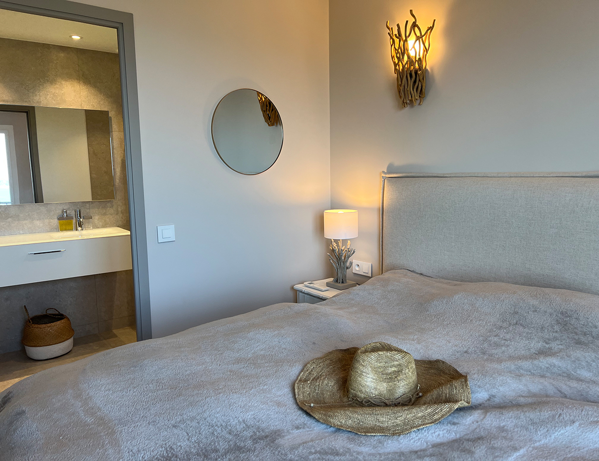 Gartenebene, großes Doppelbett, ensuite Badezimmer, traumhafter Meerblick.