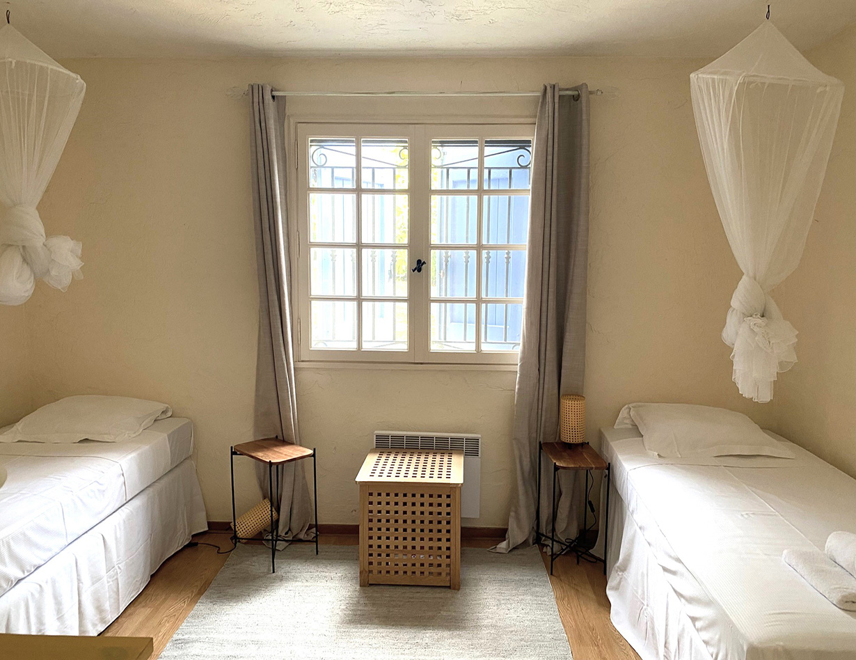 Großes Doppelbett 180 oder 2 Einzelbetten 90 cm, teilt sich Bad mit SZ 1