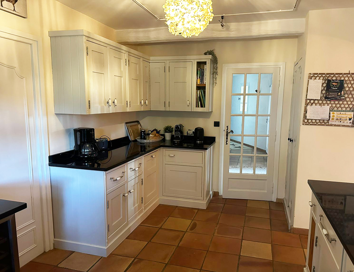 Große voll ausgestattete Küche mit allem, was man braucht, Kaffeemaschine Nespresso und Filter