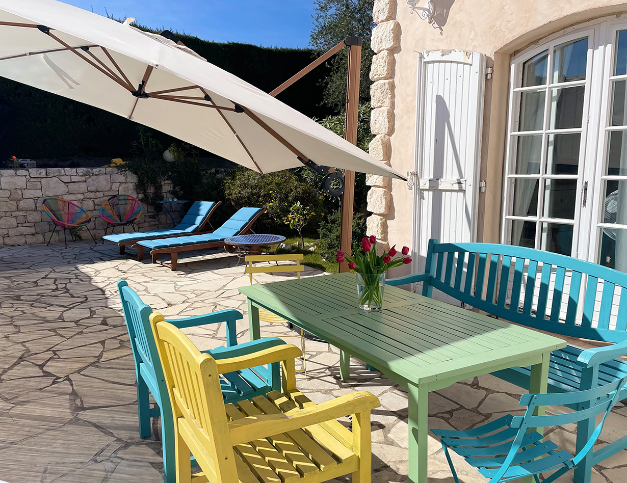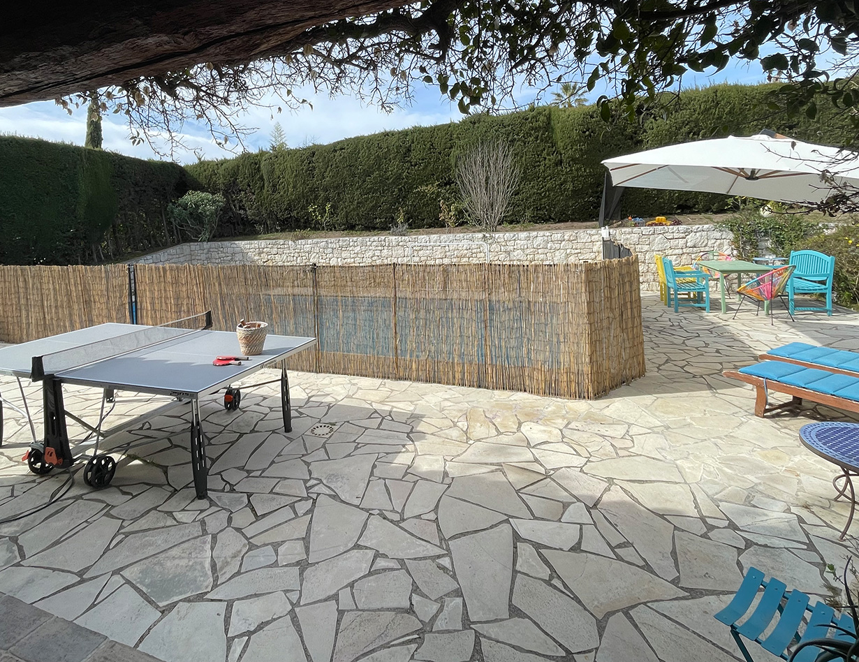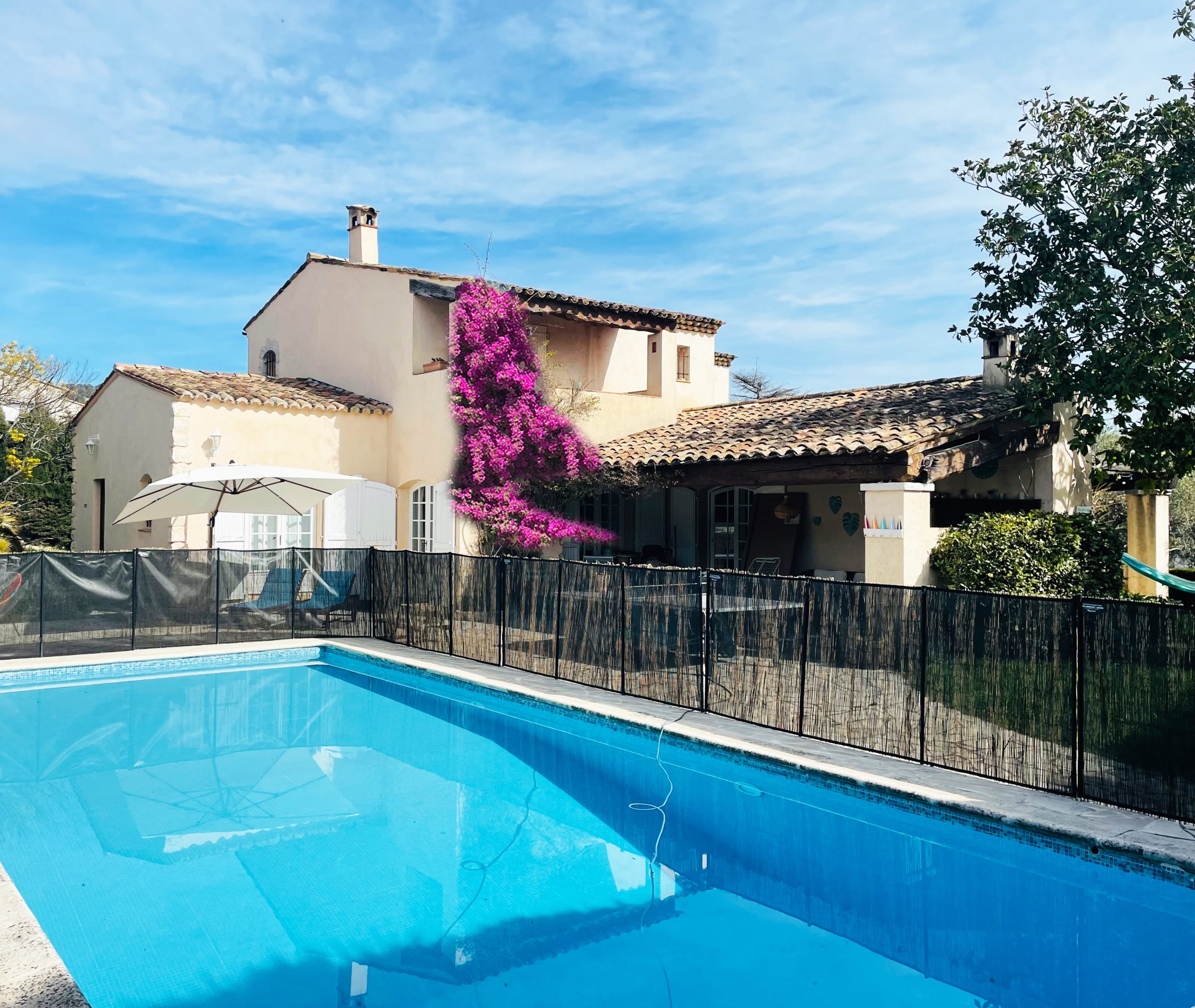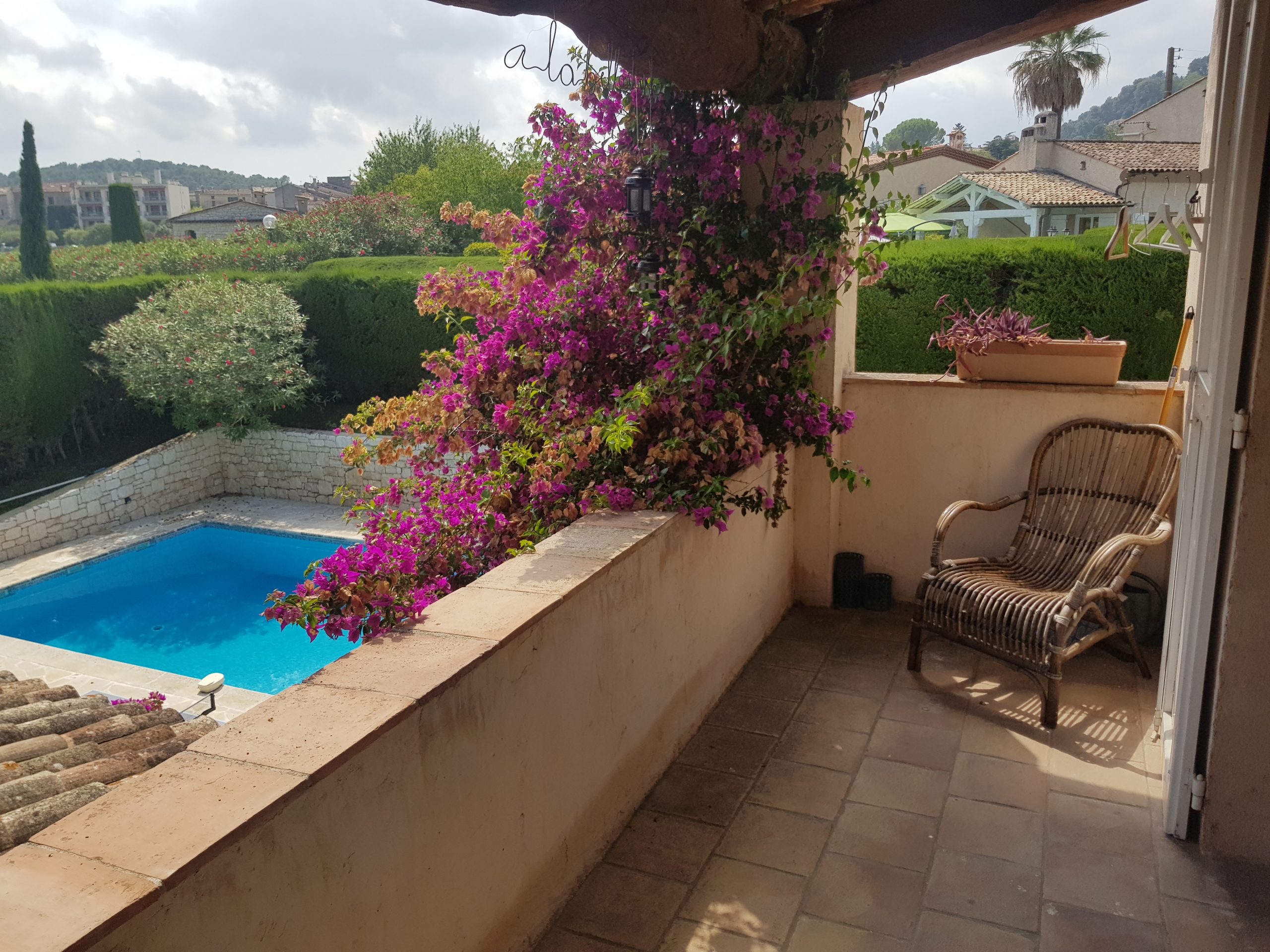 Die ideale Villa für eine Familien mit vielen Kindern, die gerne spielen: Schöne große und sehr gemütliche provençalische Villa in ganz ruhiger Villenlage, zu Fuß zum netten Ort „La Colle-sur-Loup“ mit Restaurants und Bars, Bäcker und vielem mehr. Sie haben einen wunderschönen Blick auf die berühmte Altstadt von St. Paul de Vence. Das sehr familienfreundliche Haus verfügt über 6 Schlafzimmer, davon 1 Kinderzimmer mit Stockbetten und 3 Kinderzimmer (Dekoration), 4 schöne Bäder, eine große sehr gut ausgestattete moderne Küche (für alle, die gerne Kochen – man findet einfach alles!), ein gemütlicher Wohnbereich mit großem Esstisch und netter Sofa-TV-Ecke. Klavier. Große Terrassen rund um das Haus, davon vor dem Pool eine überdachte Terrasse mit gemütlichen Loungemöbeln, mit großem Esstisch, BBQ und ein wunderbarer richtig toller sehr großer Swimming Pool! (Pool ist kindersicher mit einem festen Zaun versehen – ideal bei noch nicht schwimmenden Kindern) Im Garten: Tischtennisplatte, Basketballkorb, Trampolin, Hängematte und sehr viel Spielsachen für kleine und größere Kinder. Die 2 lieben kinderfreundlichen Katzen des Eigentümers sind im Sommer bleibend (Hund deshalb leider nicht erlaubt). Dieses Haus ist ideal für die aktive Familie, man ist schnell im Ort, schnell am Meer und hat alles im und am Haus. Parken sehr komfortabel für mehrere Autos in der Privatstraße und ein Parkplatz auf dem Grundstück. Ein wunderbar unkompliziertes schönes gepflegtes Haus und absolut ideal mit Kindern!