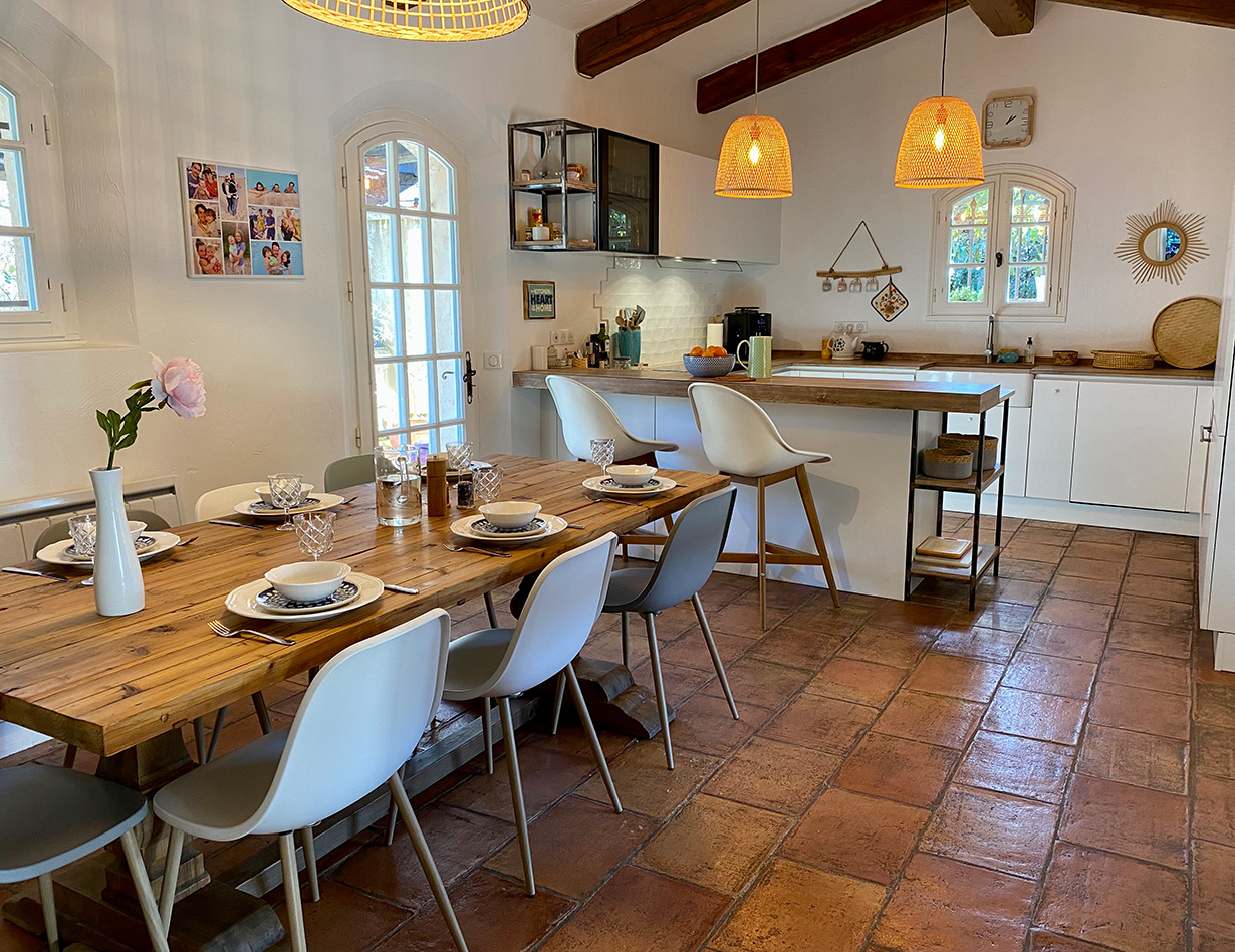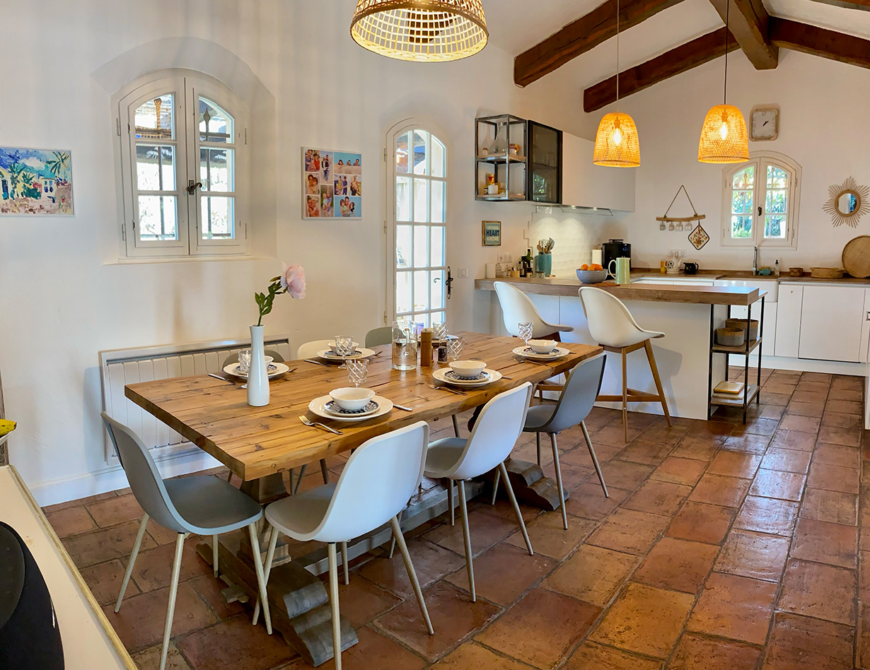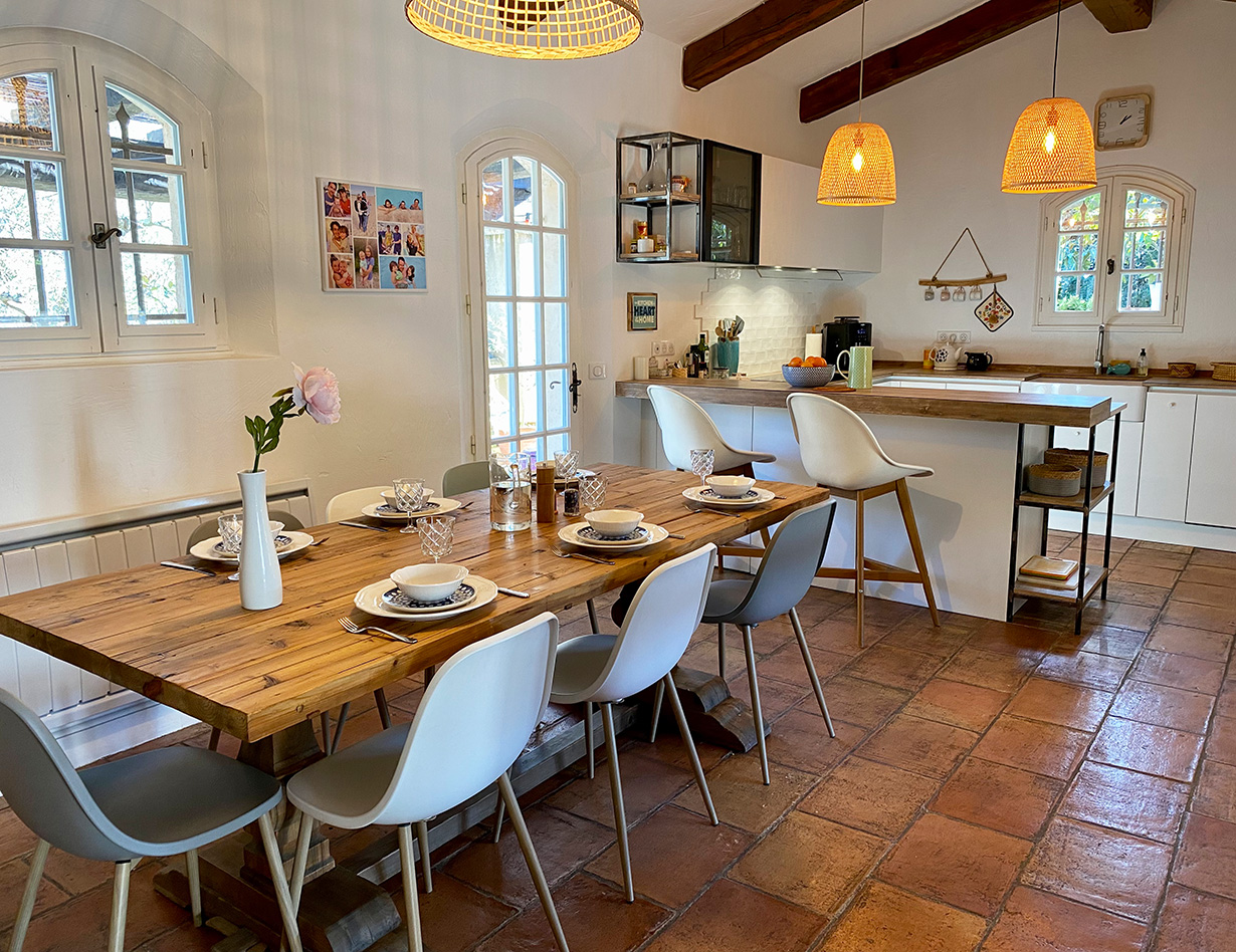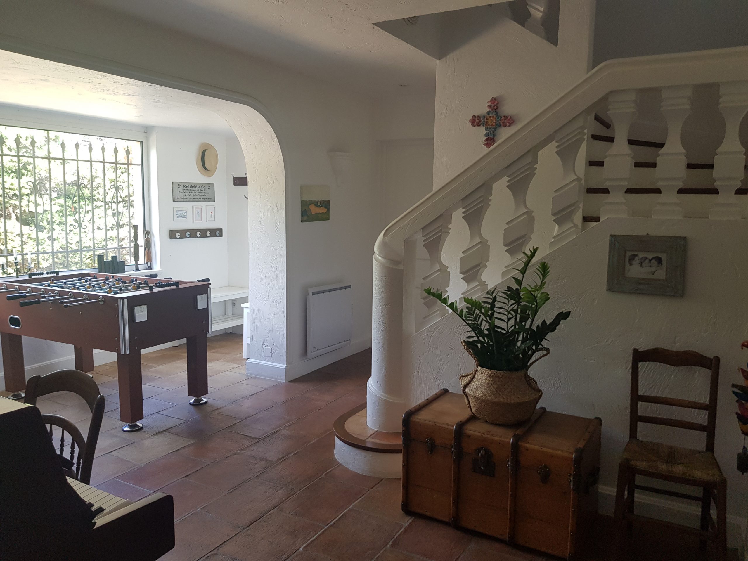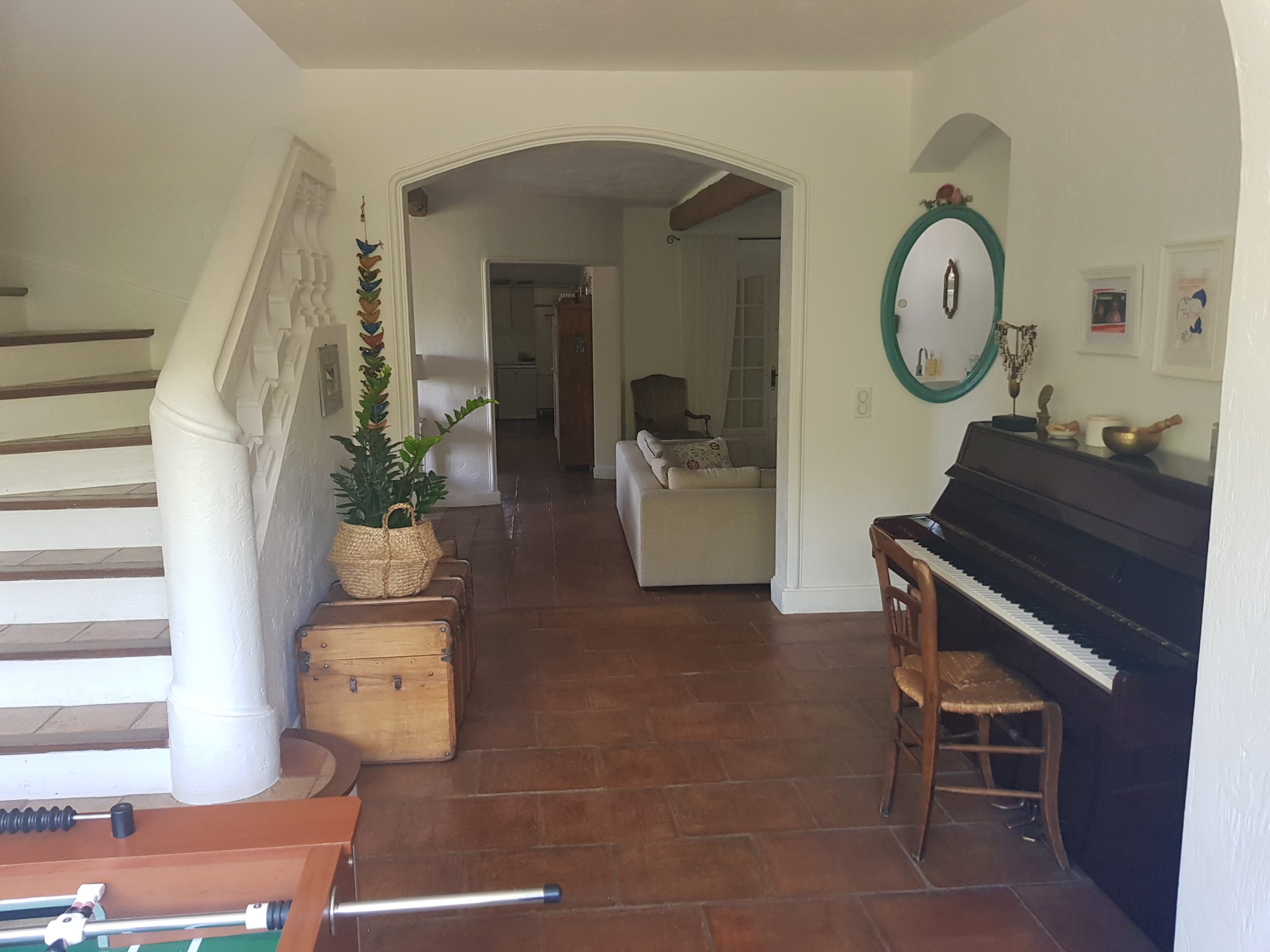 Die ideale Villa für eine Familien mit vielen Kindern, die gerne spielen: Schöne große und sehr gemütliche provençalische Villa in ganz ruhiger Villenlage, zu Fuß zum netten Ort „La Colle-sur-Loup“ mit Restaurants und Bars, Bäcker und vielem mehr. Sie haben einen wunderschönen Blick auf die berühmte Altstadt von St. Paul de Vence. Das sehr familienfreundliche Haus verfügt über 6 Schlafzimmer, davon 1 Kinderzimmer mit Stockbetten und 3 Kinderzimmer (Dekoration), 4 schöne Bäder, eine große sehr gut ausgestattete moderne Küche (für alle, die gerne Kochen – man findet einfach alles!), ein gemütlicher Wohnbereich mit großem Esstisch und netter Sofa-TV-Ecke. Klavier. Große Terrassen rund um das Haus, davon vor dem Pool eine überdachte Terrasse mit gemütlichen Loungemöbeln, mit großem Esstisch, BBQ und ein wunderbarer richtig toller sehr großer Swimming Pool! (Pool ist kindersicher mit einem festen Zaun versehen – ideal bei noch nicht schwimmenden Kindern) Im Garten: Tischtennisplatte, Basketballkorb, Trampolin, Hängematte und sehr viel Spielsachen für kleine und größere Kinder. Die 2 lieben kinderfreundlichen Katzen des Eigentümers sind im Sommer bleibend (Hund deshalb leider nicht erlaubt). Dieses Haus ist ideal für die aktive Familie, man ist schnell im Ort, schnell am Meer und hat alles im und am Haus. Parken sehr komfortabel für mehrere Autos in der Privatstraße und ein Parkplatz auf dem Grundstück. Ein wunderbar unkompliziertes schönes gepflegtes Haus und absolut ideal mit Kindern!