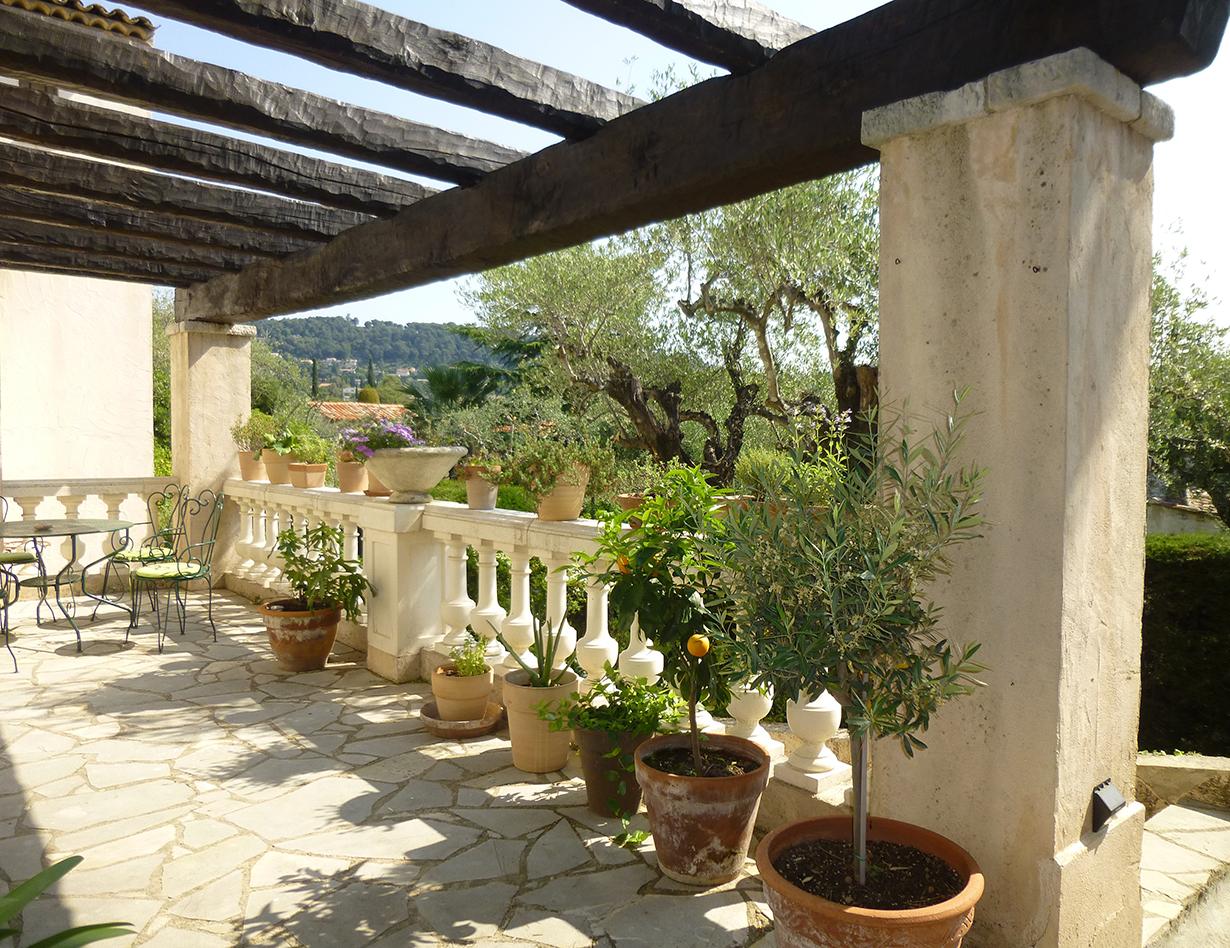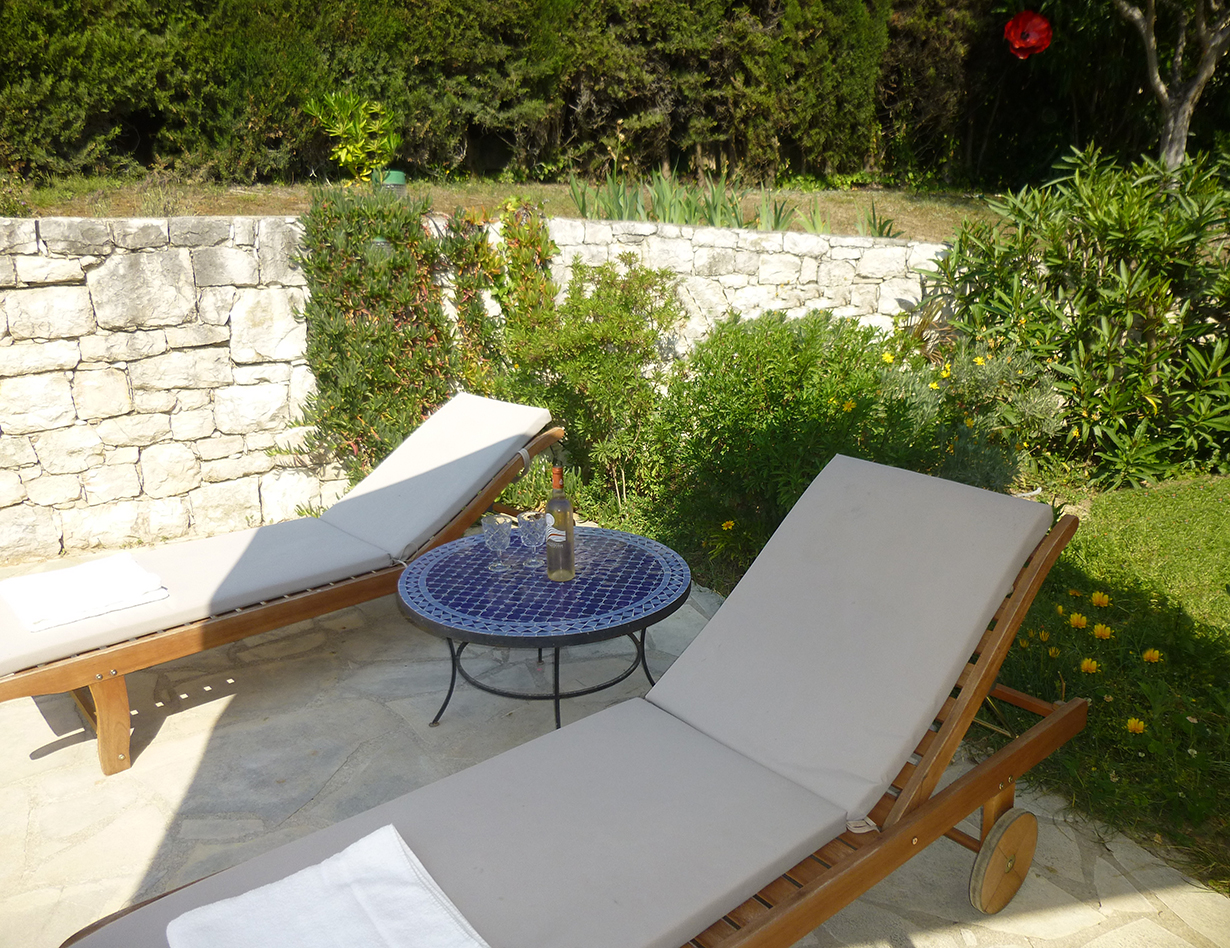 Garten. Und toller Blick auf die Altstadt von St Paul de Vence.