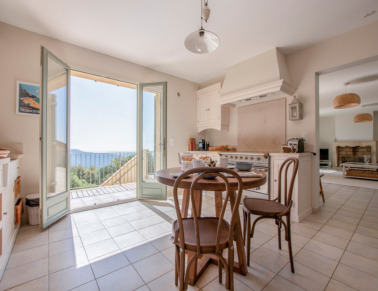 Große voll ausgestattete Küche mit allem, was man braucht, Kaffeemaschine Nespresso. Austritt zur Terrasse.