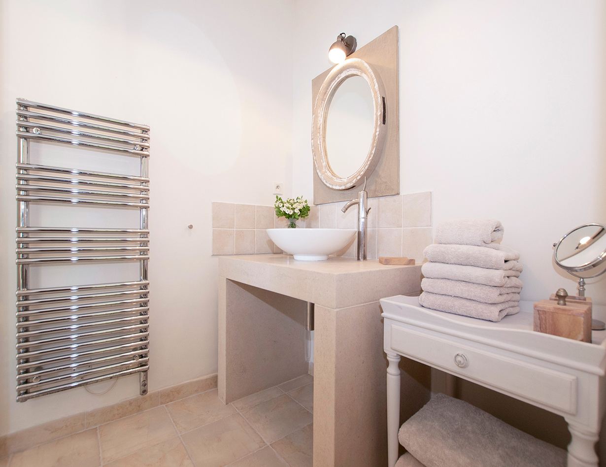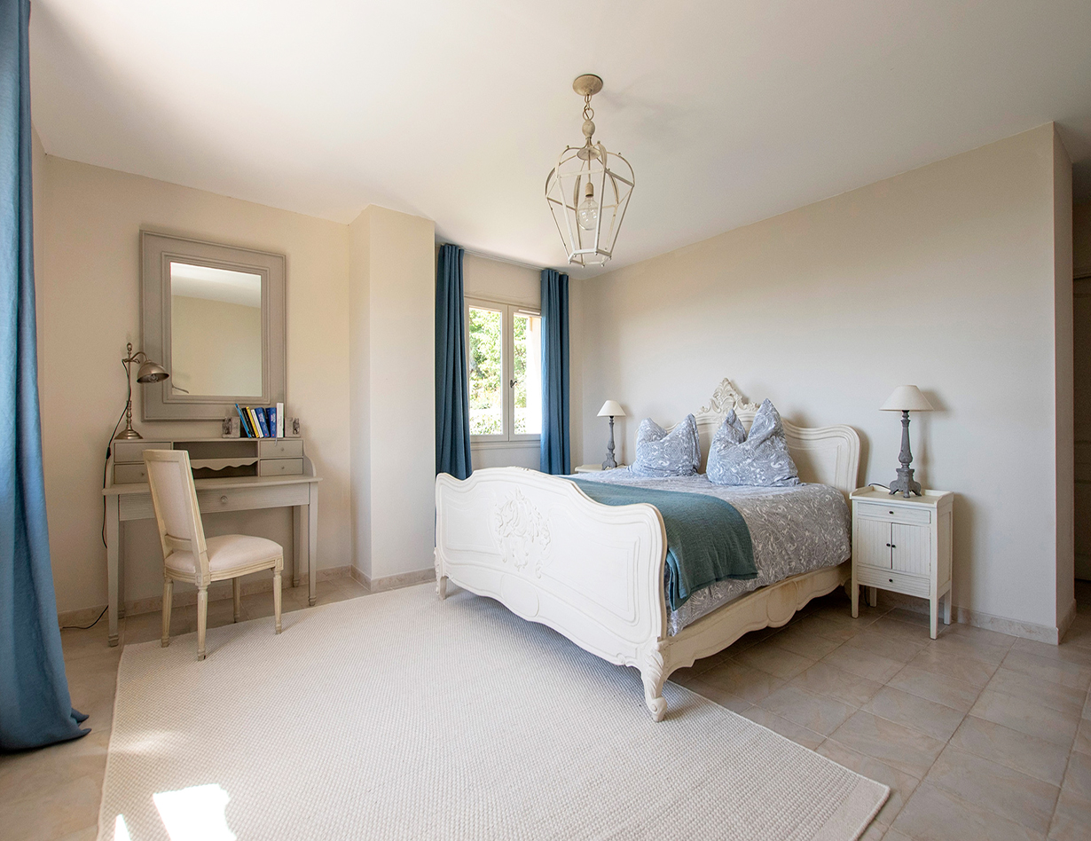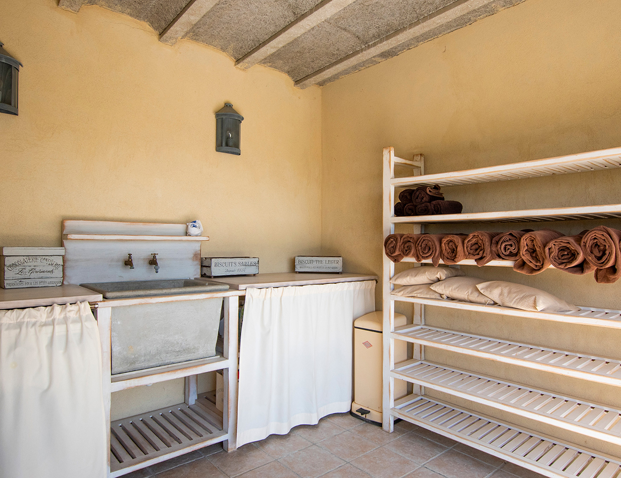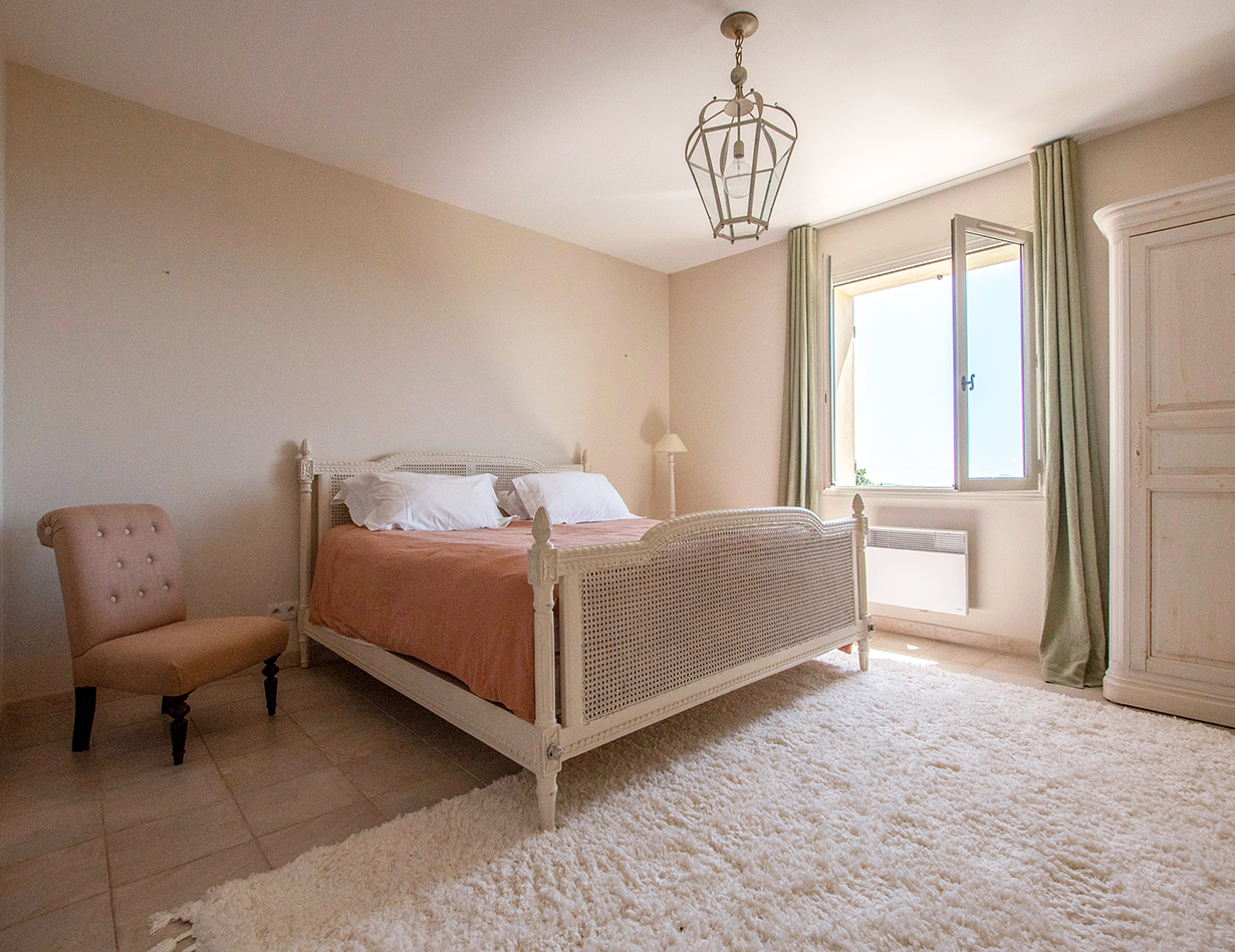 Der Kamin und die gemütlichen Sofas runden das wohlig-warme Ambiente eines zweiten „Zuhauses auf Zeit“ perfekt ab. Die halb offene Küche ist vom amerikanischen Kühlschrank bis zur Nespresso-Maschine so ausgestattet, dass Ihnen nichts fehlt. Vor der Wohnebene liegen mehrere Terrassen, die zum Teil überdacht sind, wobei alle einen umwerfenden malerischen Blick auf die wunderschöne Landschaft zulassen. Umgeben von herrlichen mediterranen Pflanzen, Olivenbäumen, einem Bouleplatz und einer Tischtennisplatte bieten der Gas-BBQ-Grill und die komfortablen Loungemöbel – sowohl auf der oberen Terrasse als auch direkt am Pool – gleichermaßen die perfekte Gelegenheit zum Relaxen und für einen geselligen Tag.