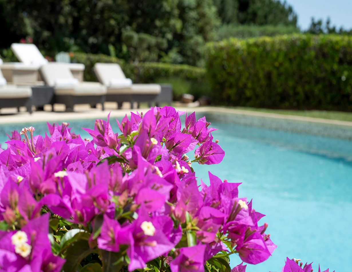 Privater Pool, mit komfortablen Sonnenliegen, Sonnenschirme. Ab Frühjahr 2025 zu beheizen.