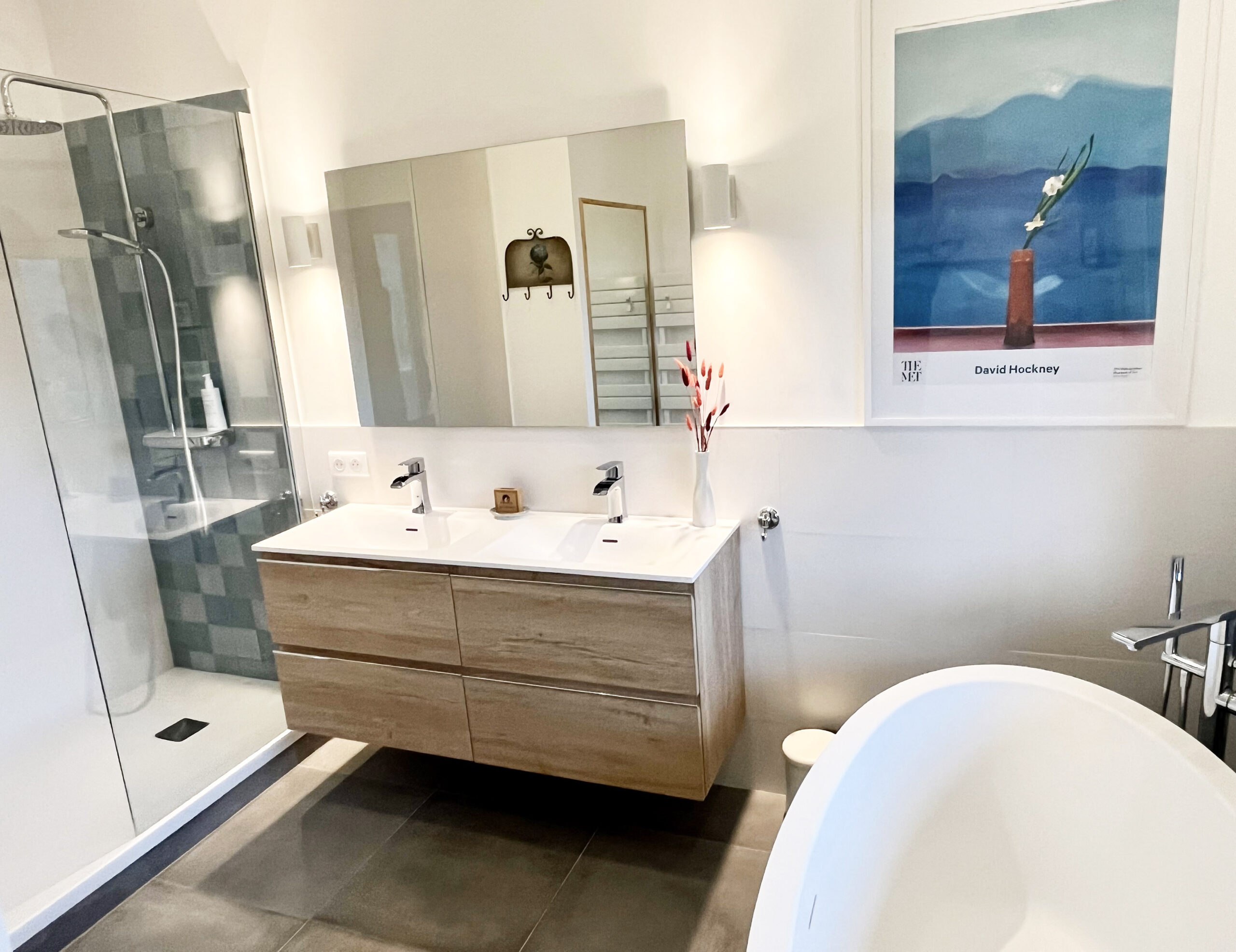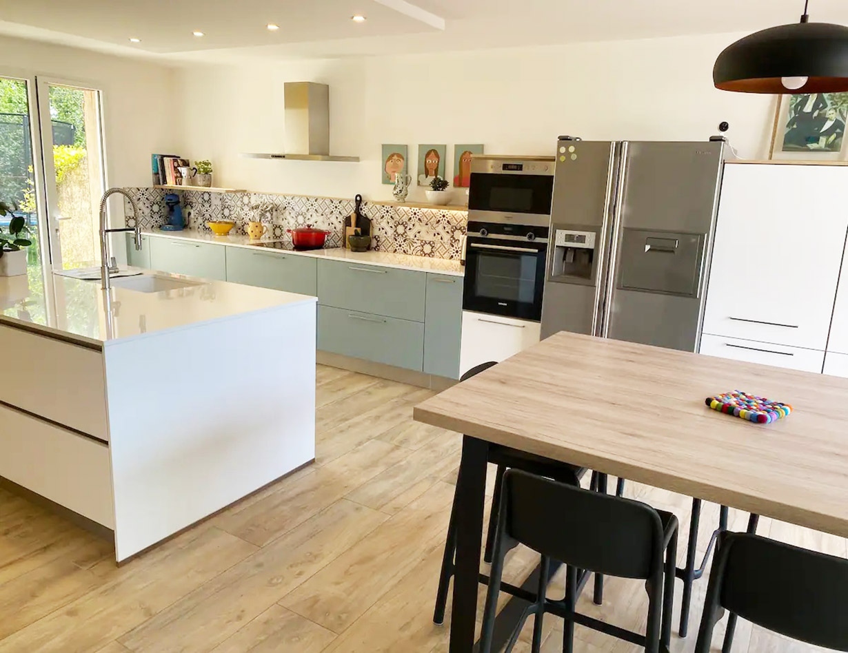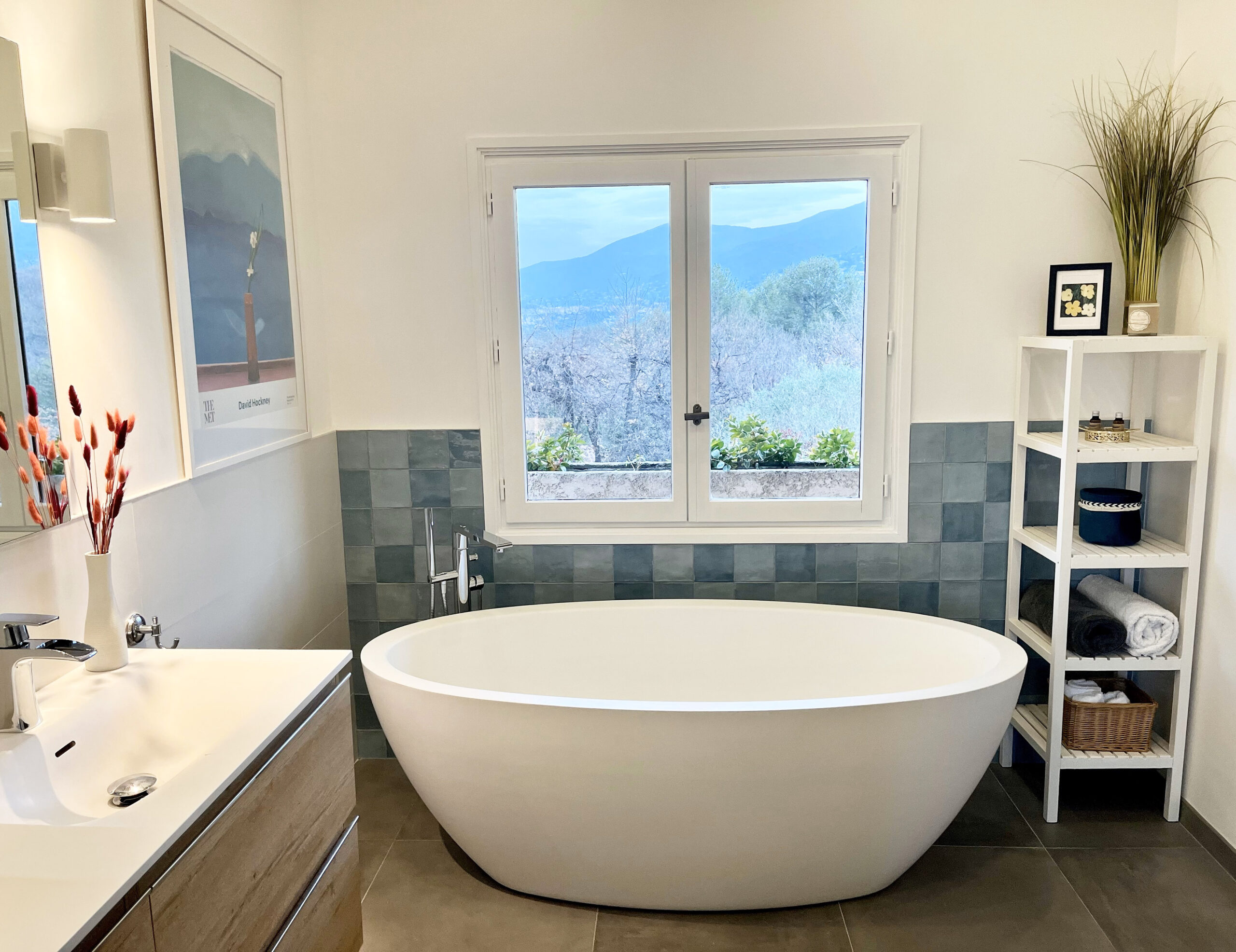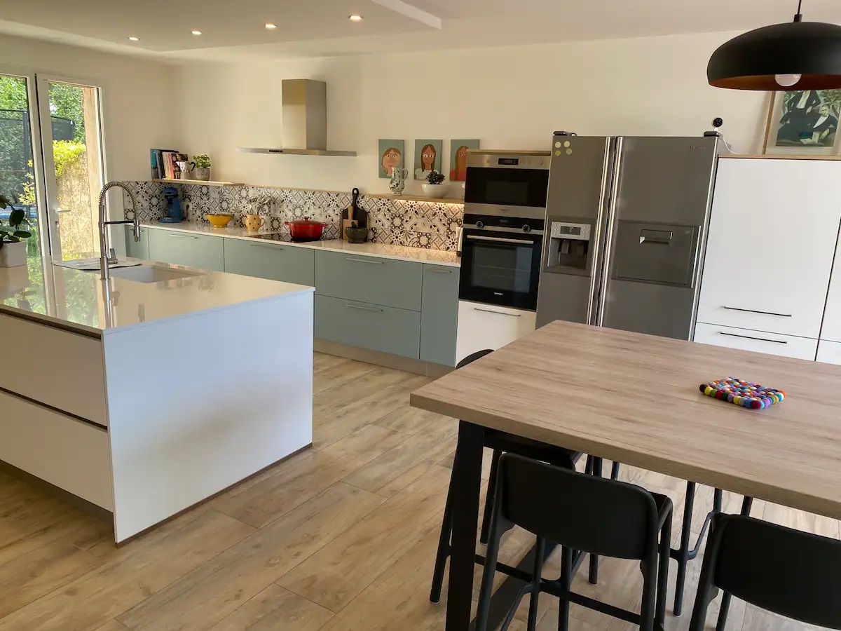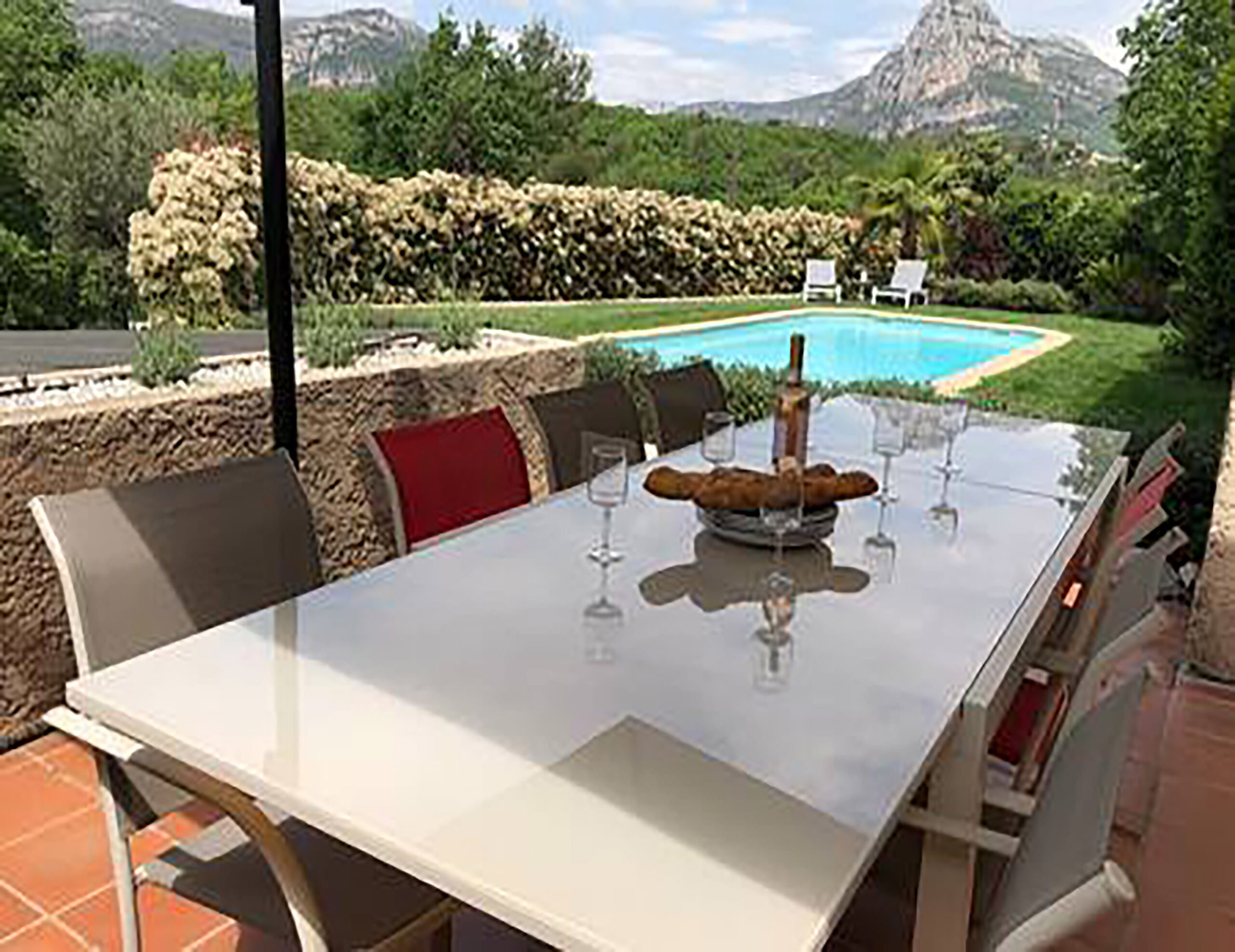 Schönes Ferienhaus nah zum Ort La Gaude (bekannt u.A. auch durch sein sensationelles Jazz Festival), nah zu Vence und nah zu Nizza. Das einseitig dezent angebaute hübsche Ferienhaus steht in ganz ruhiger Lage und hat einen wunderbaren Blick auf die Berge. Es verfügt über 4 hübsche Schlafzimmer mit Doppelbetten, 3 Bädern, 3 WCs, einen großen komfortablen Wohn-Eßbereich und eine offene sehr gut ausgestattete Wohnküche. Davor liegt eine Terrasse mit großem Eßtisch und Blick in den Garten und Pool. Loungeecke auf der überdachten Terrasse. Großer Gas-BBQ. Der Pool hat ca 9×4 Meter, komfortable Sonnenliegen und Schirme. Tischtennisplatte, Trampolin im Garten. Parken ganz bequem vor dem Haus. Ein sehr nettes Haus für die ganze Familie. Ideal um sich wunderbar zu entspannen, toller Ausgangspunkt auch, um schnell in das wunderschöne Hinterland der Alpes Maritimes zum Wandern loszulegen. Zum Meer sind es ca. 14 km , zum Flughafen Nizza 15 km, nach Vence 8 km.