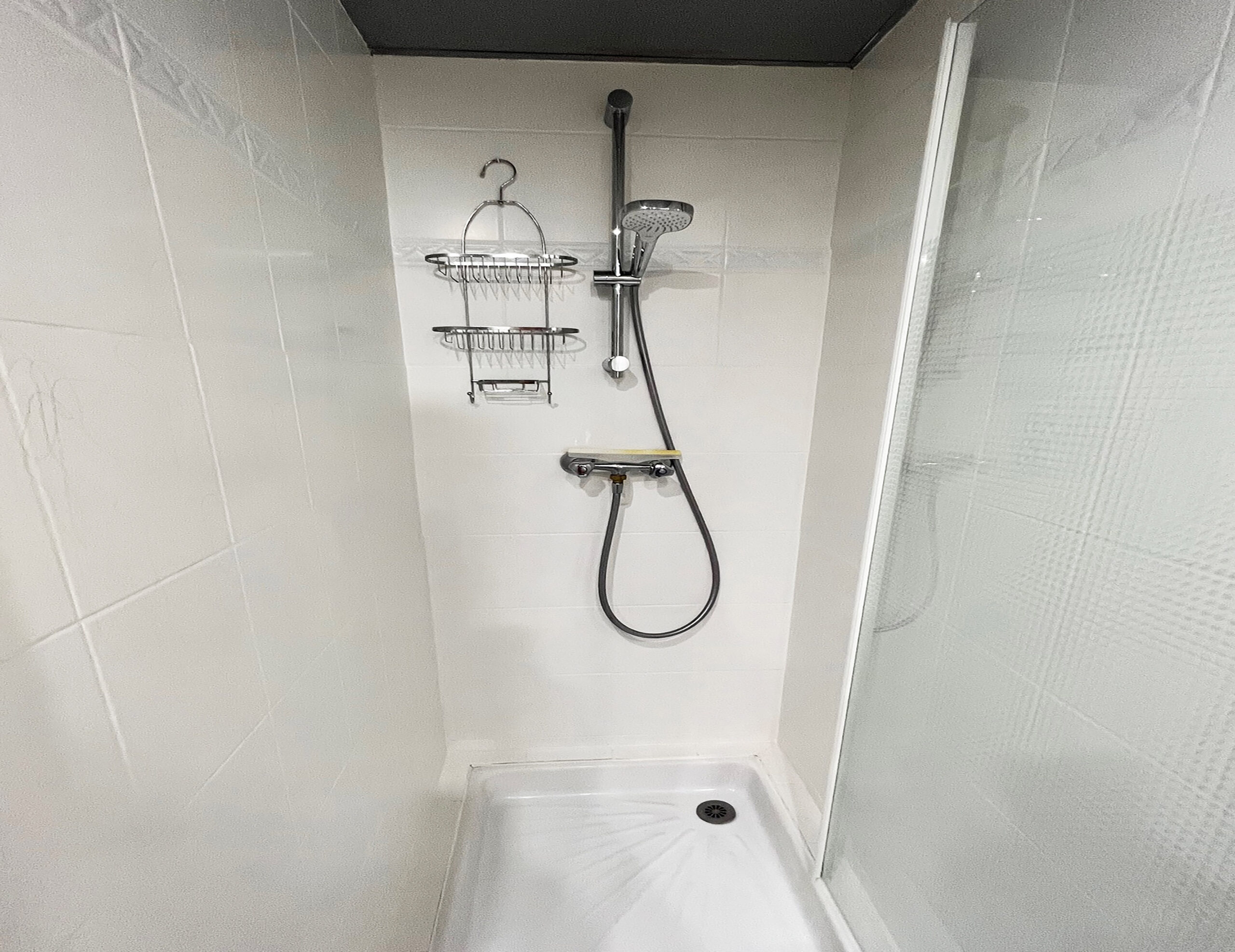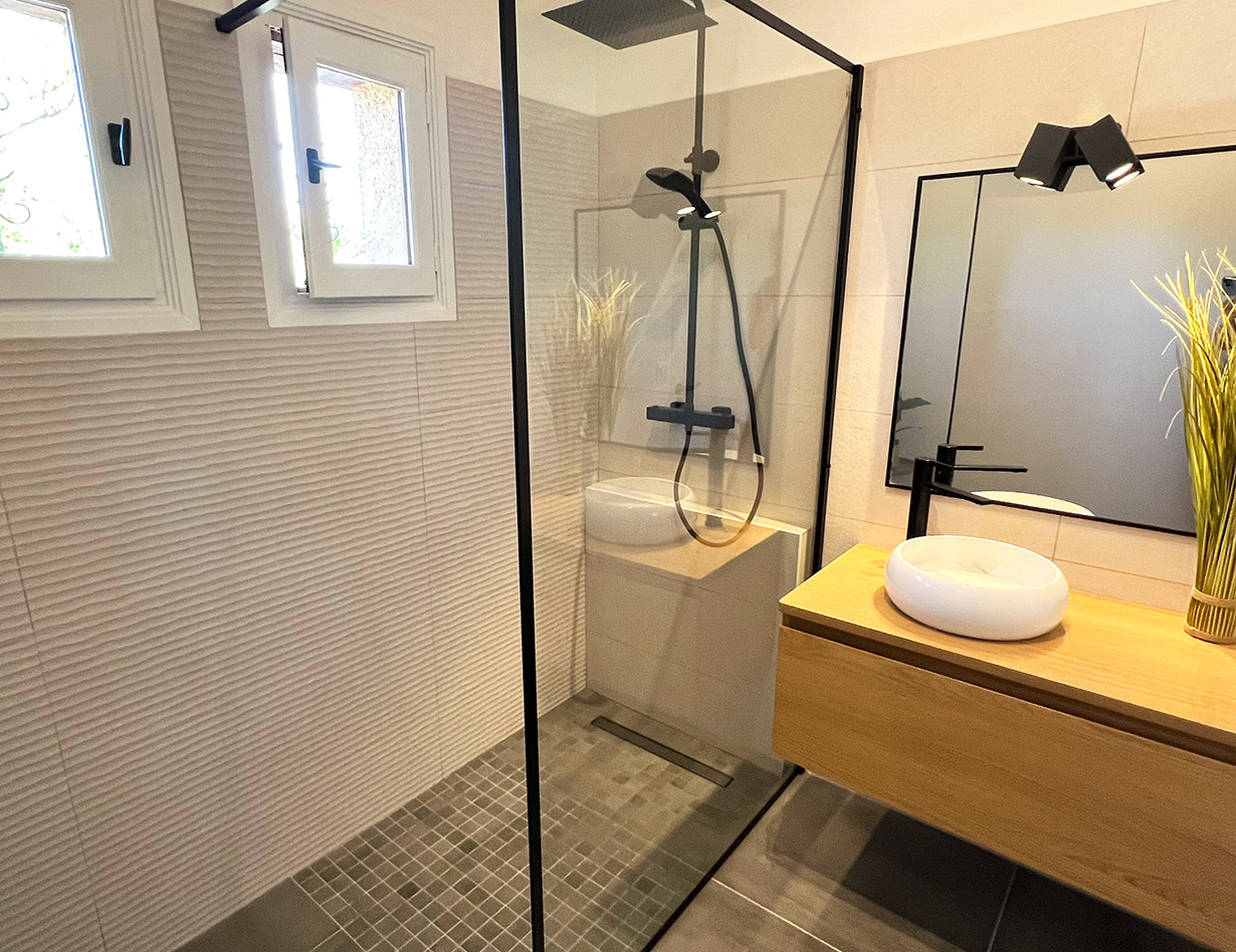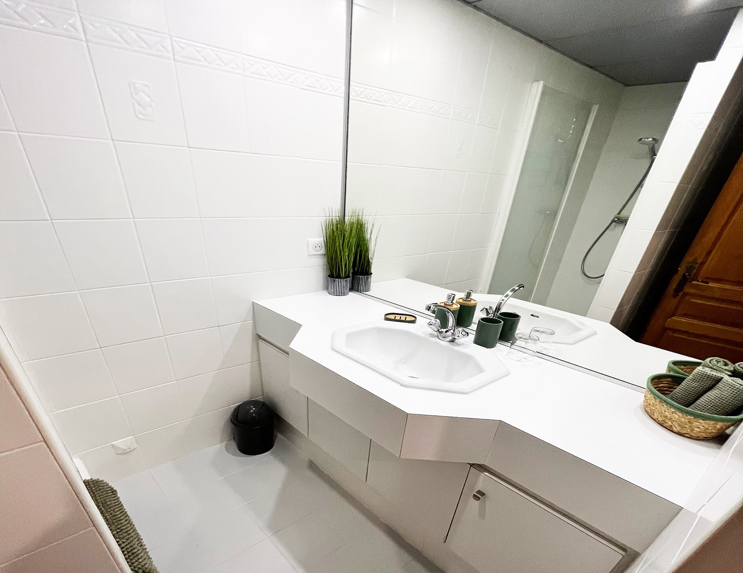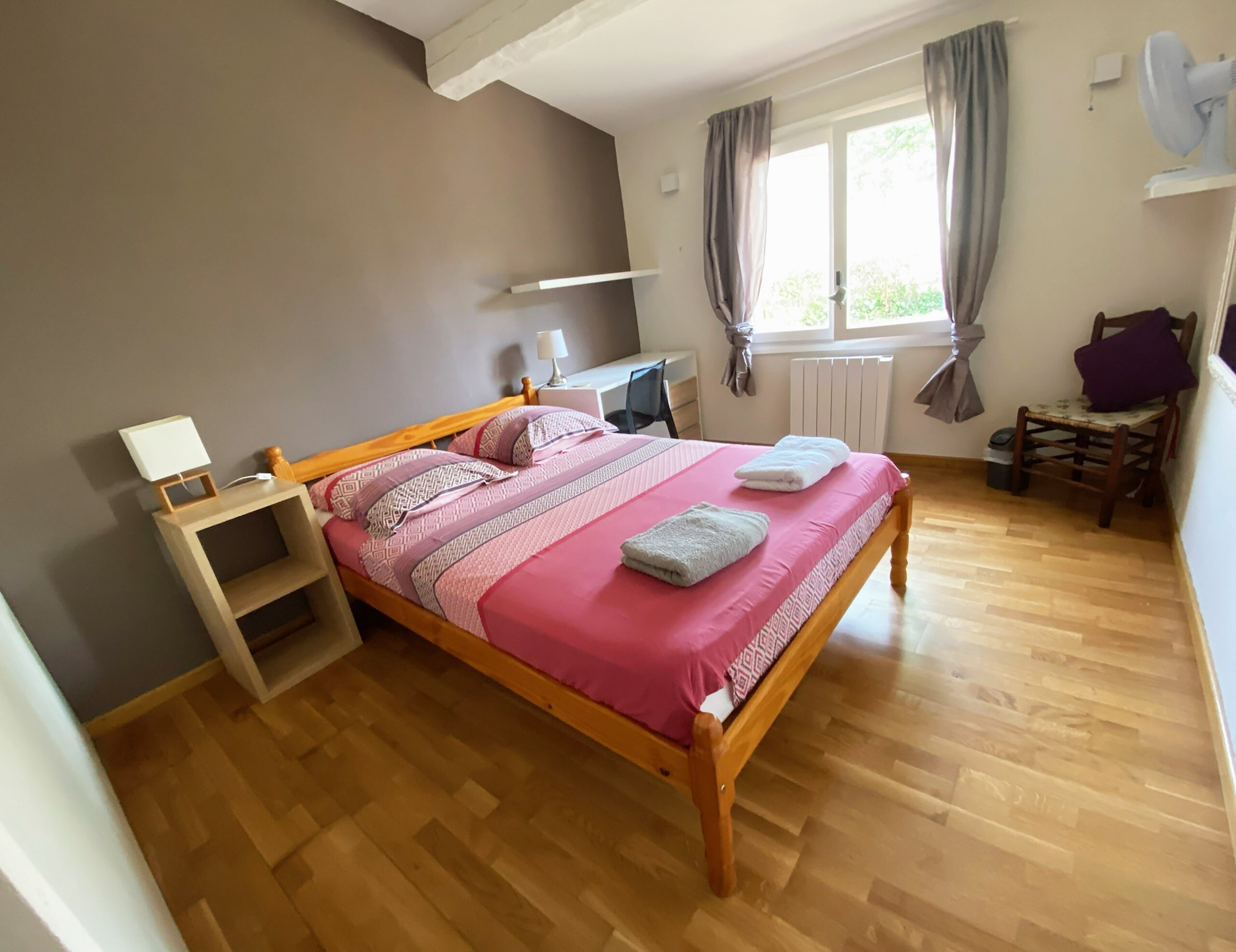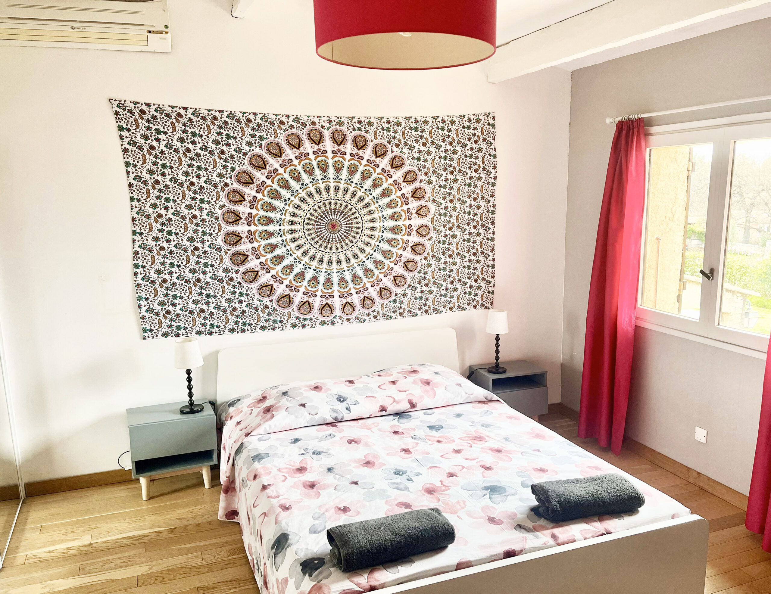 Masterbedroom mit großem Doppelbett 160×200, ensuite Badezimmer. AC