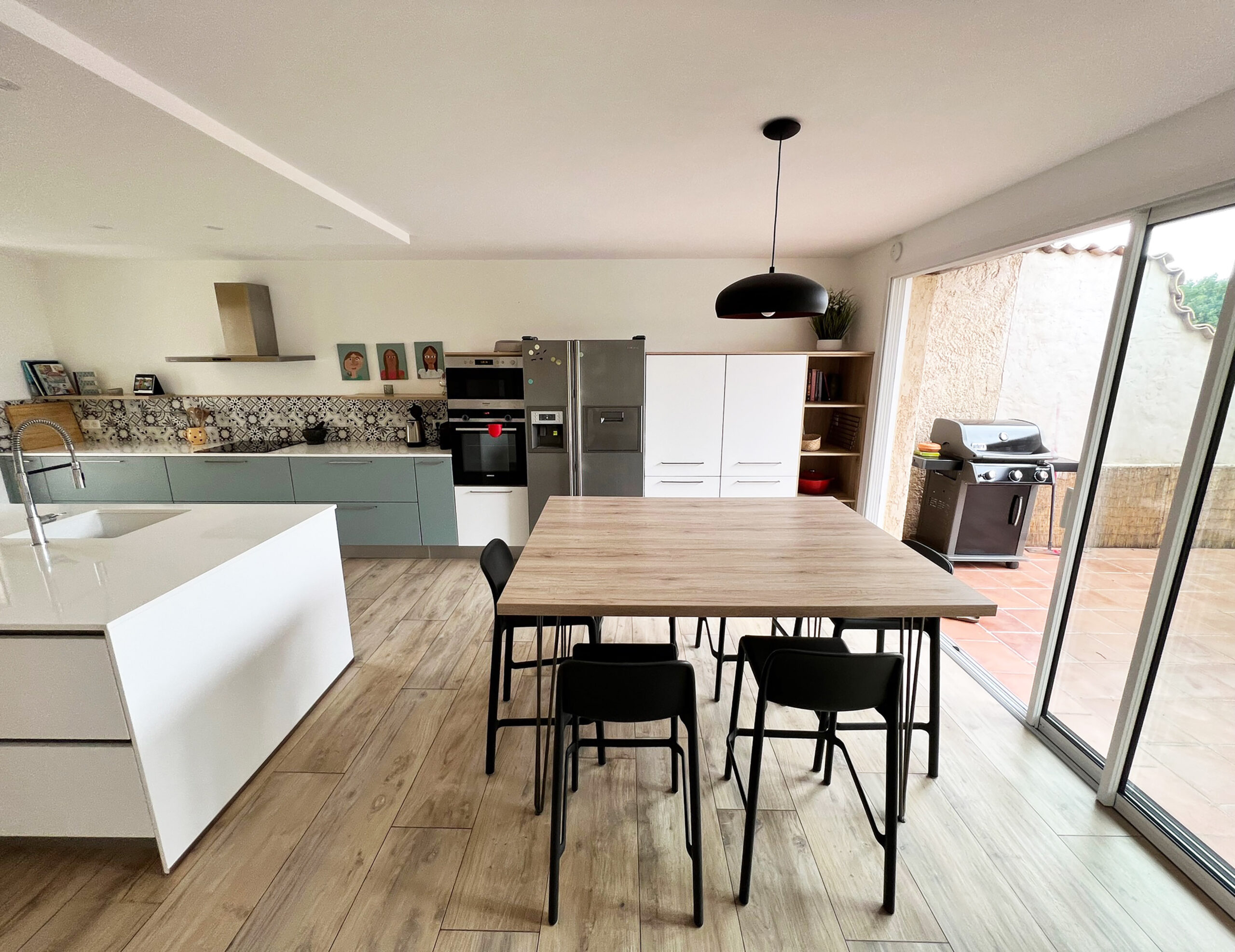 Schöner offener Wohn-Eßbereich mit direktem Austritt zur Terrasse