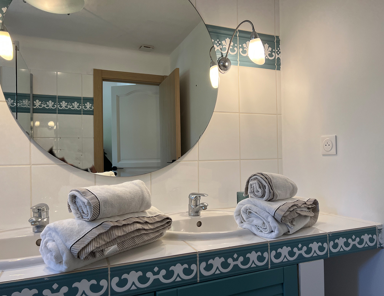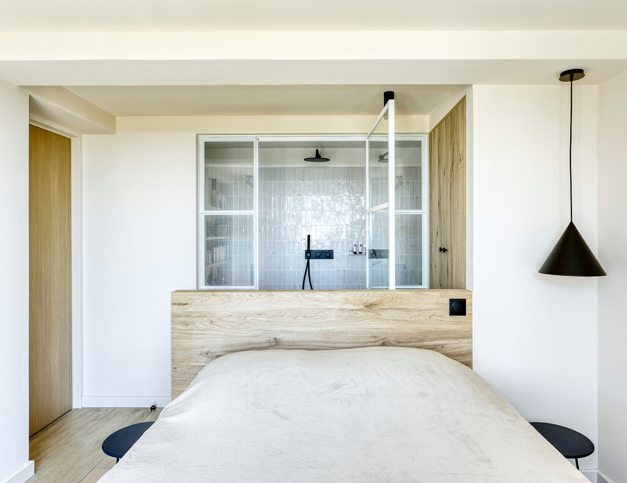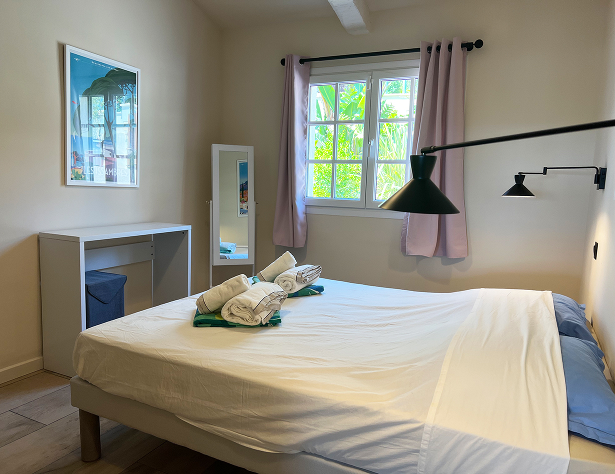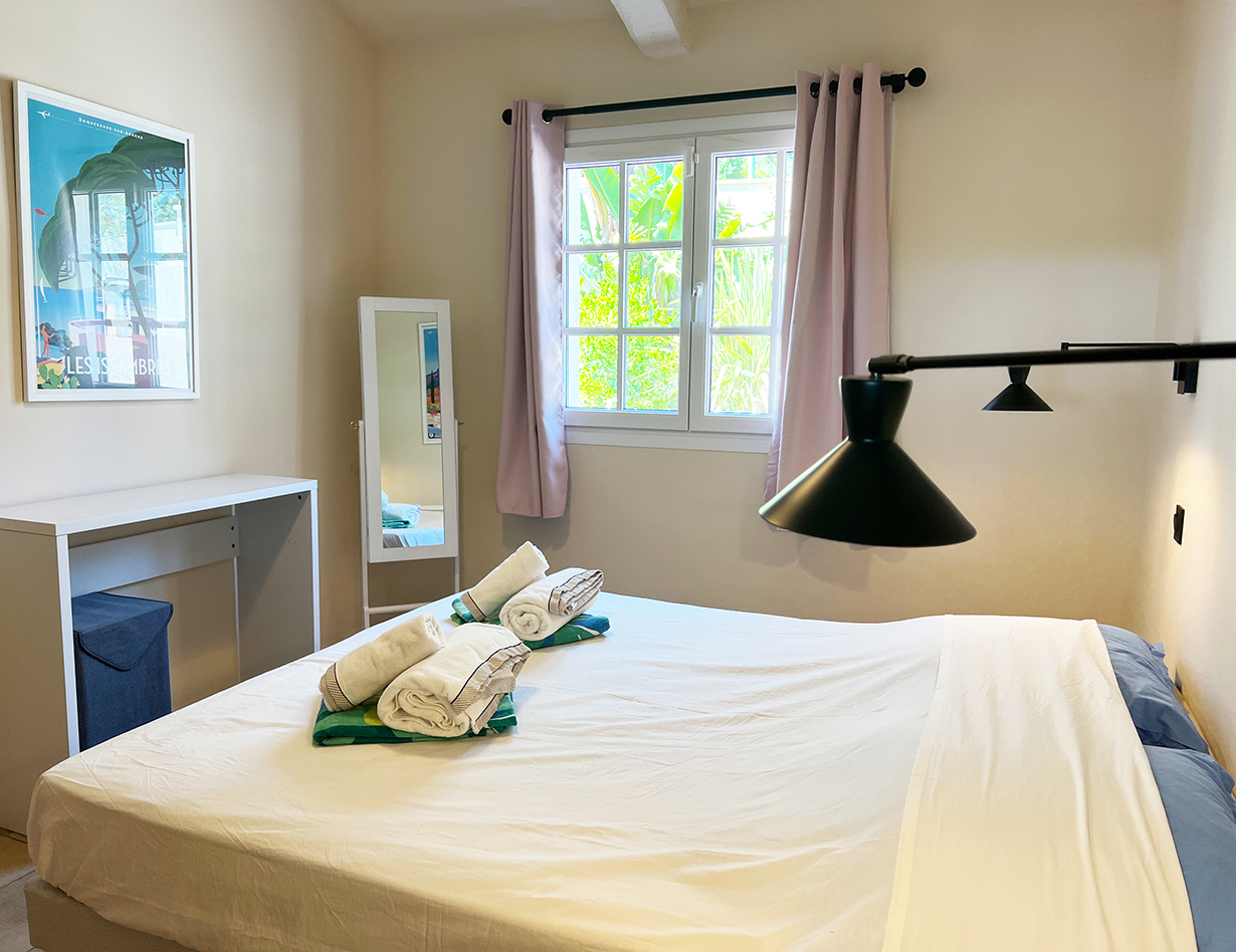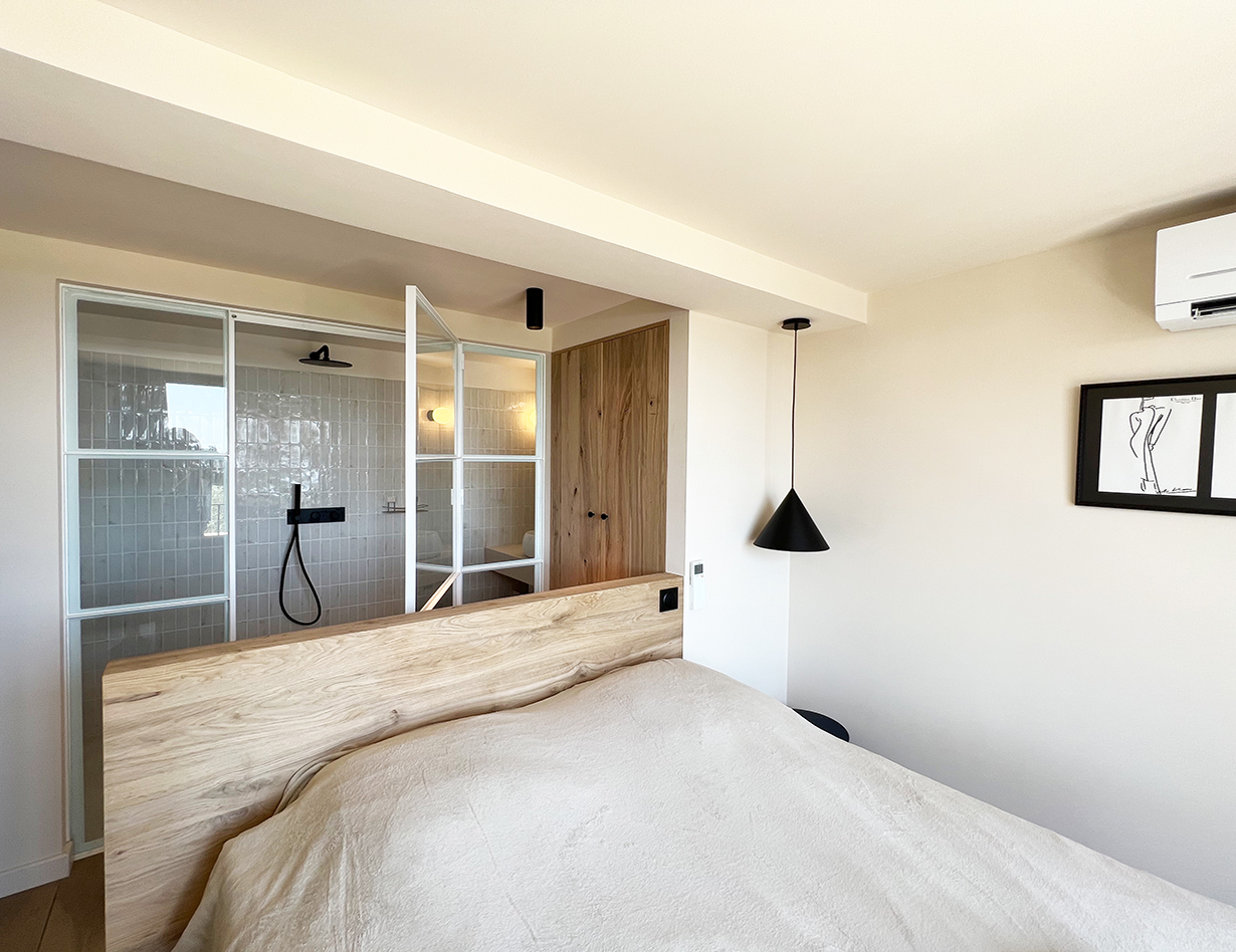 Schlafzimmer mit Doppelbett, ensuite Badezimmer
