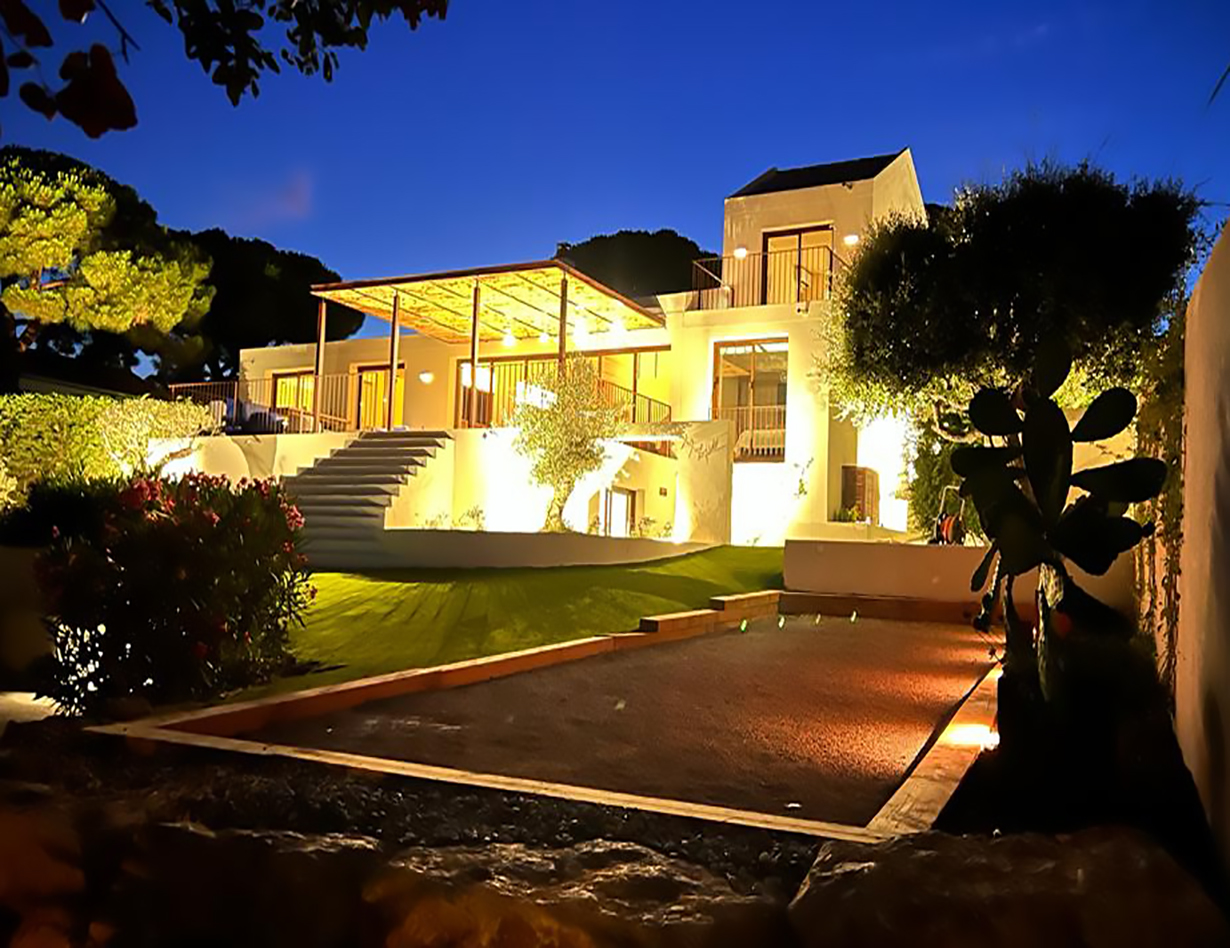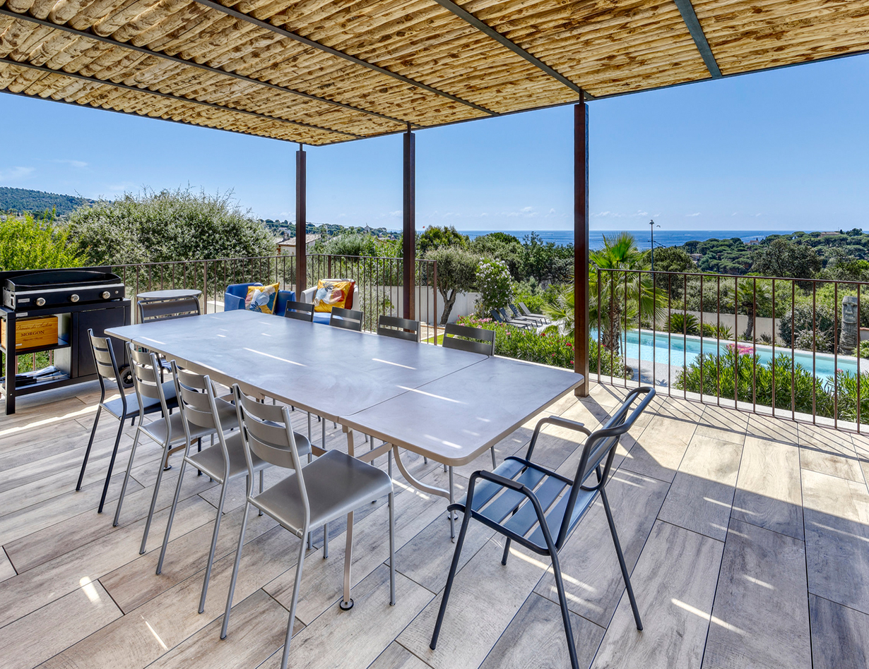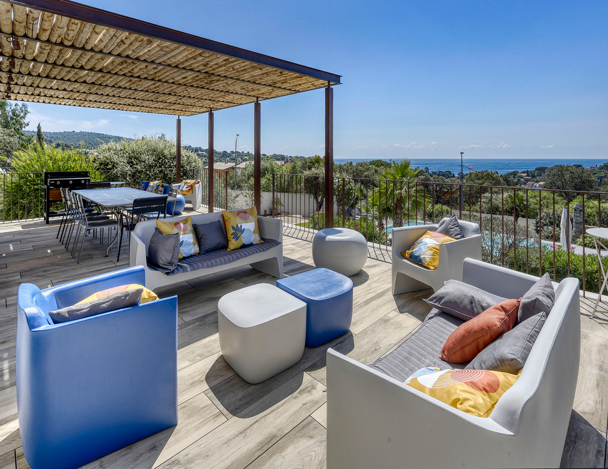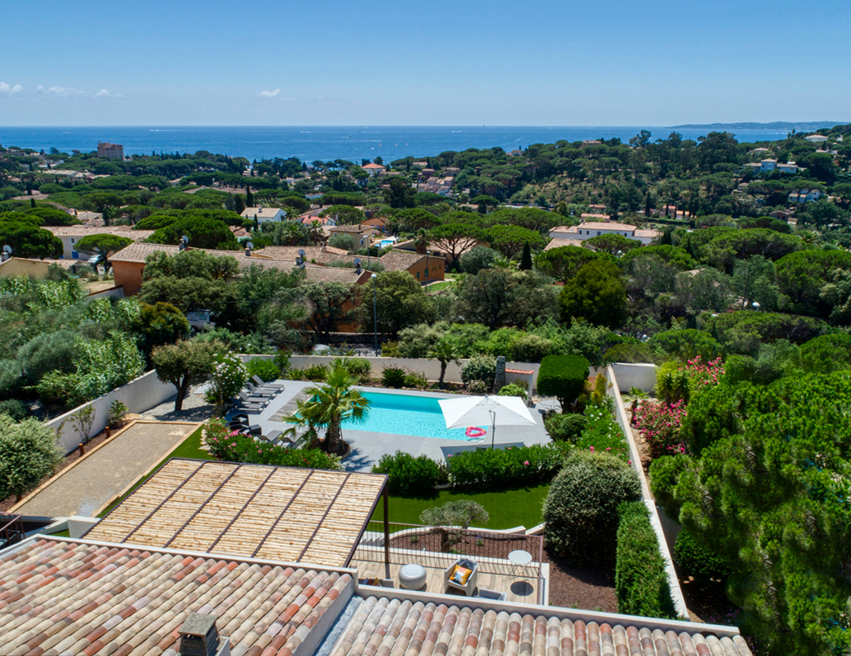 Auf rund 220 Quadratmetern bietet Ihnen die Villa „MAS-TOTEM-INDIGO“ in Les Issambres fünf Schlafzimmer und Bäder, sodass bis zu zehn Personen gemeinsam hier ihren Aufenthalt rundum genießen können. Der großzügig bemessene Pool kann während der Saison beheizt werden. Herzstück dieser außergewöhnlichen Ferienimmobilie ist der Panorama- und Meerblick auf die Umgebung. Die Nähe zu St. Tropez und Sainte-Maxime laden zu einem längeren Aufenthalt ein. Sie erreichen das Meer und das Zentrum von Les Issambres von der Villa aus problemlos zu Fuß, sodass Sie auch ohne Auto flexibel sind. Zum Haus selbst gehört neben dem Bouleplatz auch eine E-Ladestation.