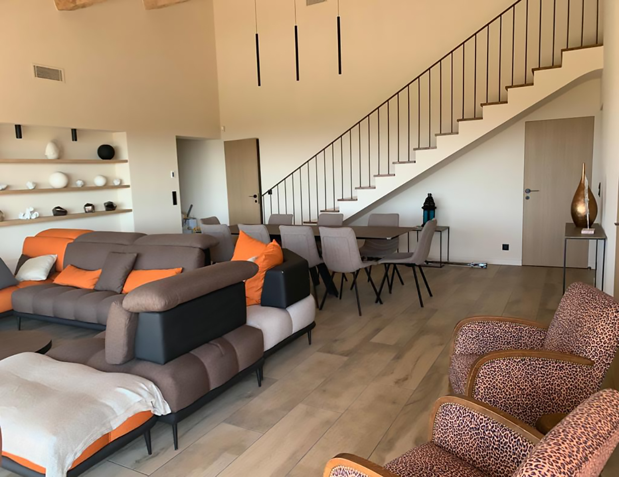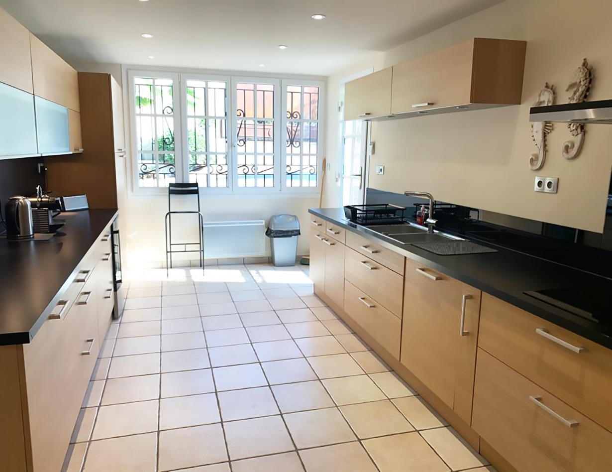 Die Villa in Les Issambres wurde zuletzt frisch renoviert und begeistert mit einem großzügig gestalteten Wohn-Ess-Bereich, in dem Sie neben einem großen Sofa mit reichlich Platz für alle Gäste, einen großen TV und den Zugang zur Terrasse finden. In der separaten, hervorragend ausgestatteten Küche können Sie nach Lust und Laune selbst Ihre Lieblingsspeisen zubereiten oder gemeinsam mit Freunden kochen. Der amerikanische Kühlschrank, ein Weinkühlschrank und die Nespresso-Maschine lassen während des Aufenthalts kaum einen Wunsch unerfüllt. Über die Treppen gelangen Sie problemlos in den Garten und zum großen Pool, in dem Sie sich an einem warmen Sommertag abkühlen können. Die Klimaanlage sorgt auch an besonders heißen Tagen für Wohlfühltemperaturen im gesamten Objekt.