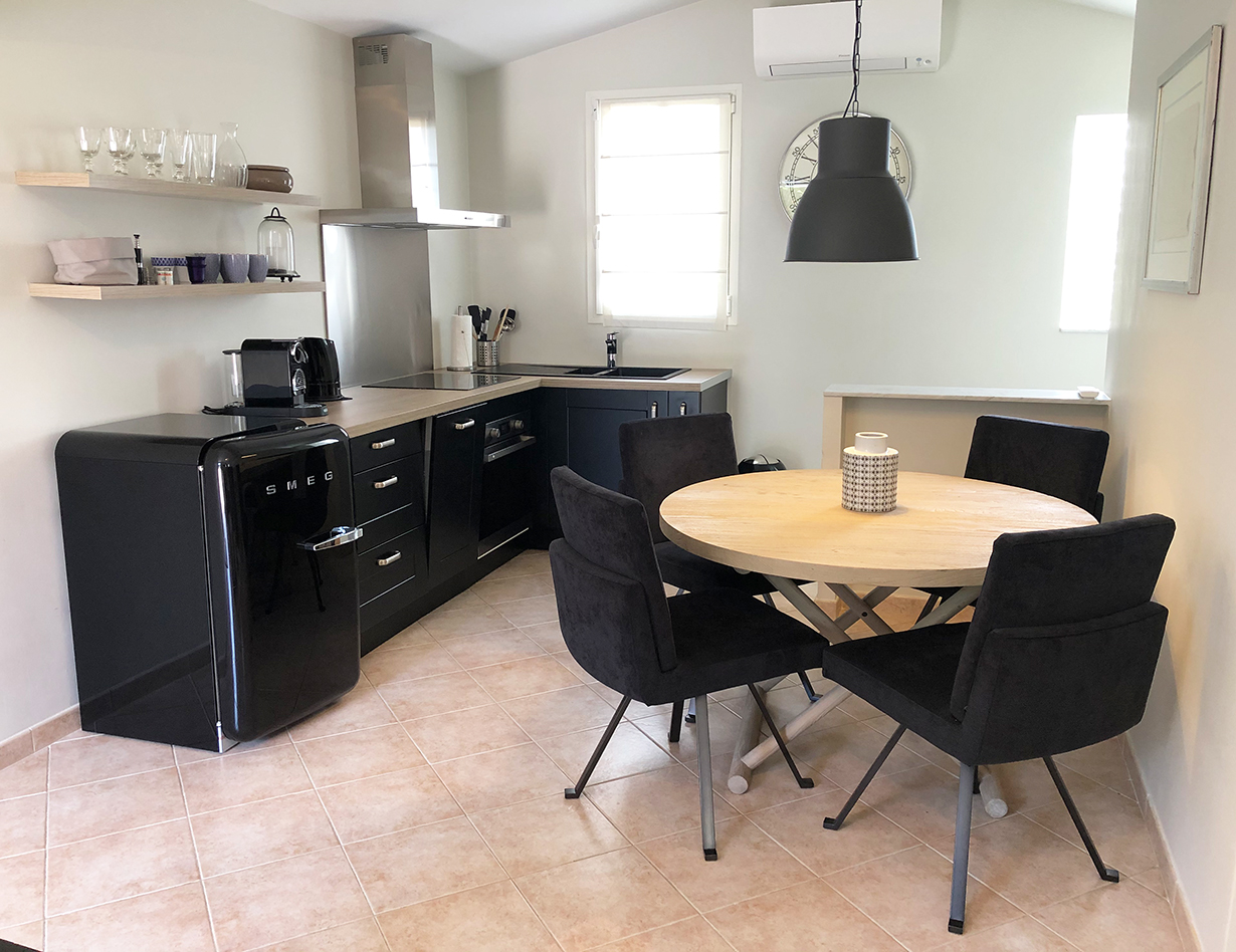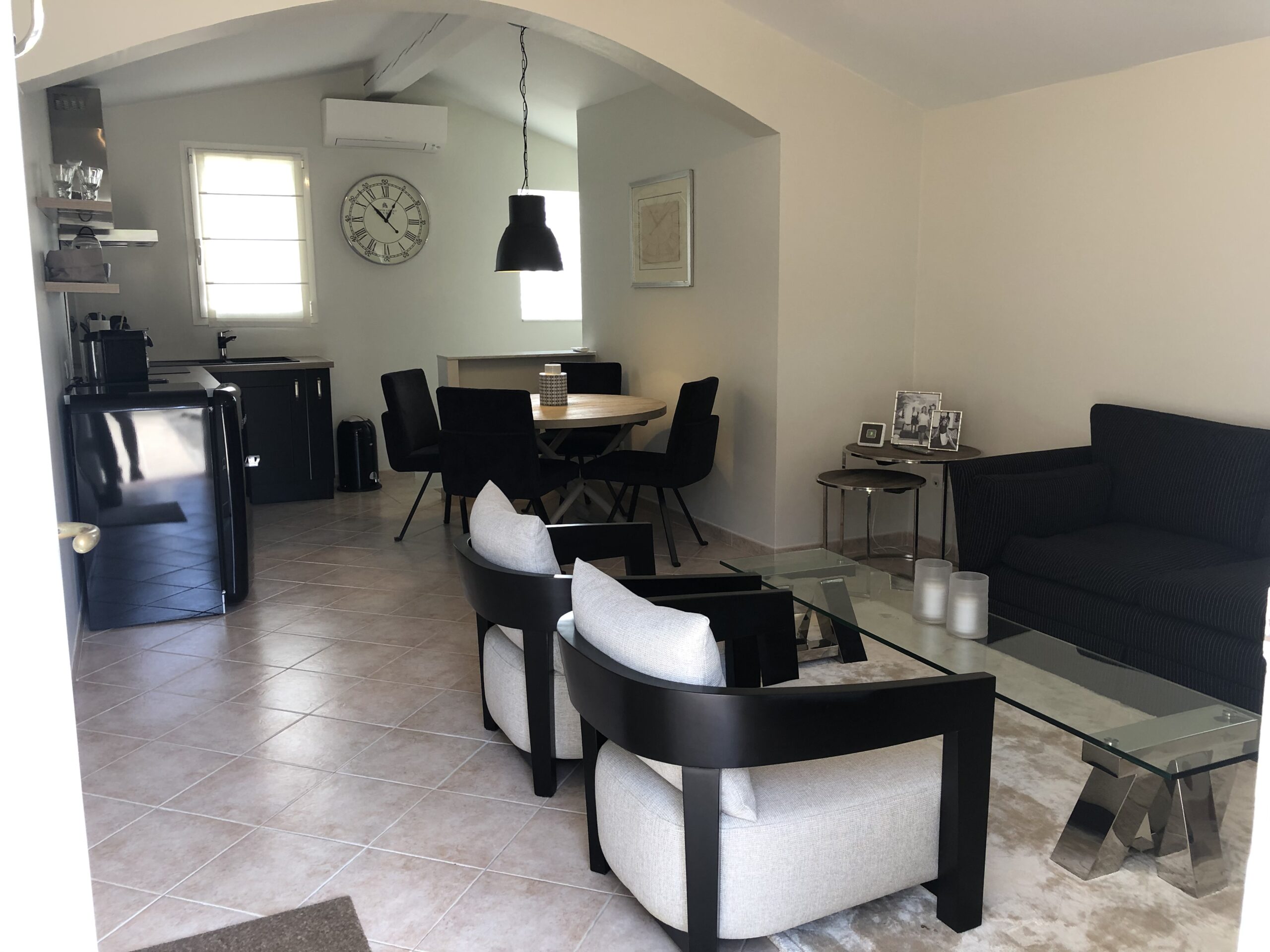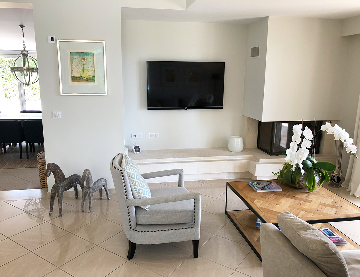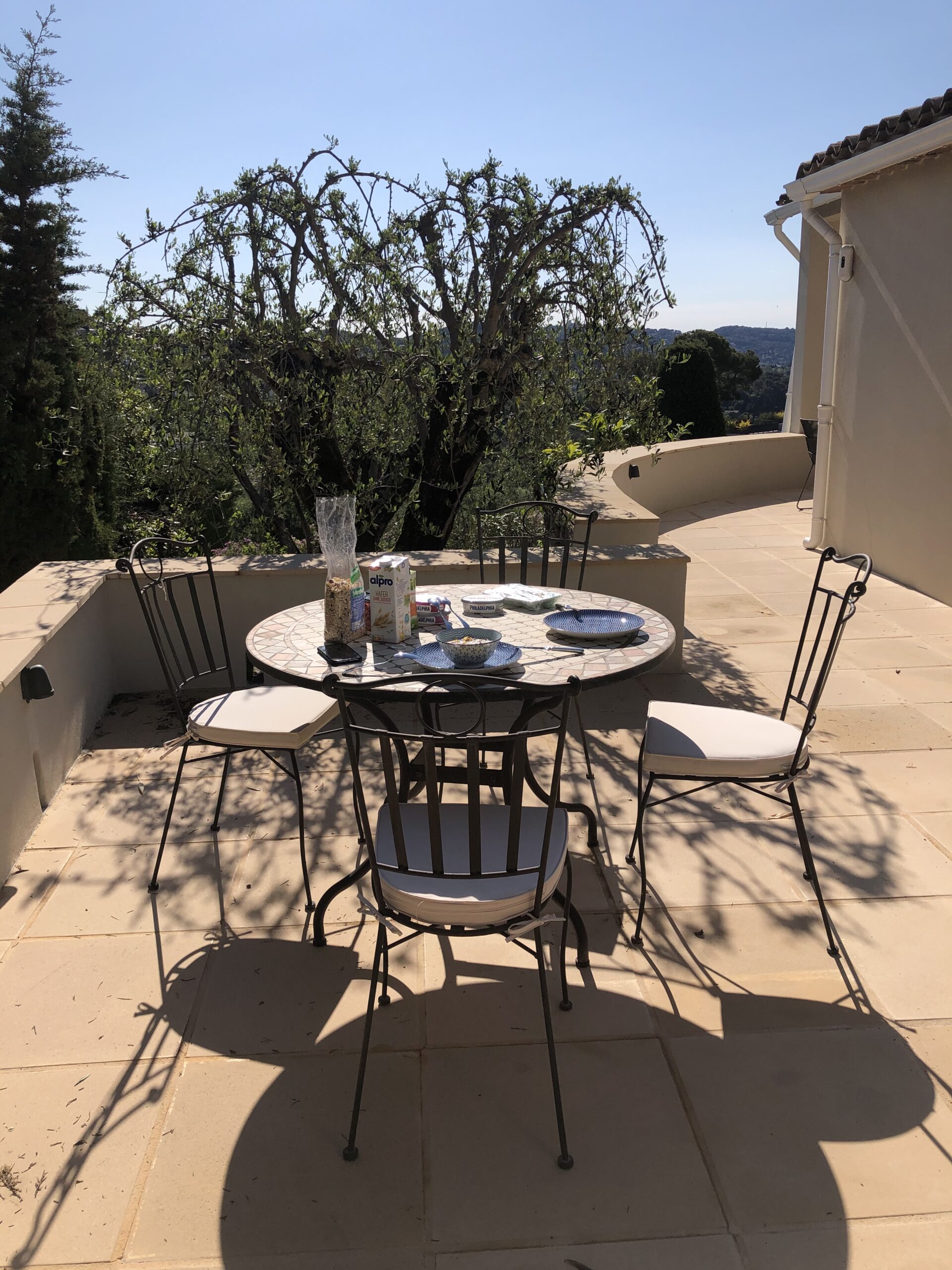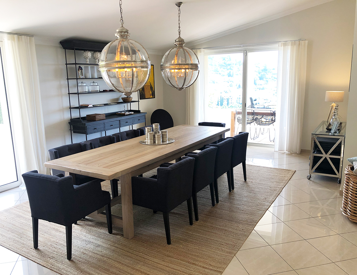 Wenn Sie nach einem abwechslungsreichen Urlaubstag in die Villa „Bouscarle“ zurückkehren, bietet Ihnen die großzügige und exklusive Wohnebene ausnahmslos alles, was Sie zum Durchatmen und Entspannen brauchen. Direkt vom Wohnbereich kommen Sie auf die überdachte Terrasse, die bei jedem Wetter zum Entspannen geeignet ist und Ihnen einen grandiosen Blick auf die Umgebung bietet. Genießen Sie Ihre Urlaubsabende bei einem gemütlichen BBQ mit dem großen Gasgrill und freuen Sie sich darauf, in Ihrem Ferienhaus in Mougins den Charme der Côte d’Azur hautnah zu erleben. Sowohl im Innen- als auch im Außenbereich steht Ihnen ein großer Esstisch zur Verfügung, der zum gemeinsamen Speisen während des Aufenthalts einlädt.