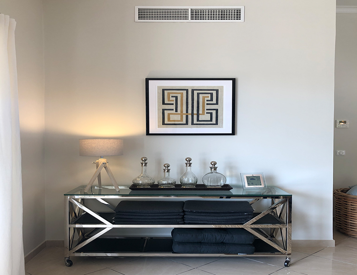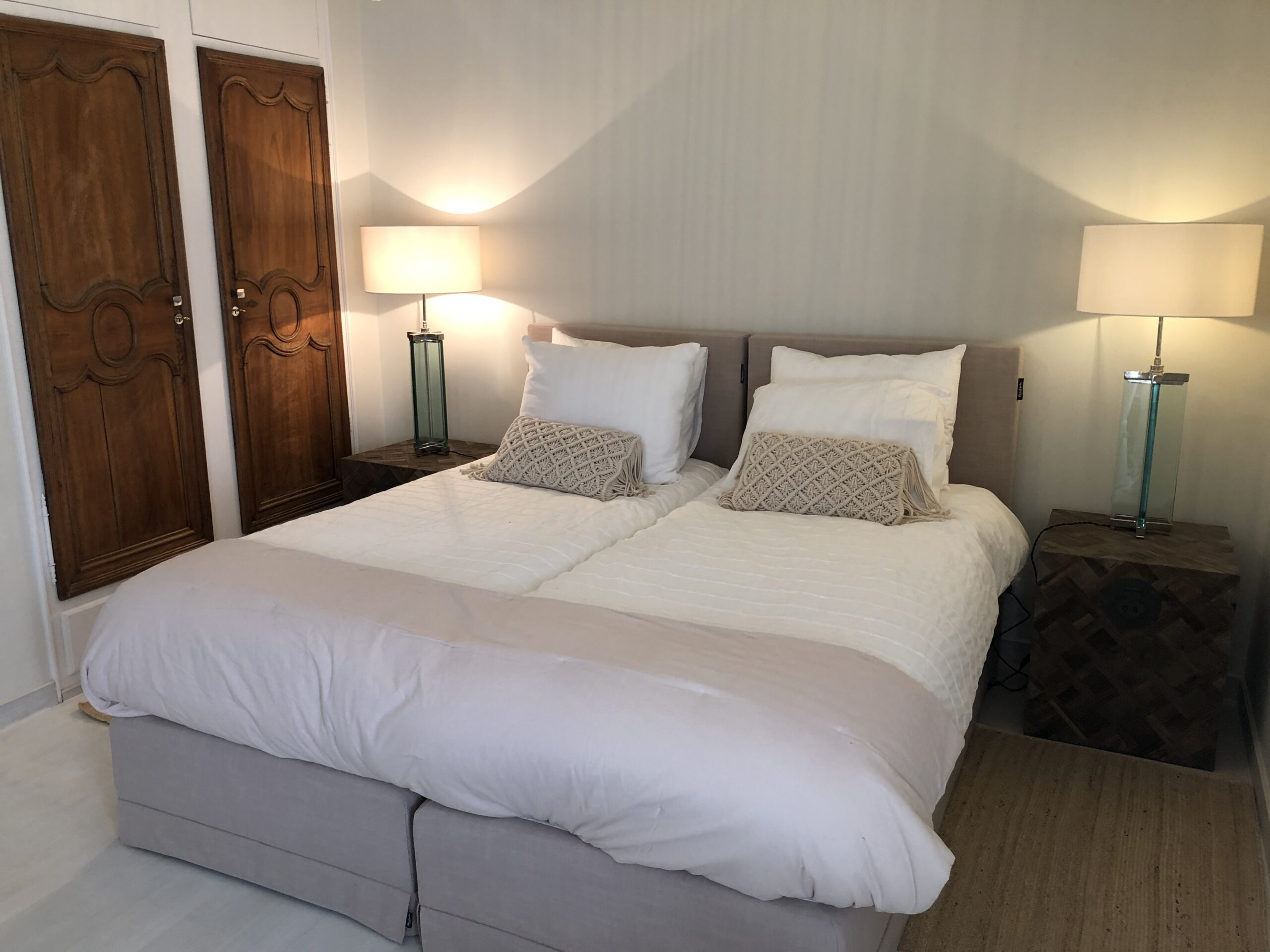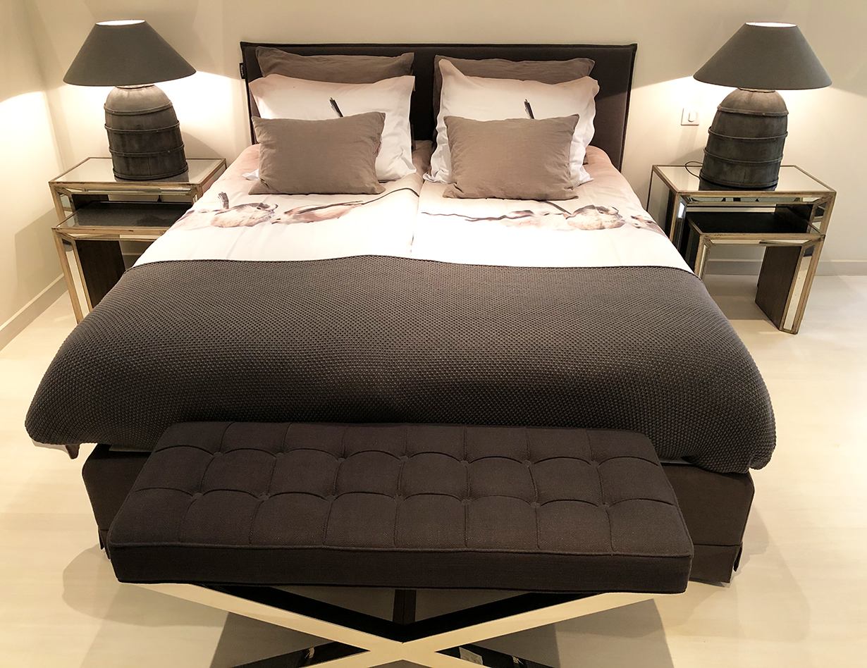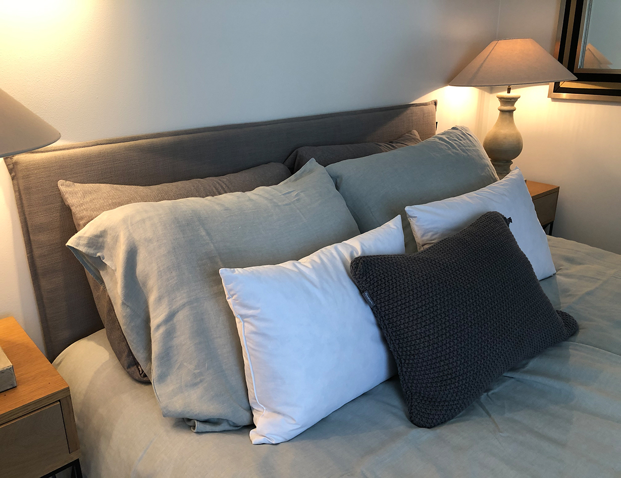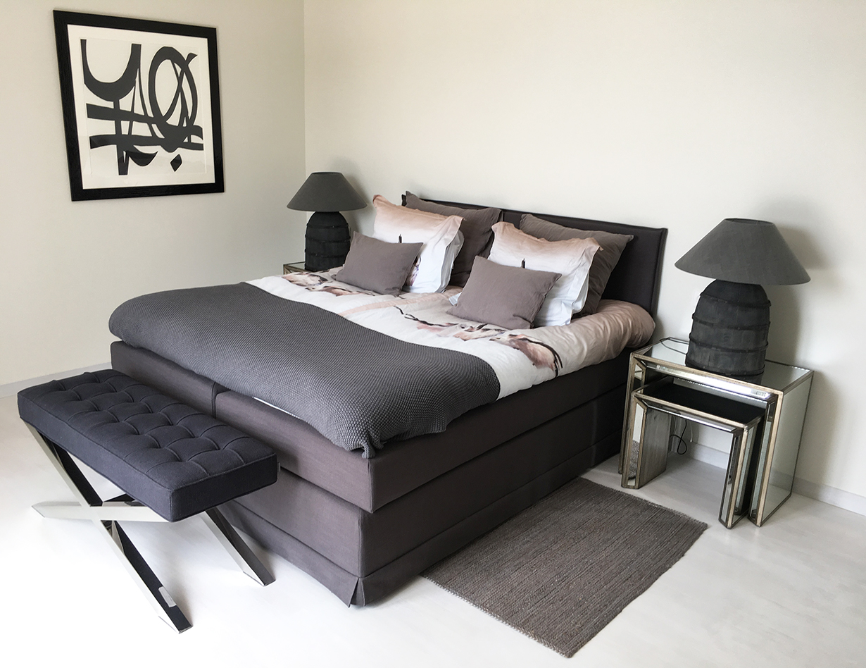 Voll klimatisiert, 5 Schlafzimmer mit komfortablen Doppelbetten: 4 im Haupthaus, 1 im sep. Studio. Alle Betten sind Boxspringbetten von sehr hoher Qualität.