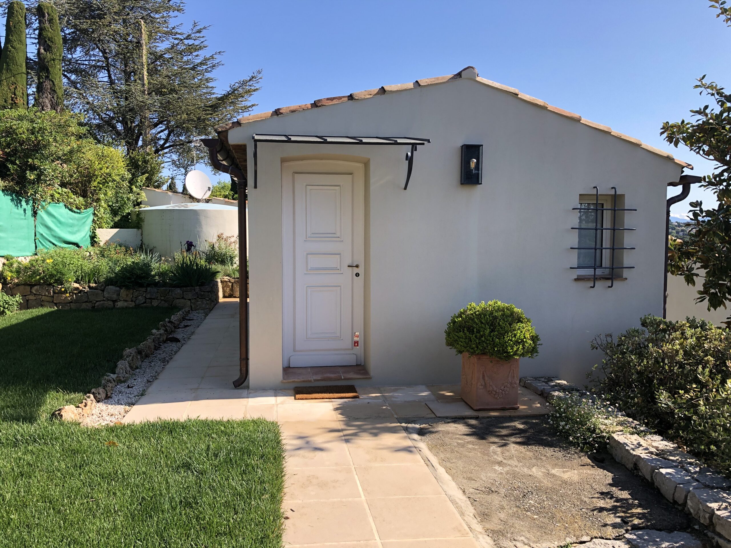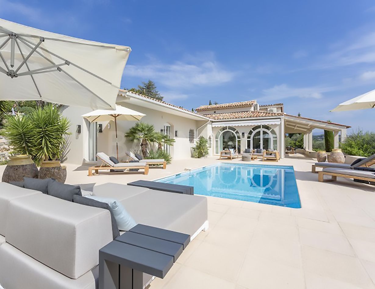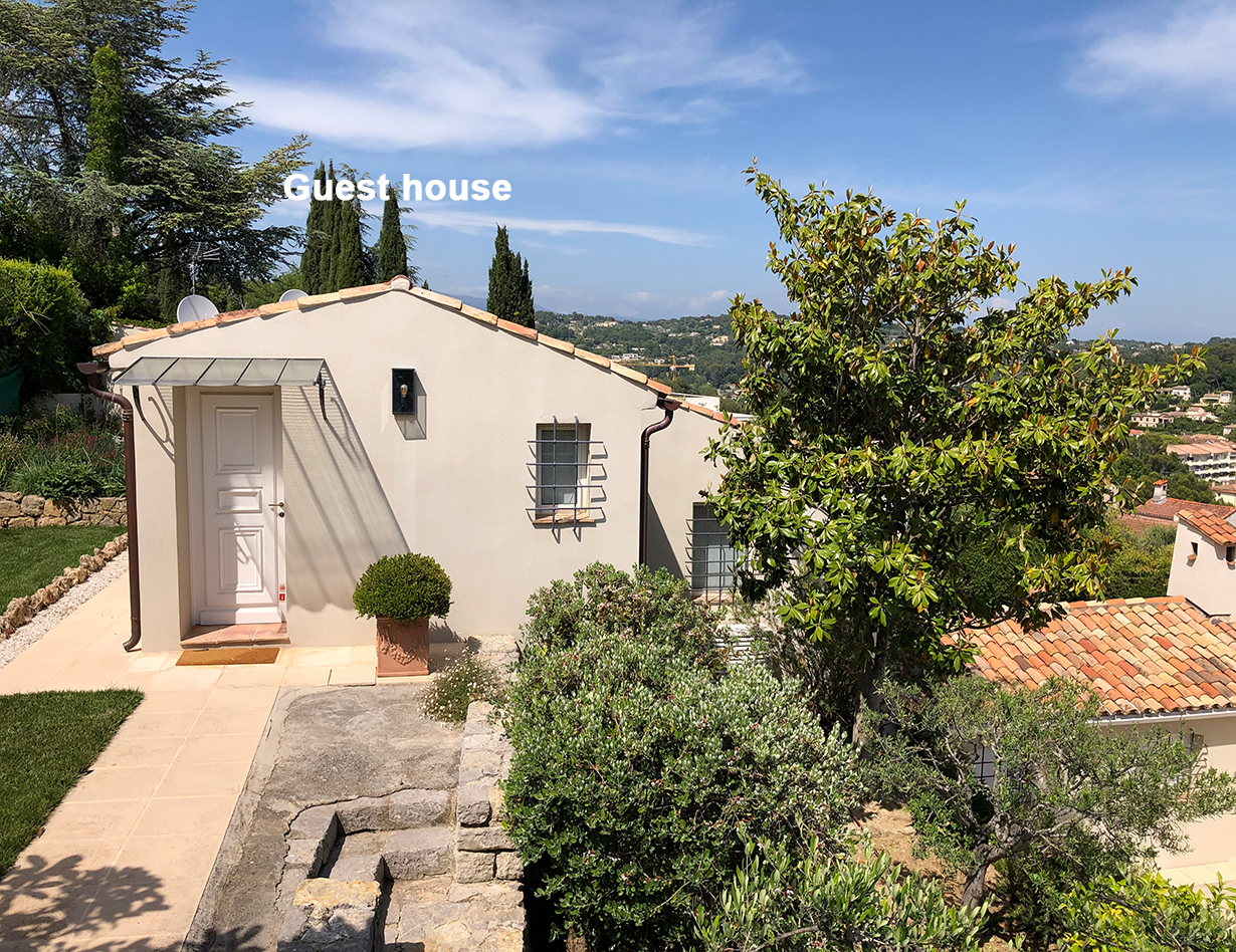 Angefangen von der exzellenten Inneneinrichtung bis hin zu den hellen großen Räumen, ist die Villa „Bouscarle“ ein wahres Traumdomizil. Das klimatisierte Ferienhaus in Mougins befindet sich in exklusiver, aber ruhiger Villenlage und hält neben einem Haupthaus mit vier Schlafzimmern und ensuite Bädern ein weiteres Gästehaus für zwei Erwachsene bereit. Sowohl vom Haus aus als auch von der Terrasse haben Sie einen traumhaften Blick auf die Umgebung. Lassen Sie den Blick über die hügelige Landschaft und die nahe gelegenen Seealpen streifen, die vor allem im Frühjahr mit ihren weißen Spitzen noch ein besonderes Schauspiel sind.