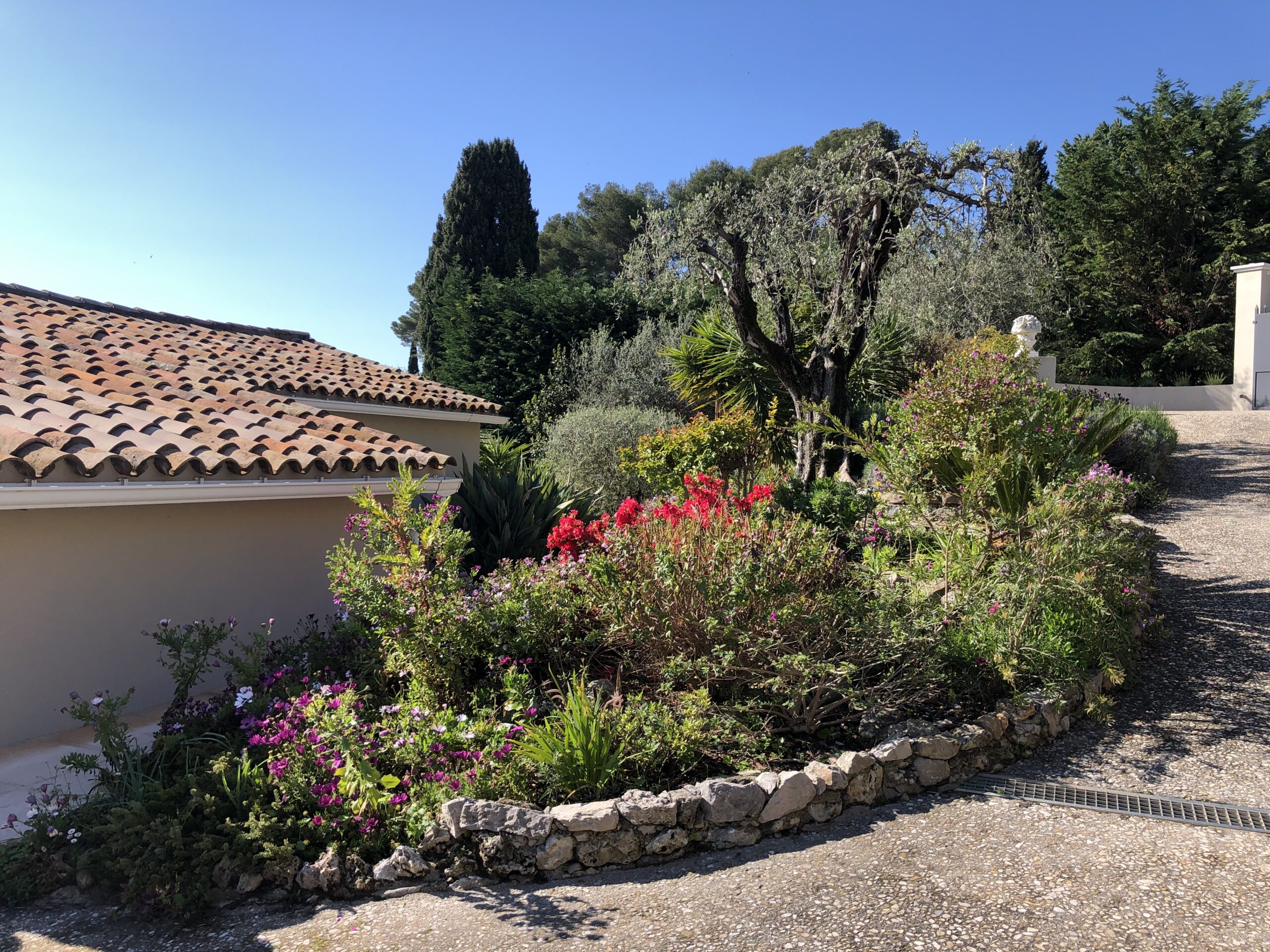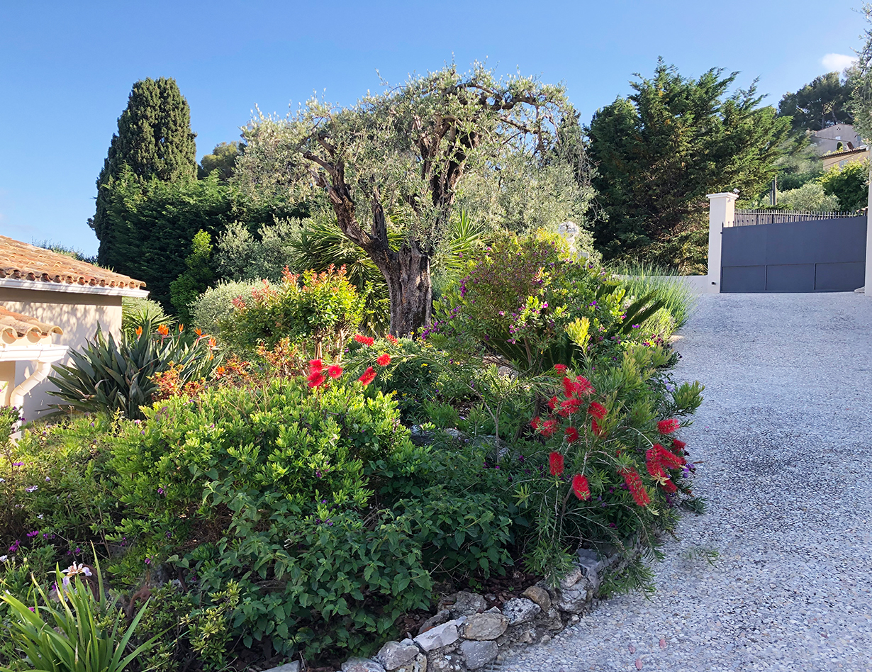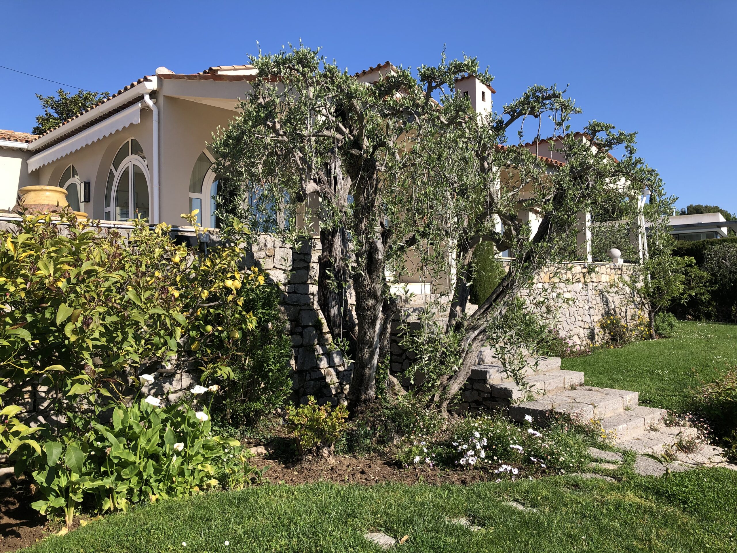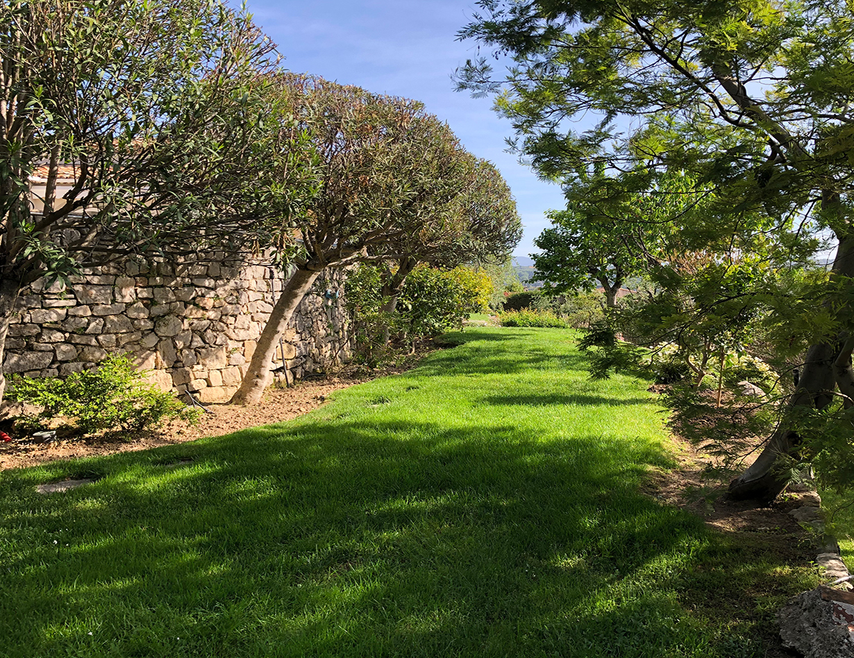 Ca 2500 m2, wunderschönes sehr gepflegtes Grundstück mit vielen Blumen, Olivenbäumen, Rasenfläche, Palmen