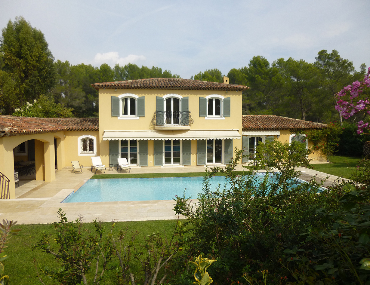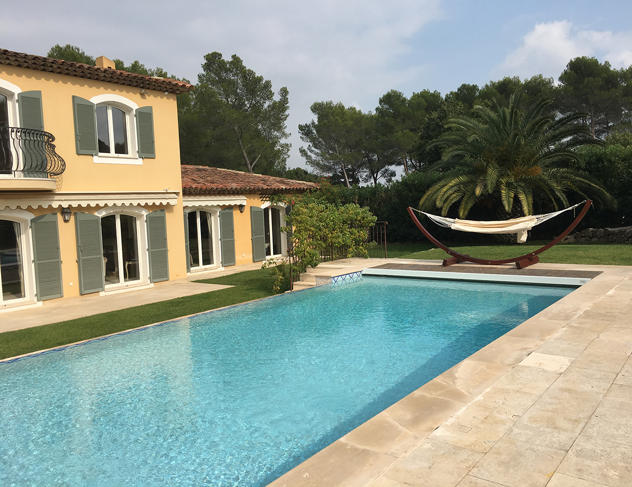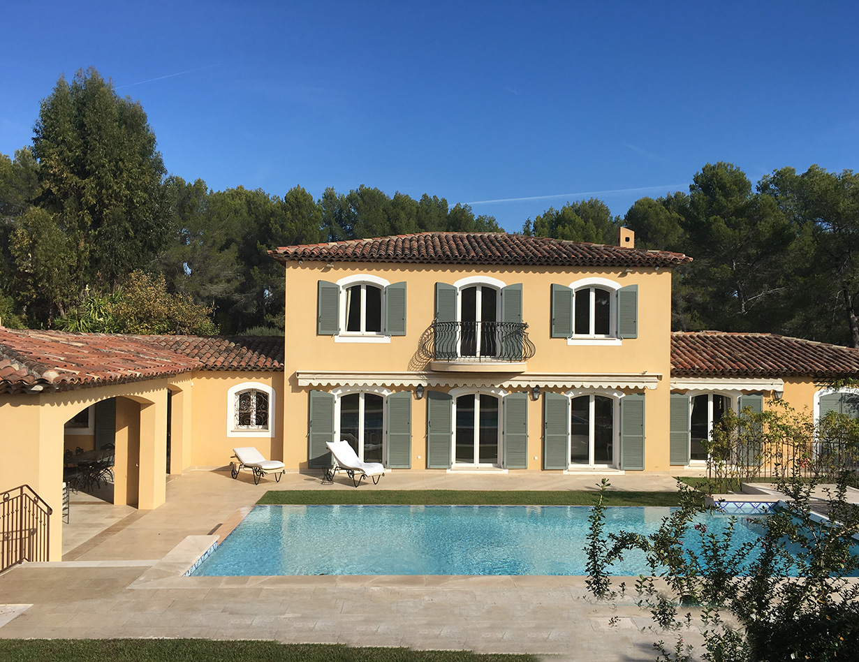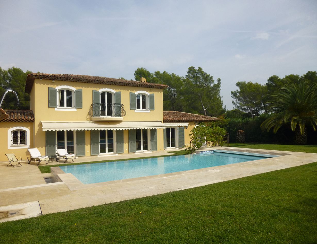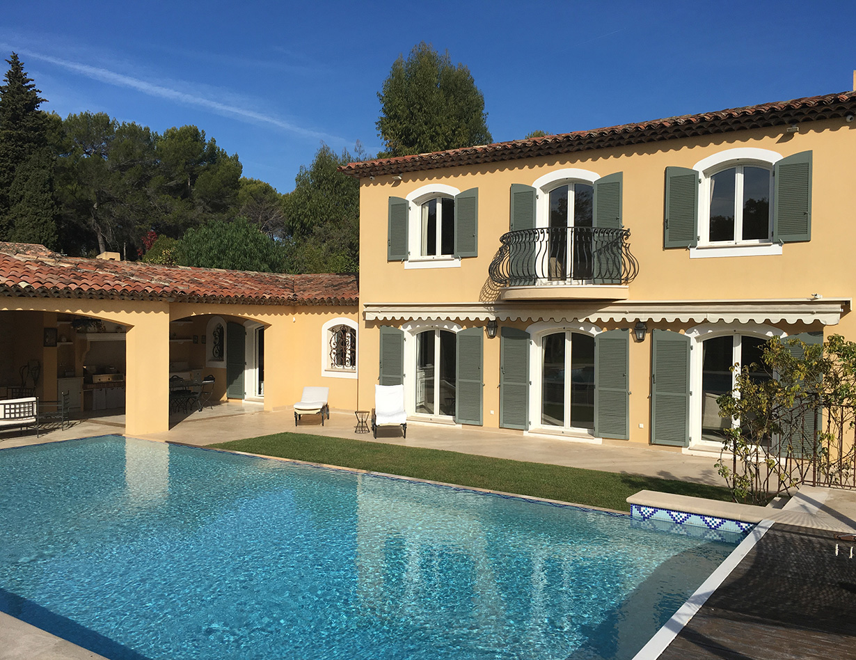 Sehr exklusive Adresse! In der geschlossenen Domain mit luxuriösen Villen, nah zu Cannes, steht diese wunderbare große exklusive neue Villa. Das sehr schöne Objekt verfügt über 4 luxuriöse große Schlafzimmer, davon eine sehr große Suite mit Dressing und großem Badezimmer auf der Gartenebene, eine weitere Suite im OG und zwei komfortable große Schlafzimmer, 1 Kinder-/Jugendzimmer im UG kann ggfs dazu benutz werden (ohne Fenster), 4 schöne Bäder. Eine edle große und sehr gut ausgestattete Designer-Küche (Geräte Miele) mit sep. Wirtschaftsraum, großes schickes Wohn-Eßzimmer mit einem herrlichen großen Kamin und TV. Austritt direkt zu den Terrassen und dem wunderschönen Garten mit großem Pool und vielen komfortablen Gartenmöbeln. Ein Traum ist der Außen-Sommerwohnbereich mit den gemütlichen Loungemöbeln und Sofas, der großen Sommerküche mit großem Gas-BBQ – einfach ein herrlicher Platz zum Relaxen. Pizzaofen im Garten (Holzkohle). Das Haus ist technisch auf einem sehr hohen Standard und mit sehr luxuriösen Materialien und Möbeln ausgestattet, mehrere TVs, großer TV-Video-Bereich im UG, klimatisierte Schlafbereiche, alles sehr sehr gepflegt. Der Garten ist liebevoll angelegt und gepflegt. Elektrisches Tor, mehrere Parkplätze auf dem Grundstück. Ein Haus für alle, die einen hohen Anspruch an gehobene Ausstattung und hohe Qualität haben in edlem Ambiente.