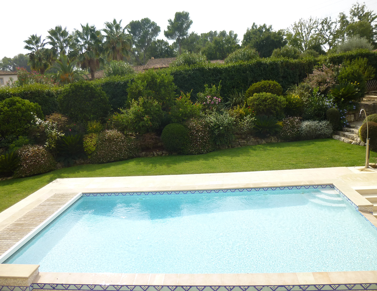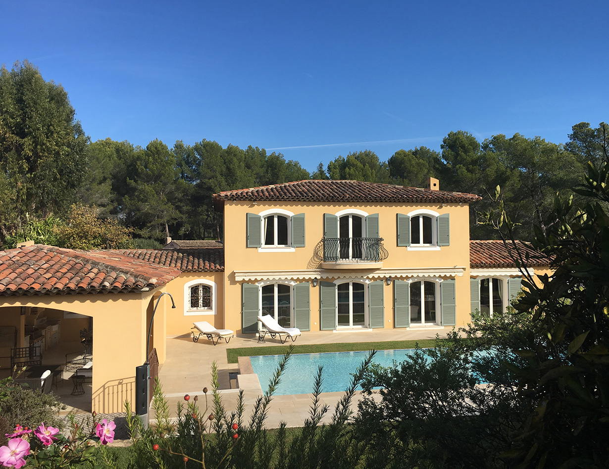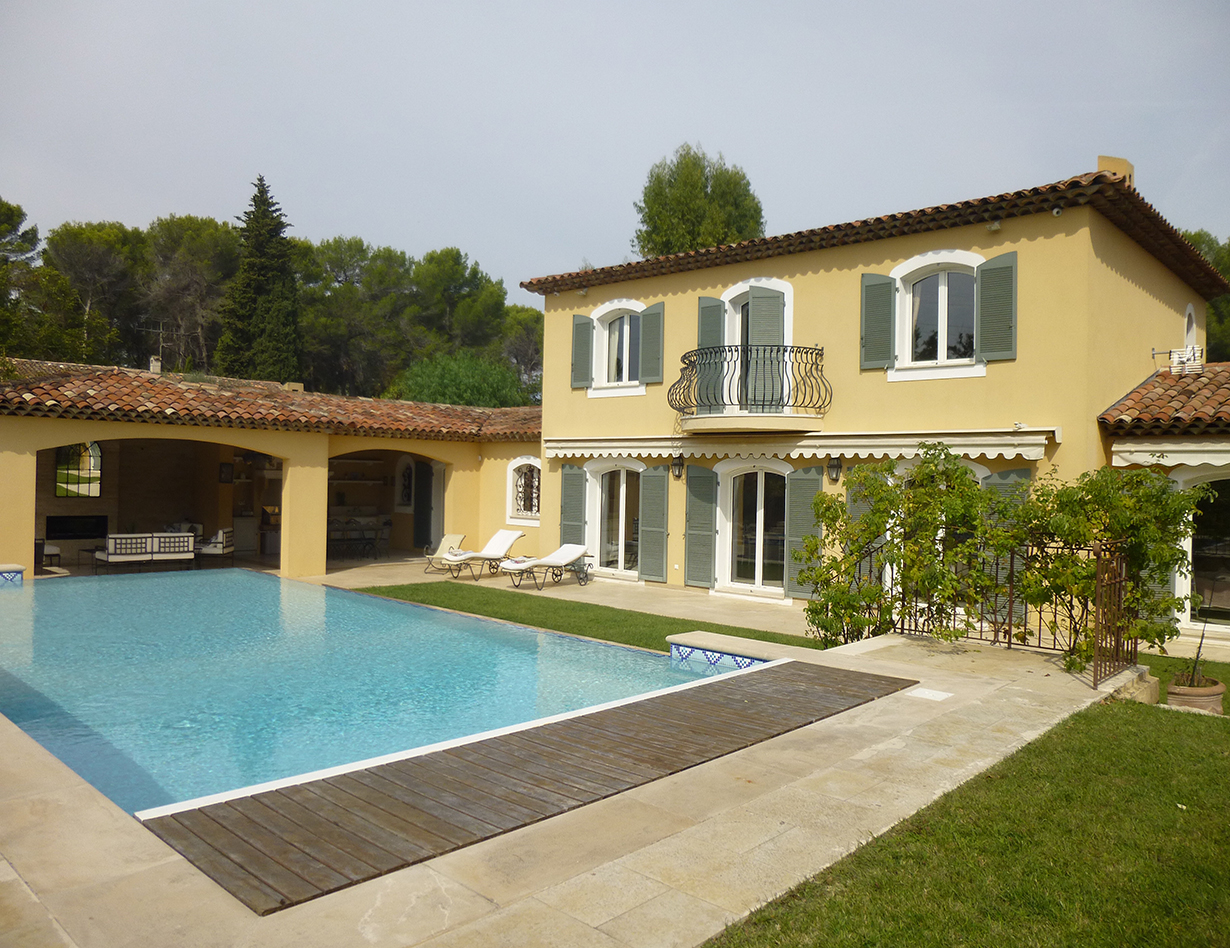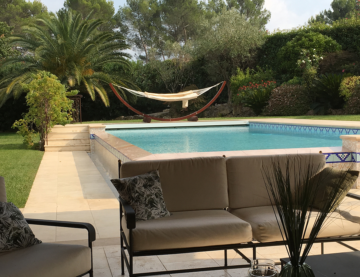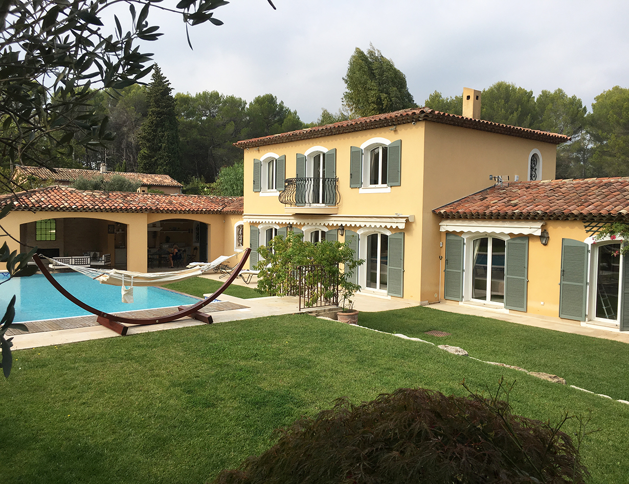 Sehr exklusive Adresse! In der geschlossenen Domain mit luxuriösen Villen, nah zu Cannes, steht diese wunderbare große exklusive neue Villa. Das sehr schöne Objekt verfügt über 4 luxuriöse große Schlafzimmer, davon eine sehr große Suite mit Dressing und großem Badezimmer auf der Gartenebene, eine weitere Suite im OG und zwei komfortable große Schlafzimmer, 1 Kinder-/Jugendzimmer im UG kann ggfs dazu benutz werden (ohne Fenster), 4 schöne Bäder. Eine edle große und sehr gut ausgestattete Designer-Küche (Geräte Miele) mit sep. Wirtschaftsraum, großes schickes Wohn-Eßzimmer mit einem herrlichen großen Kamin und TV. Austritt direkt zu den Terrassen und dem wunderschönen Garten mit großem Pool und vielen komfortablen Gartenmöbeln. Ein Traum ist der Außen-Sommerwohnbereich mit den gemütlichen Loungemöbeln und Sofas, der großen Sommerküche mit großem Gas-BBQ – einfach ein herrlicher Platz zum Relaxen. Pizzaofen im Garten (Holzkohle). Das Haus ist technisch auf einem sehr hohen Standard und mit sehr luxuriösen Materialien und Möbeln ausgestattet, mehrere TVs, großer TV-Video-Bereich im UG, klimatisierte Schlafbereiche, alles sehr sehr gepflegt. Der Garten ist liebevoll angelegt und gepflegt. Elektrisches Tor, mehrere Parkplätze auf dem Grundstück. Ein Haus für alle, die einen hohen Anspruch an gehobene Ausstattung und hohe Qualität haben in edlem Ambiente.