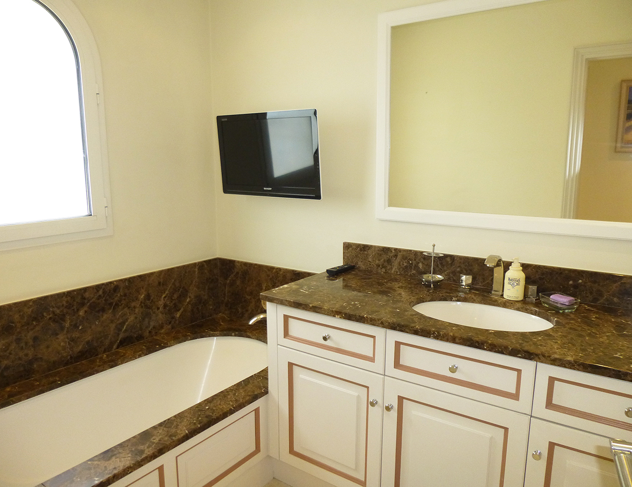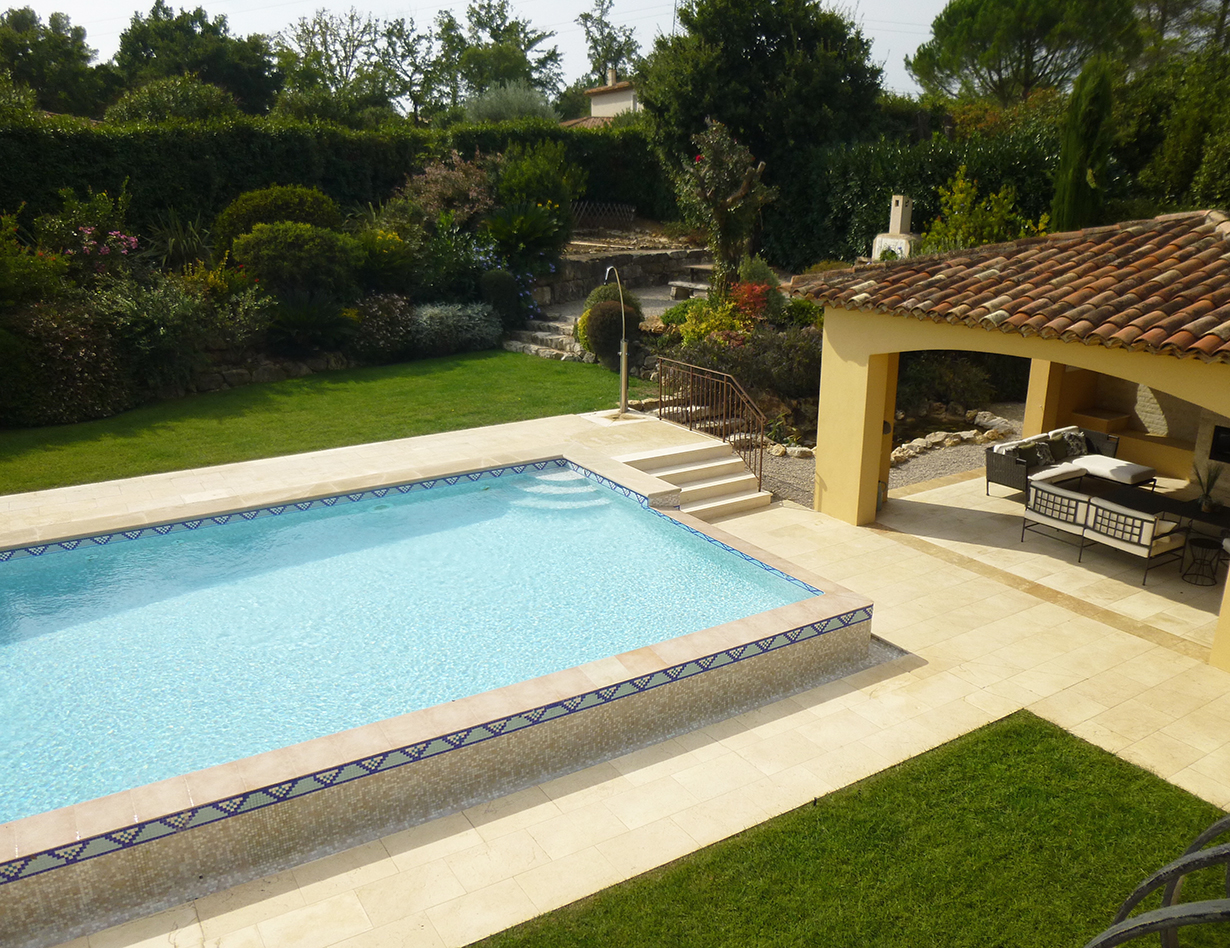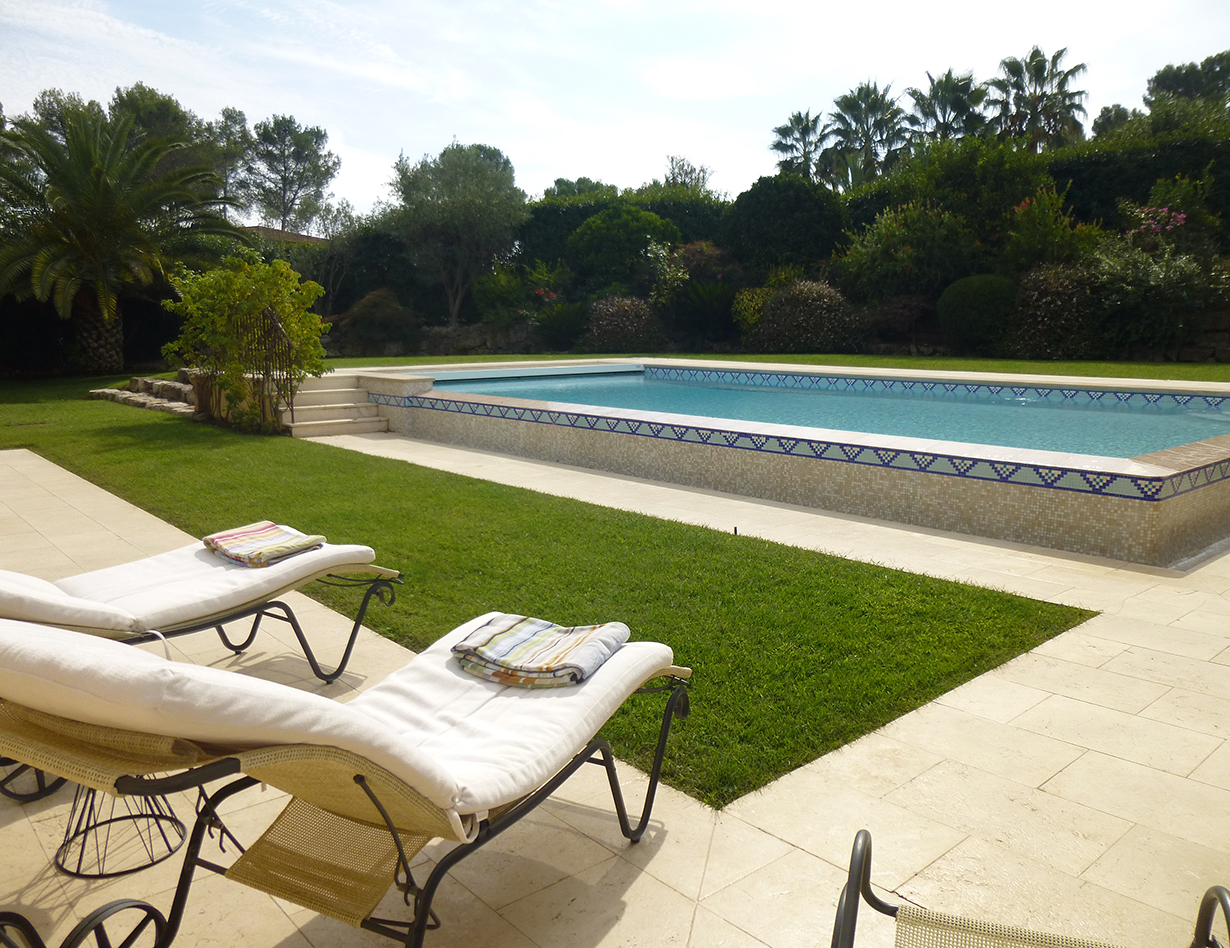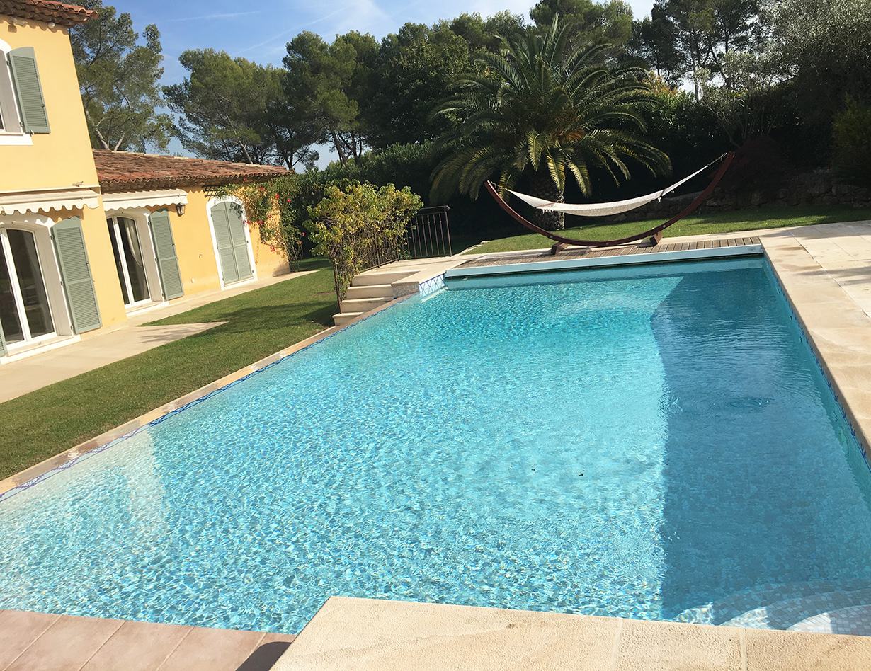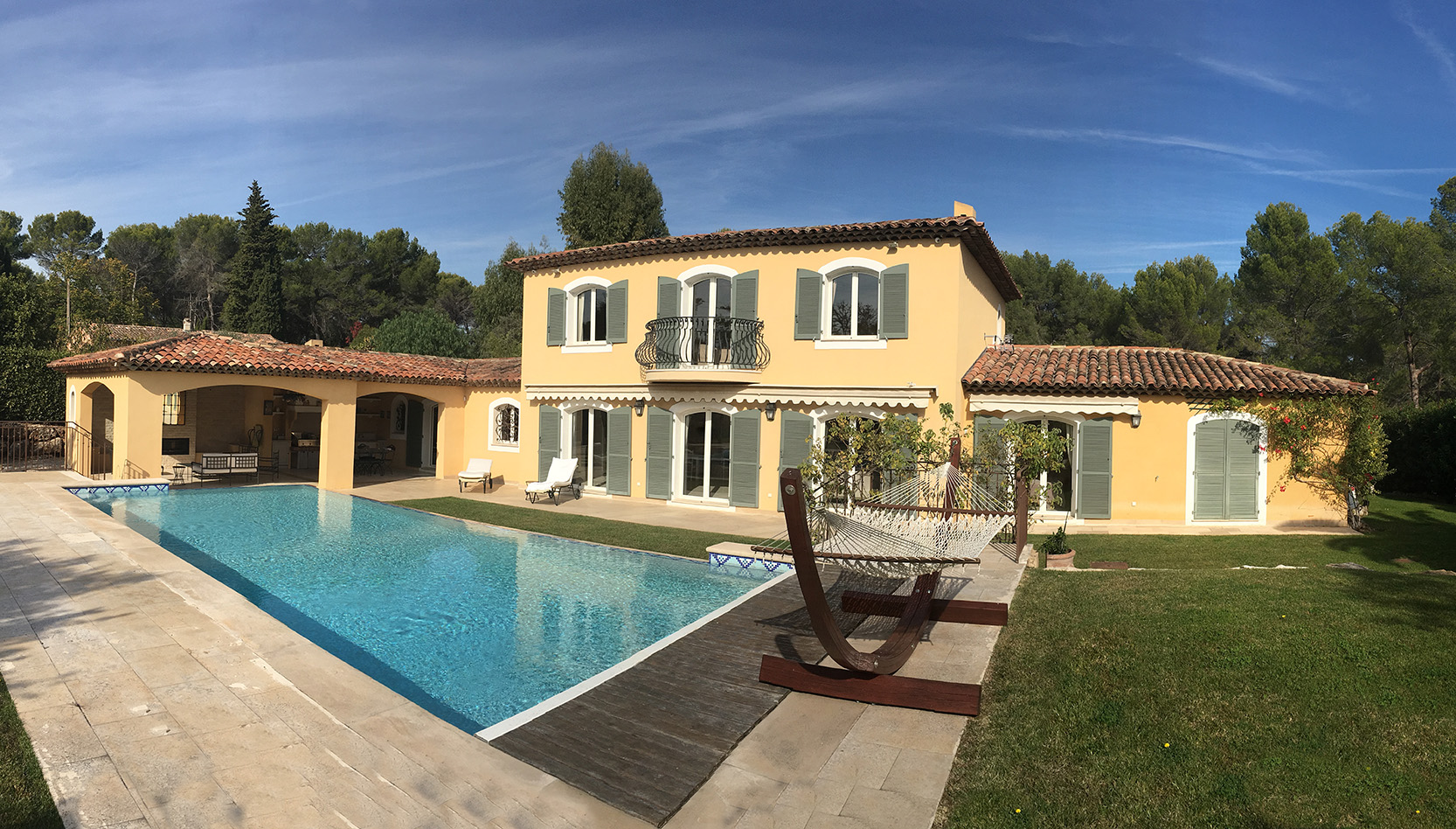 Sehr exklusive Adresse! In der geschlossenen Domain mit luxuriösen Villen, nah zu Cannes, steht diese wunderbare große exklusive neue Villa. Das sehr schöne Objekt verfügt über 4 luxuriöse große Schlafzimmer, davon eine sehr große Suite mit Dressing und großem Badezimmer auf der Gartenebene, eine weitere Suite im OG und zwei komfortable große Schlafzimmer, 1 Kinder-/Jugendzimmer im UG kann ggfs dazu benutz werden (ohne Fenster), 4 schöne Bäder. Eine edle große und sehr gut ausgestattete Designer-Küche (Geräte Miele) mit sep. Wirtschaftsraum, großes schickes Wohn-Eßzimmer mit einem herrlichen großen Kamin und TV. Austritt direkt zu den Terrassen und dem wunderschönen Garten mit großem Pool und vielen komfortablen Gartenmöbeln. Ein Traum ist der Außen-Sommerwohnbereich mit den gemütlichen Loungemöbeln und Sofas, der großen Sommerküche mit großem Gas-BBQ – einfach ein herrlicher Platz zum Relaxen. Pizzaofen im Garten (Holzkohle). Das Haus ist technisch auf einem sehr hohen Standard und mit sehr luxuriösen Materialien und Möbeln ausgestattet, mehrere TVs, großer TV-Video-Bereich im UG, klimatisierte Schlafbereiche, alles sehr sehr gepflegt. Der Garten ist liebevoll angelegt und gepflegt. Elektrisches Tor, mehrere Parkplätze auf dem Grundstück. Ein Haus für alle, die einen hohen Anspruch an gehobene Ausstattung und hohe Qualität haben in edlem Ambiente.