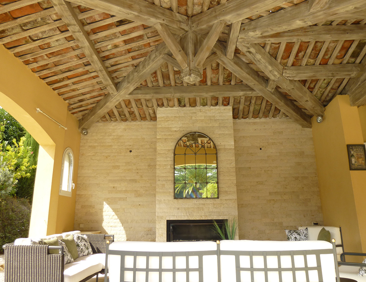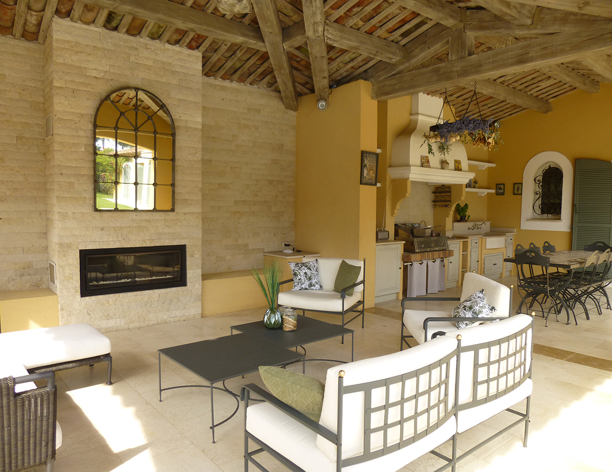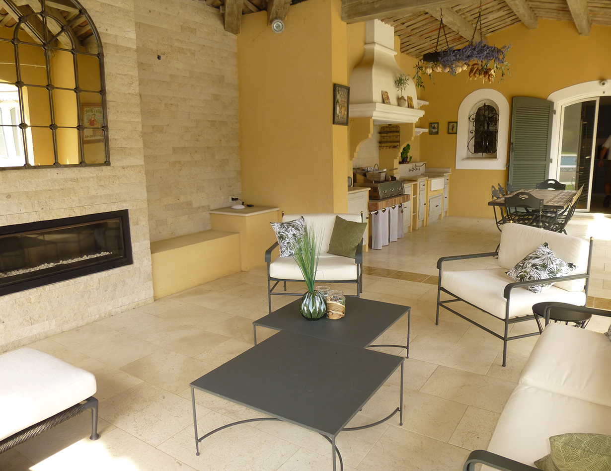 Große Terrasse vor dem Haus mit Eßtisch, Loungemöbel. Vor dem Pool befindet sich das herrlich große Poolhouse mit wunderbarer Sommerküche, Loungern, BBQ – ein absoluter Traum!