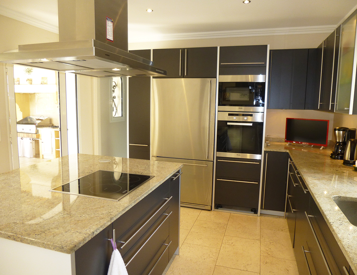 Große sehr luxuriöse Designerküche mit extrem guter Ausstattung, Mielegeräte, Weinkühlschrank, diverse große Kühlschränke etc etc. Im Hinteren Bereich ein zusätzlicher Wirtschaftsraum. Kaffeemaschine Vollautomat