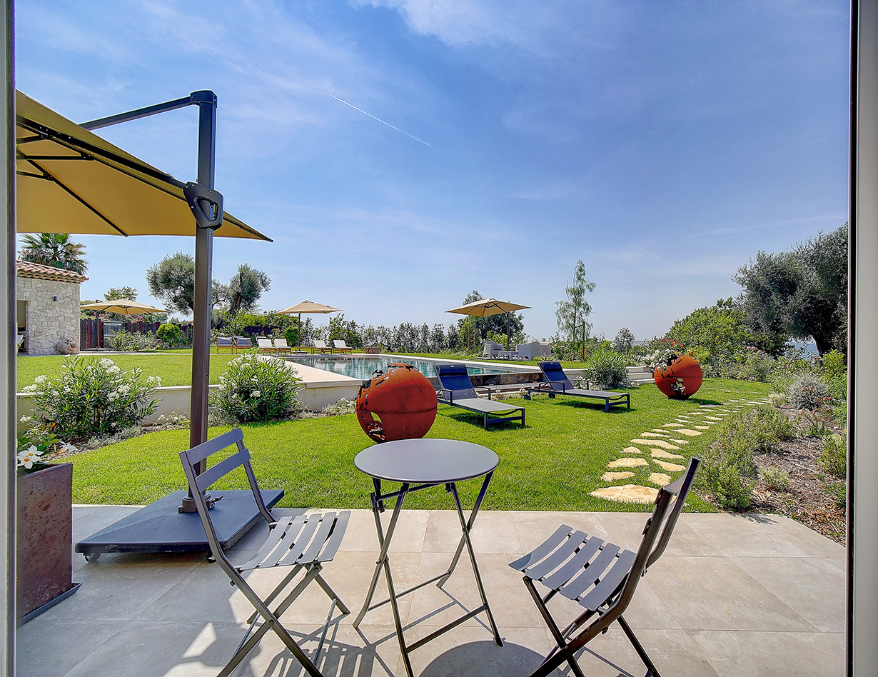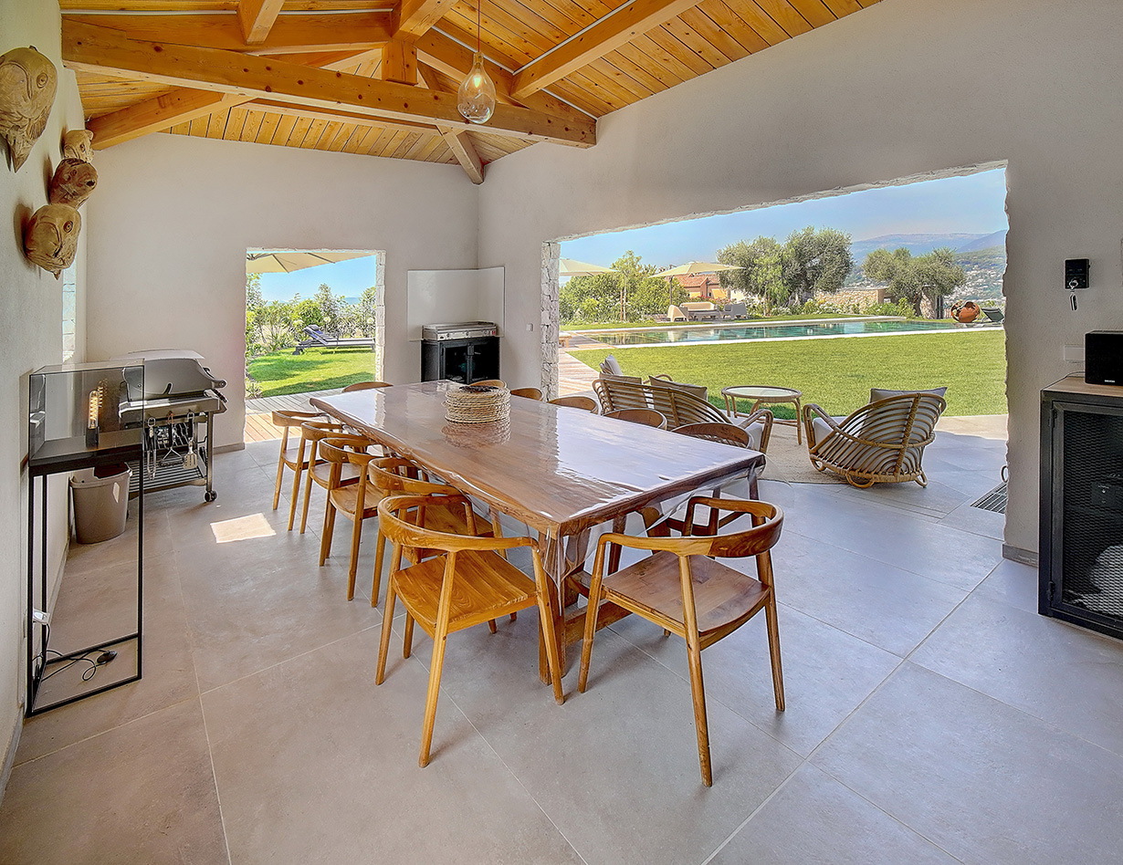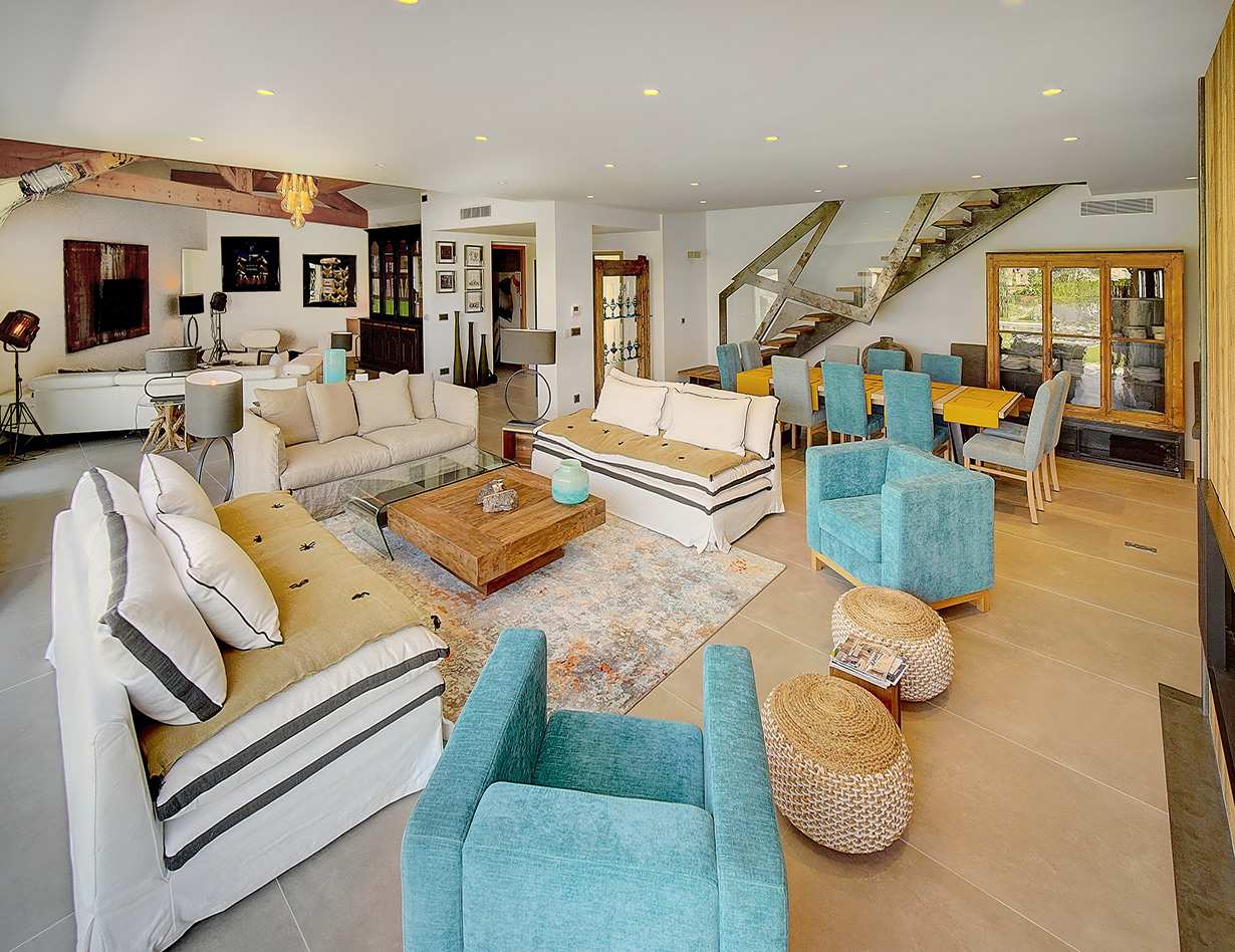 In bester ruhiger Villenlage liegt diese neu gebaute Luxus-Designervilla auf einem wunderschöne Grundstück mit herrlichem Garten und tollem Blick auf die Berglandschaft und das Meer. Das wunderschöne Architektenhaus wurde erst vor kurzem fertiggestellt und mit edelsten Materialien ausgestattet. Der Eigentümer hat es liebevoll eingerichtet mit vielen Designerstücken, tollen Kunstwerken, authentischen Dekorationen und hat somit einen wunderbaren Mix aus neu und alt geschaffen. Jedes Zimmer ist individuell eingerichtet und hat einen unglaublichen Charme. Auf der Wohnebene befinden sich 3 Schlafzimmer (eins behindertengerecht) mit ensuite Bädern und Austritt zum herrlichen Garten, auf der oberen Ebene befindet sich ein großes Masterzimmer mit großer vorliegender Terrasse. Der Garten ist von einem Gartendesigner angelegt, viele mediterrane Pflanzen in den Farbabstufungen weiß, grün-grau, rosé und Violette und dazu herrliche alte Olivenbäume laden zum Verweilen ein. Der große Spiegelpool mit flachem Einstieg lässt keine Wünsche offen (beheizbar). Verweilen Sie für einen Moment, Entspannung pur auf komfortablen Sonnenliegen. Eine Sauna wurde zudem auch in 2023 eingebaut – sauen – und dan gleich in den beheizten Pool :)! Vor der schicken Küche (übrigens extrem professionell ausgestattet – selbst mit Fleischreifekühlschrank! ) liegt eine wunderbare große überdachte Terrasse mit großem Gas-BBQ und einer Plancha. Der ideale Platz um die lauen Abende am großen Eßtisch zu genießen. Mehrere Parkplätze auf dem Grundstück. Sauna. Tennisplatz hinter dem Haus, kann auf Anfrage genutzt werden. Auf Wunsch Houseservice.