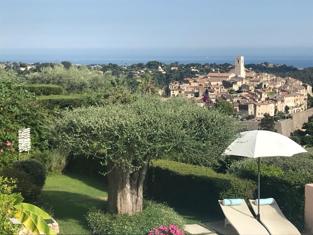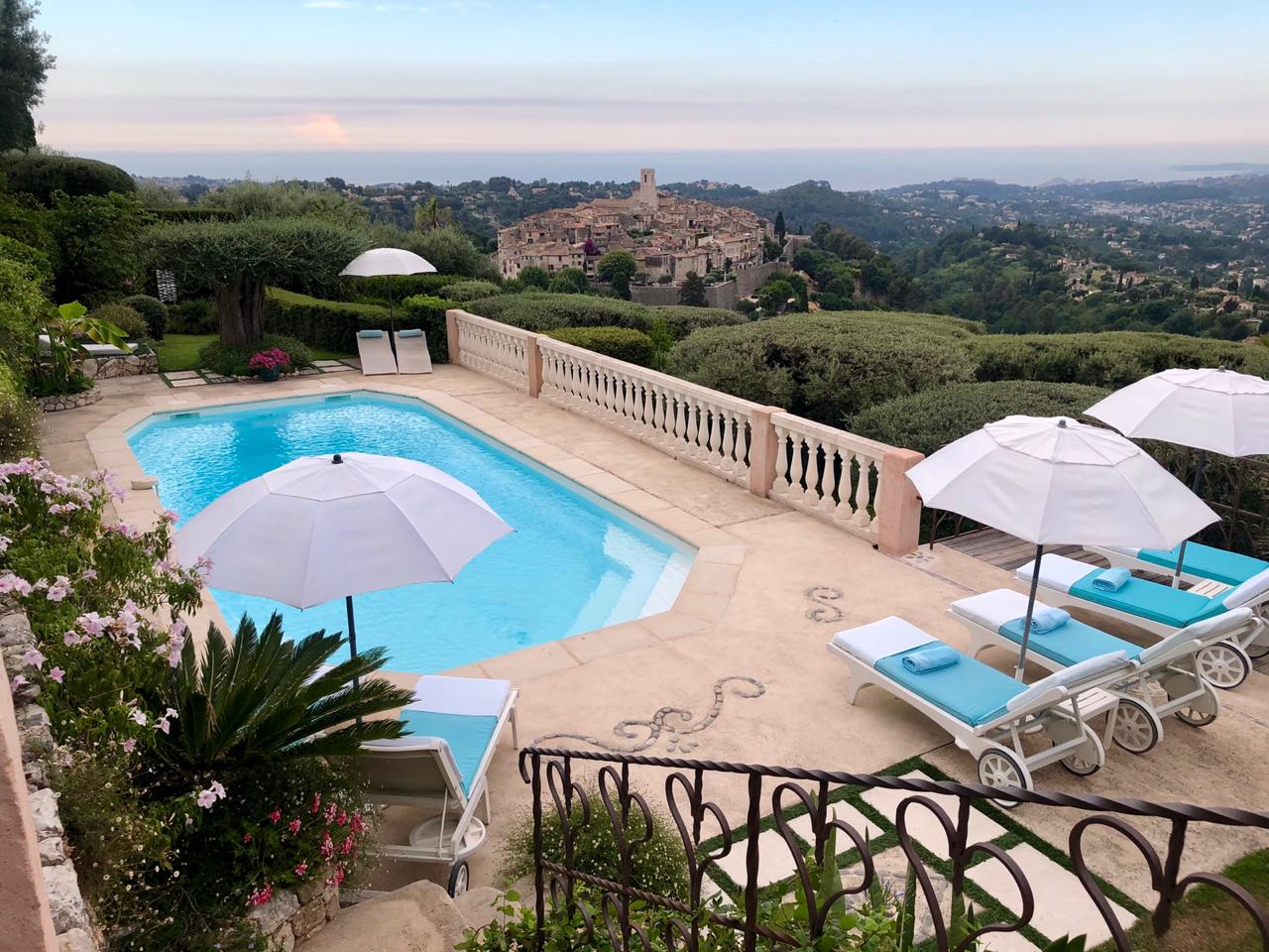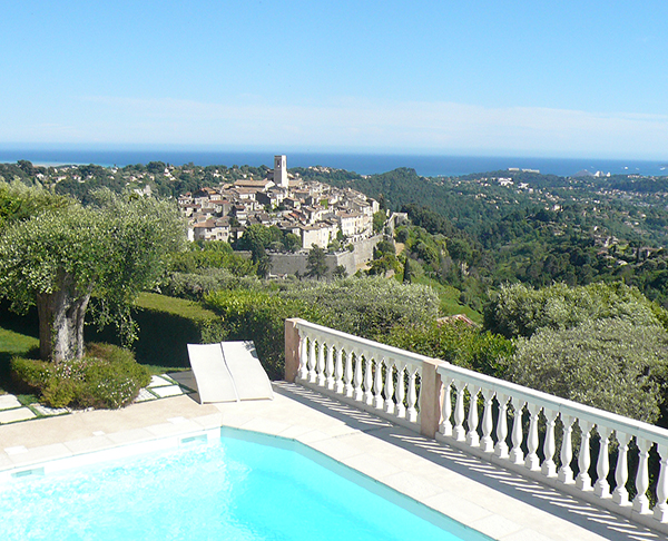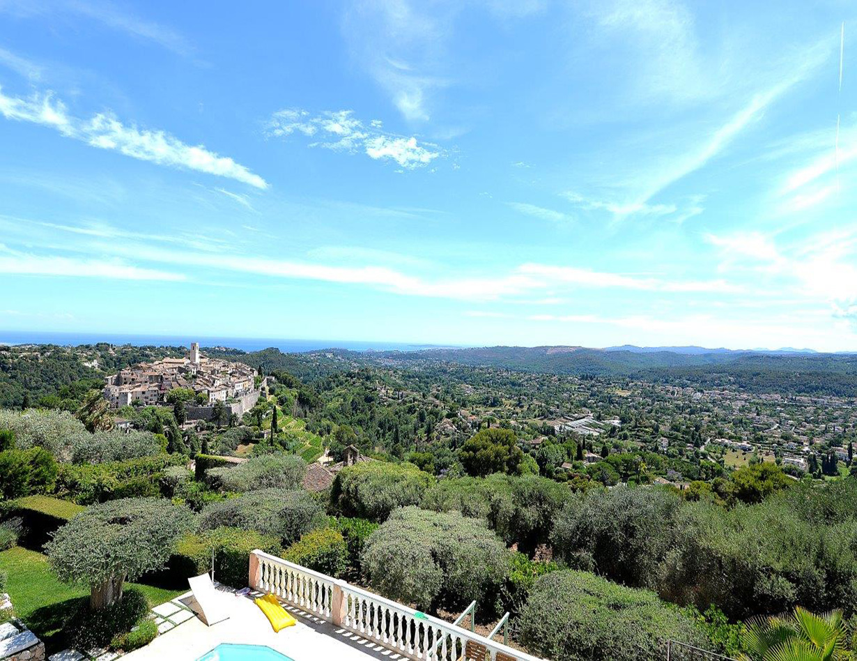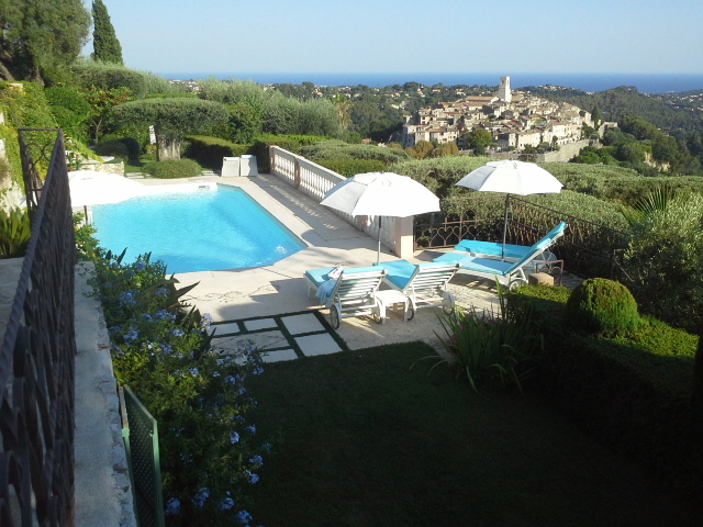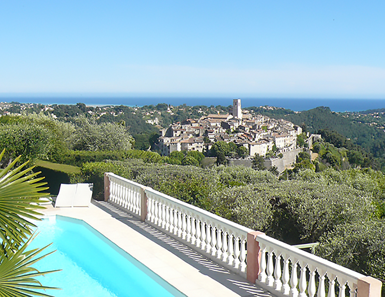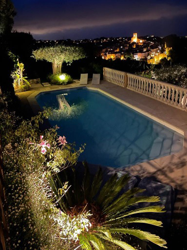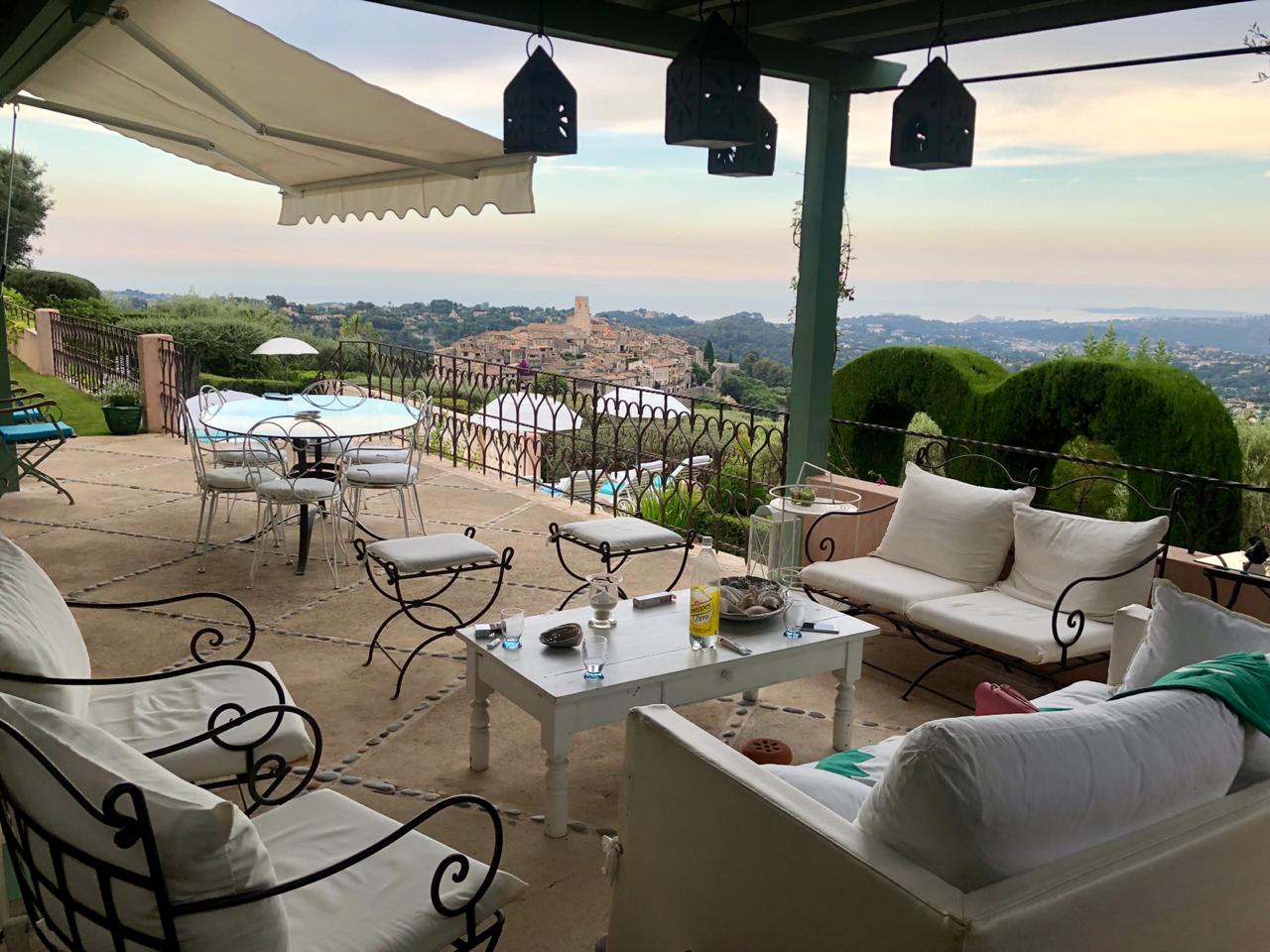 Einen schöneren Blick gibt es kaum: Blick auf die traumhafte Altstadt von St. Paul-de-Vence, Blick auf das Meer und die herrliche Umgebung. Die schöne gepflegte Villa liegt in der sehr prestigiösen Domaine, in der auch schon einige berühmte Stars ihre Domizile hatten oder noch haben. Absolut ruhige Lage. Zu Fuß nach St Paul über einen Privatweg in nur wenigen Minuten. Bestlage! Das Haus hat den ganzen Tag Sonne, Blick von allen Terrassen und auch vom Pool. Es bietet 180m2 Wohnfläche, aufgeteilt in 3 Schlafzimmer und 2 Bäder im Haupthaus, 1 weiteres schönes Schlafzimmer mit Bad liegt von außen zu begehen. Sehr gut ausgestattet mit allem, was man benötigt. Gemütlicher Wohnbereich, sep. Küche. Die Schlafzimmer sind alle sehr komfortabel, teilweise klimatisiert oder mit Ventilatoren. Es ist einfach nur herrlich sich auf dieser wunderschönen Terrasse aufzuhalten, in gemütlichen Loungemöbeln oder am Pool einfach nur zu relaxen. Nette kleine Bar am Pool für den Aperitif Großer BBQ vorhanden. Das herrliche Grundstück ist komplett gezäunt. Tolle Olivenbäume. Parkplätze sehr komfortabel. „Meine Gäste lieben dieses Haus und berichten mir immer, dass sie nicht mehr weg möchten! – Ihre Simone Andres“