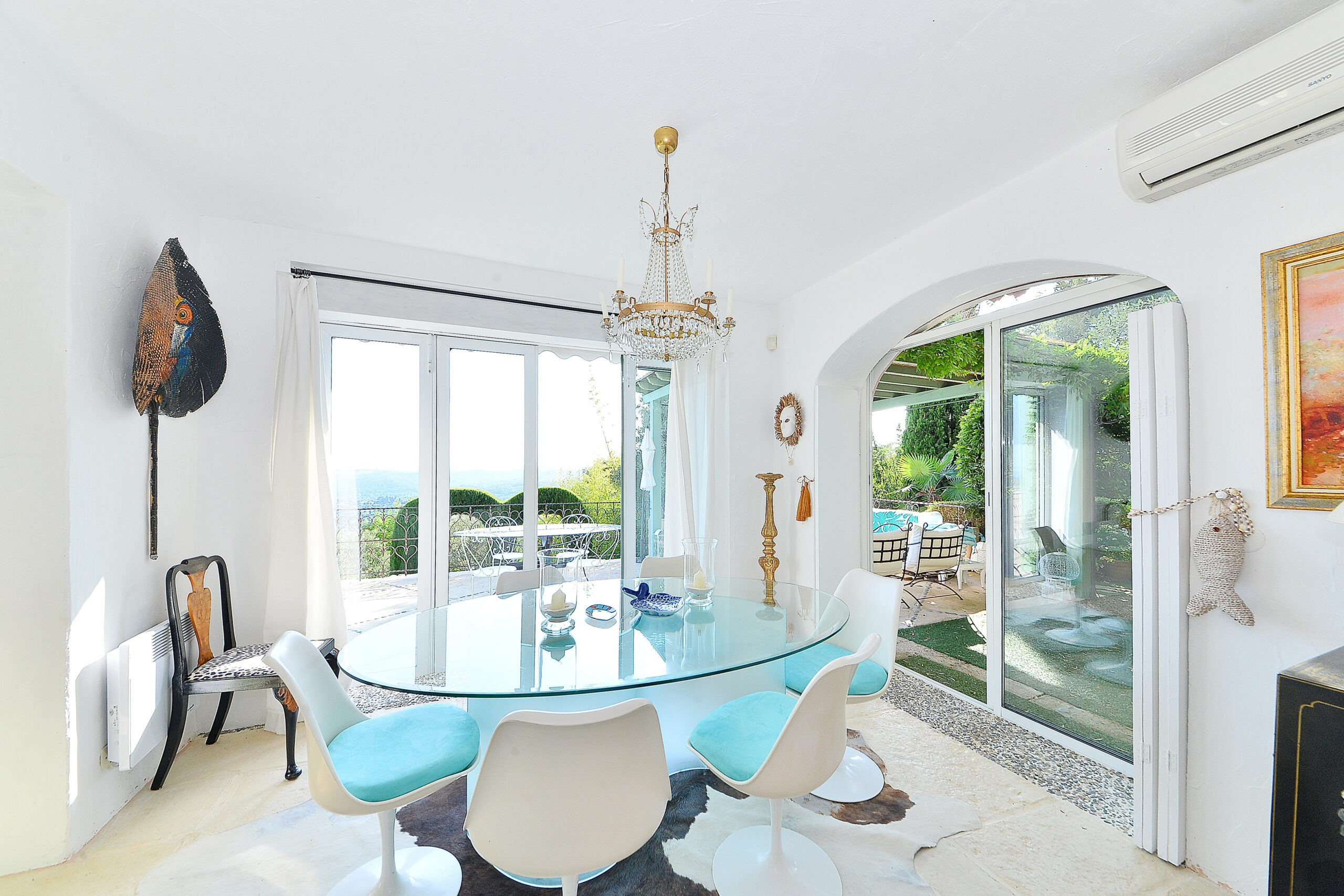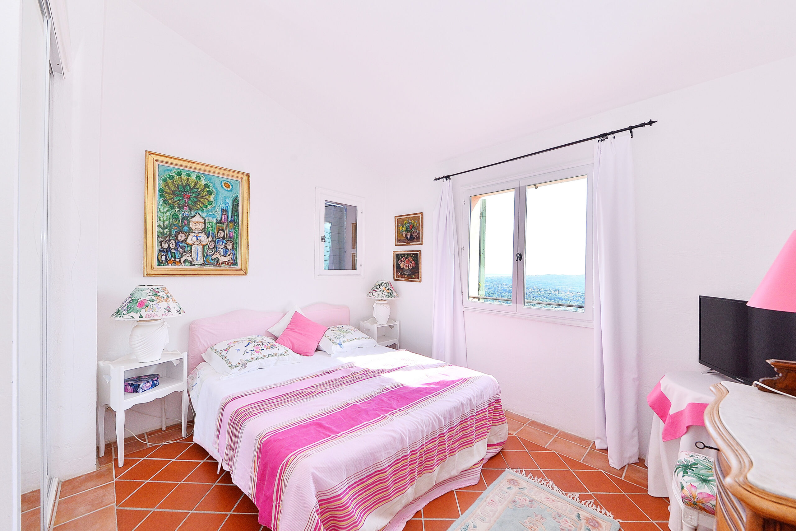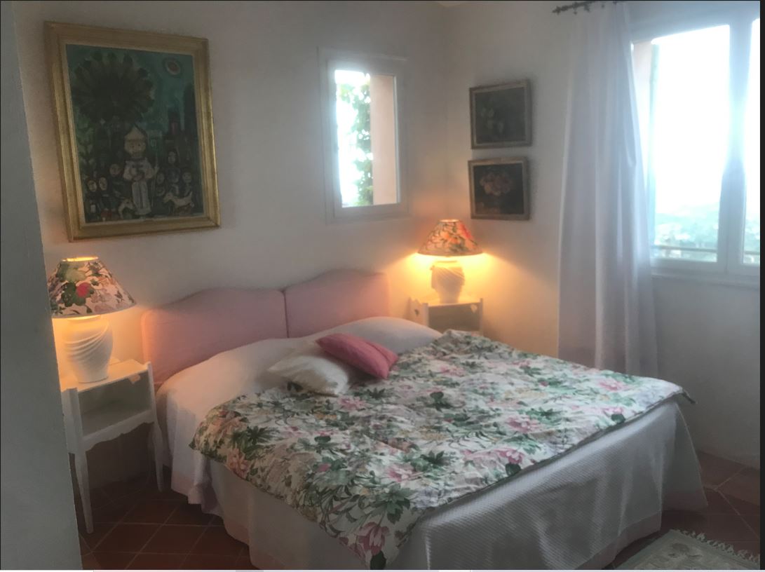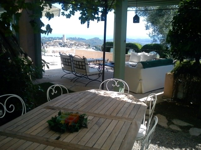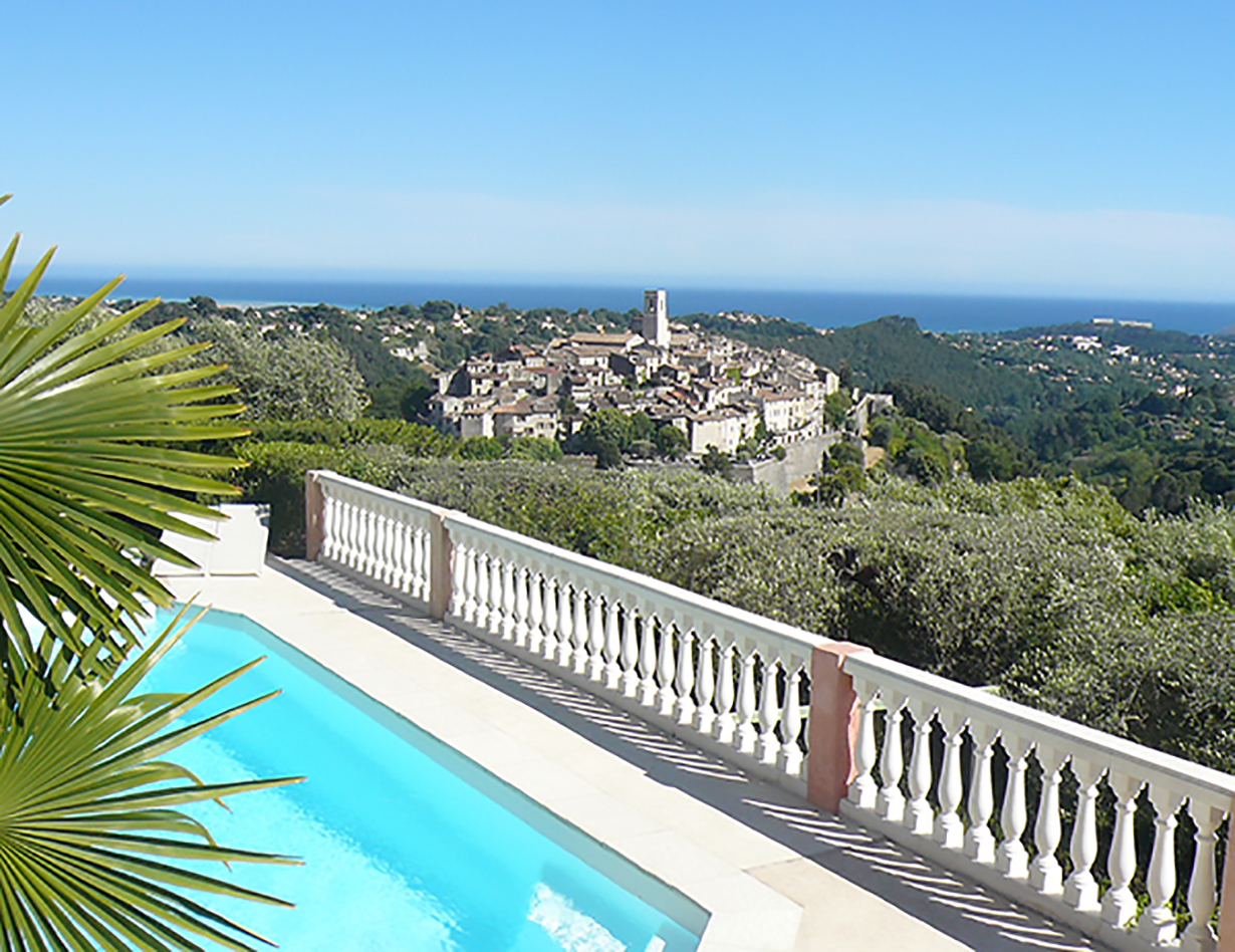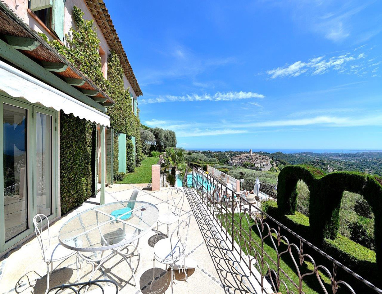 Einen schöneren Blick gibt es kaum: Blick auf die traumhafte Altstadt von St. Paul-de-Vence, Blick auf das Meer und die herrliche Umgebung. Die schöne gepflegte Villa liegt in der sehr prestigiösen Domaine, in der auch schon einige berühmte Stars ihre Domizile hatten oder noch haben. Absolut ruhige Lage. Zu Fuß nach St Paul über einen Privatweg in nur wenigen Minuten. Bestlage! Das Haus hat den ganzen Tag Sonne, Blick von allen Terrassen und auch vom Pool. Es bietet 180m2 Wohnfläche, aufgeteilt in 3 Schlafzimmer und 2 Bäder im Haupthaus, 1 weiteres schönes Schlafzimmer mit Bad liegt von außen zu begehen. Sehr gut ausgestattet mit allem, was man benötigt. Gemütlicher Wohnbereich, sep. Küche. Die Schlafzimmer sind alle sehr komfortabel, teilweise klimatisiert oder mit Ventilatoren. Es ist einfach nur herrlich sich auf dieser wunderschönen Terrasse aufzuhalten, in gemütlichen Loungemöbeln oder am Pool einfach nur zu relaxen. Nette kleine Bar am Pool für den Aperitif Großer BBQ vorhanden. Das herrliche Grundstück ist komplett gezäunt. Tolle Olivenbäume. Parkplätze sehr komfortabel. „Meine Gäste lieben dieses Haus und berichten mir immer, dass sie nicht mehr weg möchten! – Ihre Simone Andres“