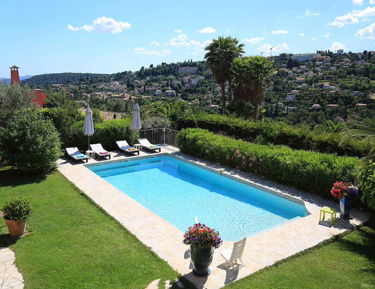 In einem sehr ruhigen und entspannten Villenviertel befindet sich diese großzügige und schöne Villa mit ca. 450 m² Wohnfläche!, die allen Komfort bietet und liebevoll dekoriert ist. Sie bietet einen herrlichen Panoramablick und einen Blick auf den berühmten Berg „Baou“, der ein schöner Aufflugs-Spot zumWandern ist. Im hübschen garten befindet sich ein großer Pool (6m x 12m) mit komfortablen Gartenliegen und ausreichend Sonnenschutz, perfekt zum Entspannen und Genießen der Urlaubsstimmung. Außendusche. Die Villa verfügt über 7 klimatisierte Schlafzimmer mit Doppelbetten für max 12 Personen (+ evtl 2 Kinder), und 6 Badezimmern, 6 WCs. Zwei Zimmer haben einen unabhängigen Eingang und private Terrasse. Mehrere Terrassen am und um das Haus herum, darunter eine mit Sommerküche und Grill (Plancha), laden zum Verweilen ein. WLAN, Parken sehr komfortabel. Der wunderschöne provençalische Ort „Vence“ ist in wenigen Minuten zu erreichen. Nur 20 Minuten vom internationalen Flughafen Nizza entfernt, ist diese Villa der ideale Ort für eine erholsame Auszeit.