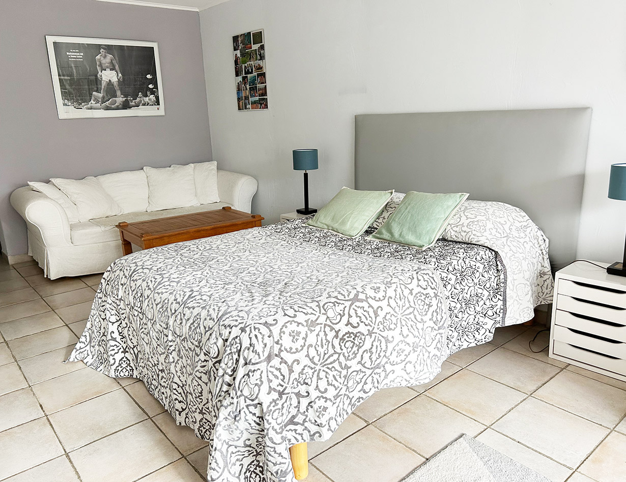 Gartenebene, Doppelbett, zusätzliche Schlafcouch, teilt sich Bad mit Sz 3+4