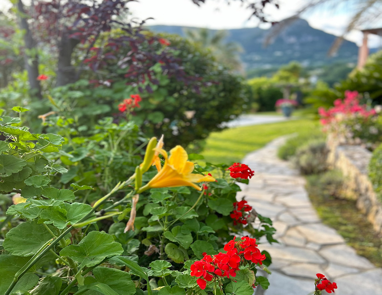 Ca. 2200m2 schönes Grundstück, mit Rasenflächen, vielen Olivenbäumen, Bambus, mediterranen Pflanzen. Grundstück ist komplett gezäunt.