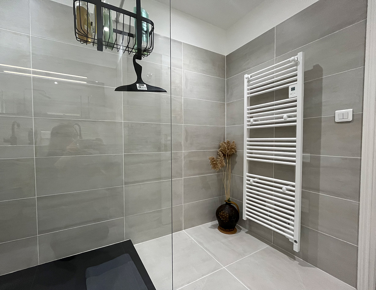 Masterbedroom (14,5 m2) mit einem En-Suite-Badezimmer von fast 9 m2 mit toller begehbarer Dusche, WC. Kingsizebett: 180 x 210 cm.